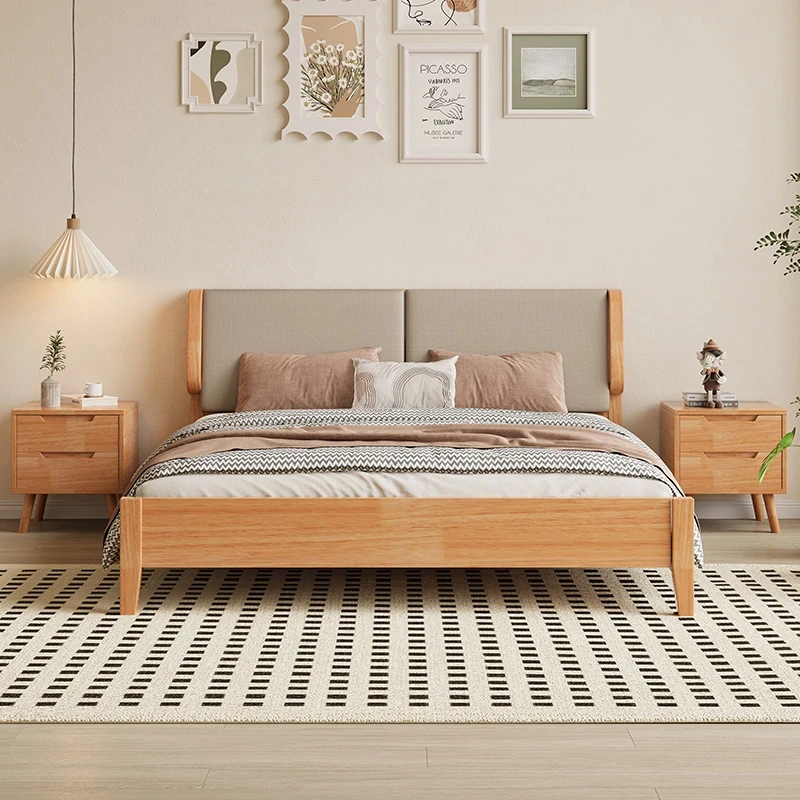 オウルパフソフトパッケージベッド|小型住宅に最適!180cmダブルベッド|上質感溢れるシンプルな無垢材デザイン|全実木製で贅沢な寝室を実現!