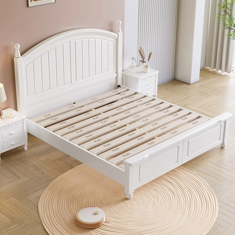 ウエンノー現代シンプル天然木ベッド ホワイト 1.8m 家庭用 主寝室 1.5m ストレージ付き カントリースタイル プリンセス アメリカンウェディングベッド
