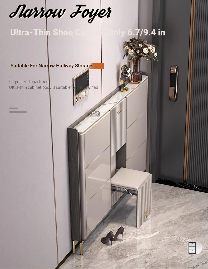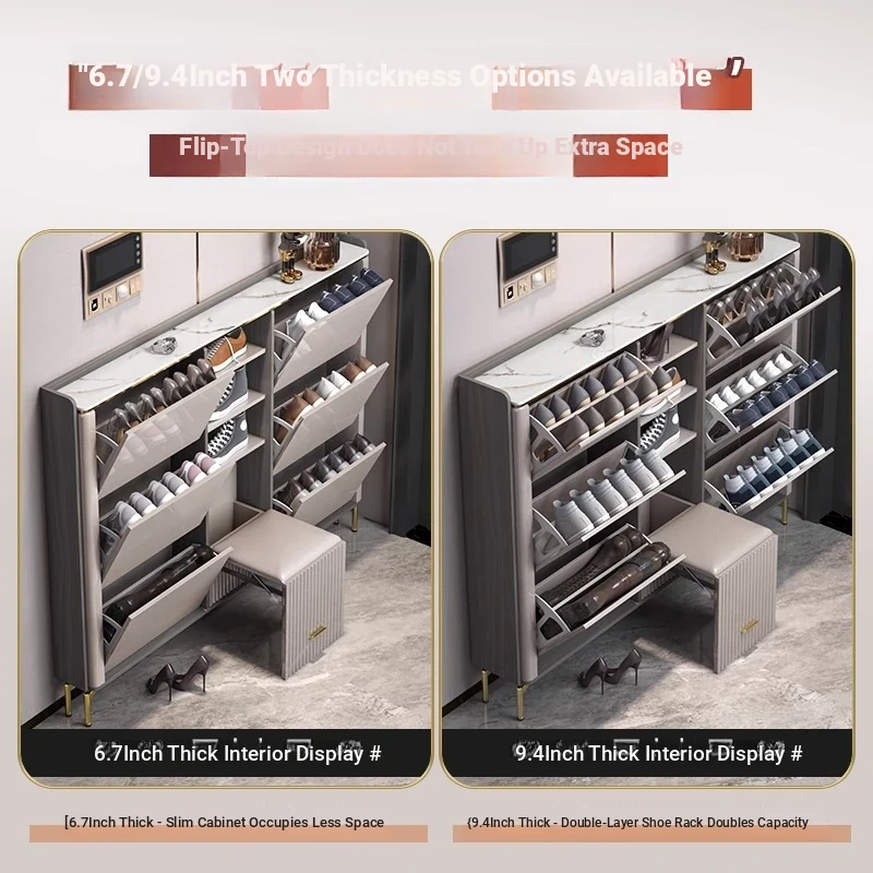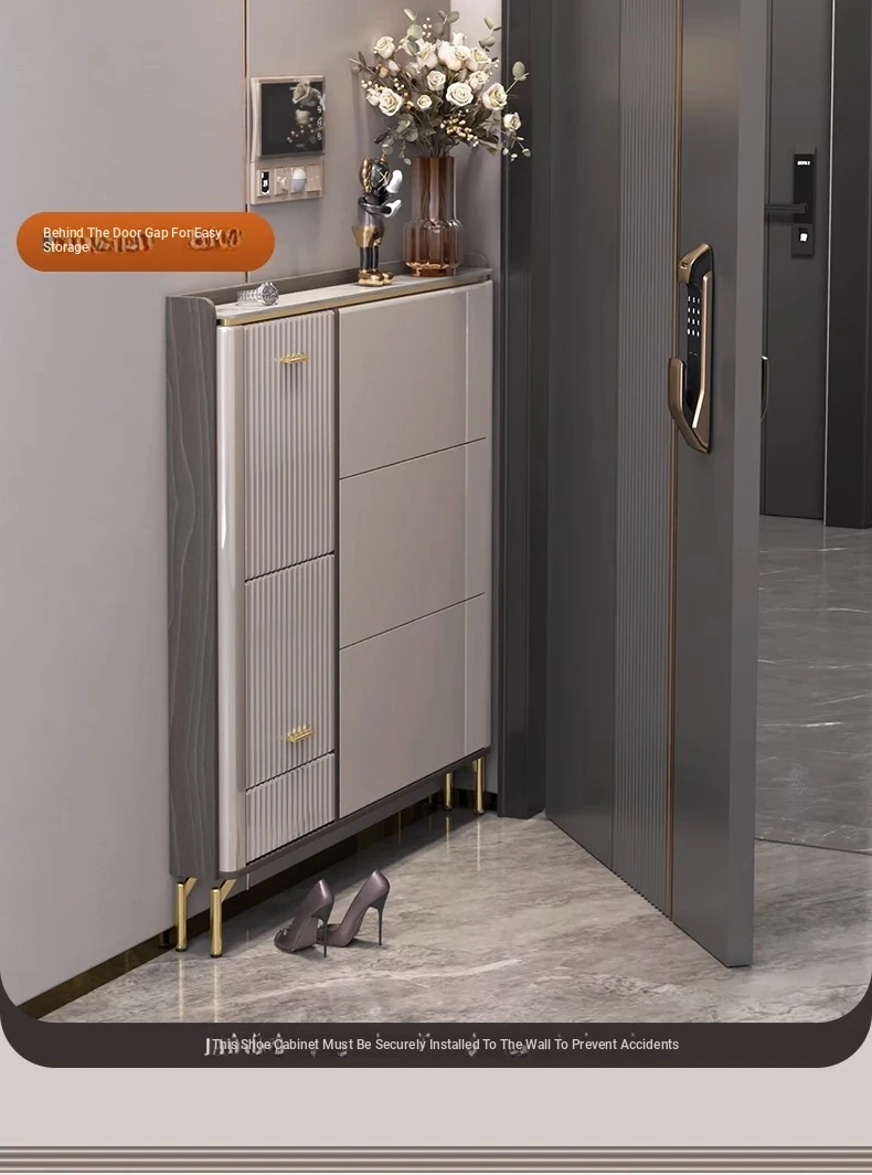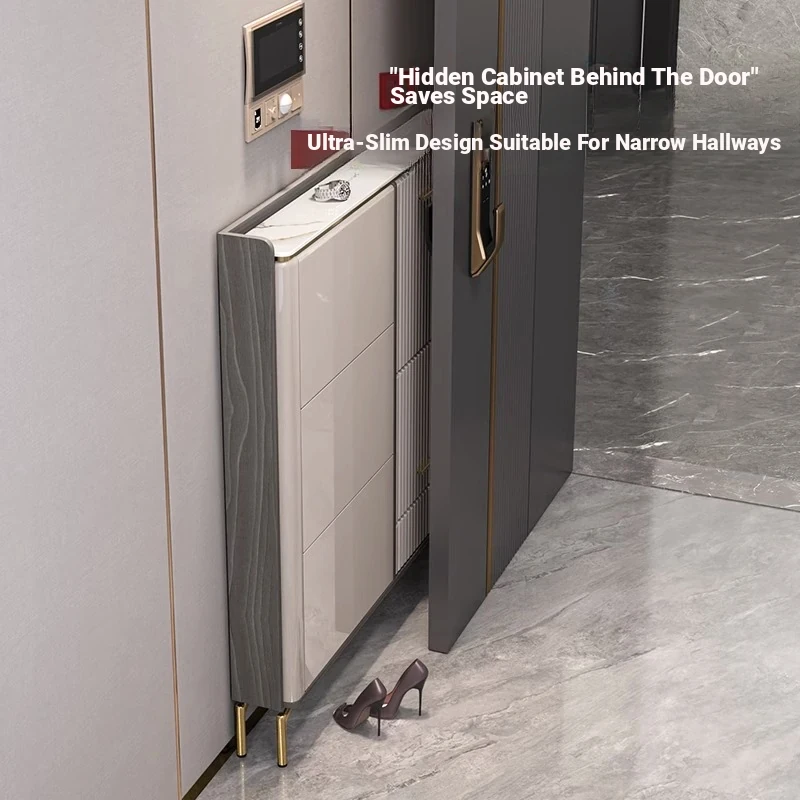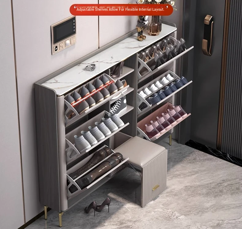 2023 New Arrival Luxury Lightweight Slate Thin Shoe Cabinet - Stylish Flip-Top Entryway Storage Solution for Home & Hallway