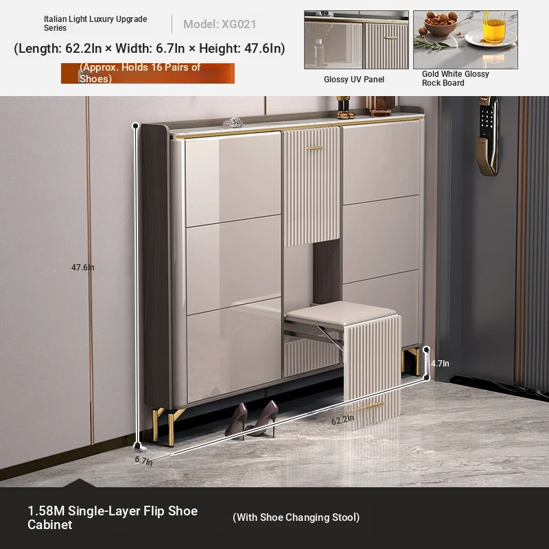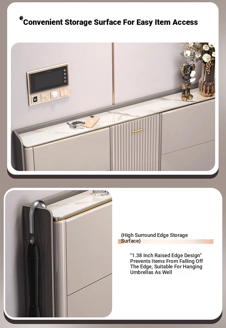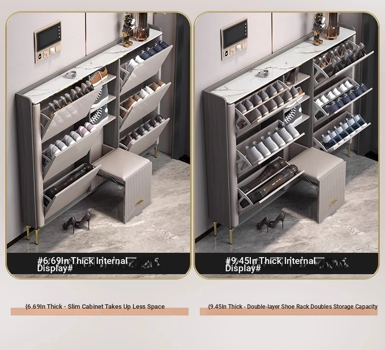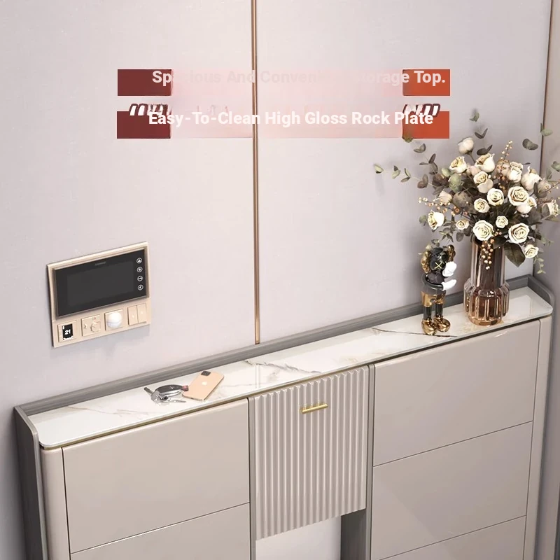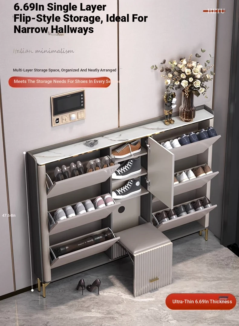 2023 New Arrival Luxury Lightweight Slate Thin Shoe Cabinet - Stylish Flip-Top Entryway Storage Solution for Home & Hallway