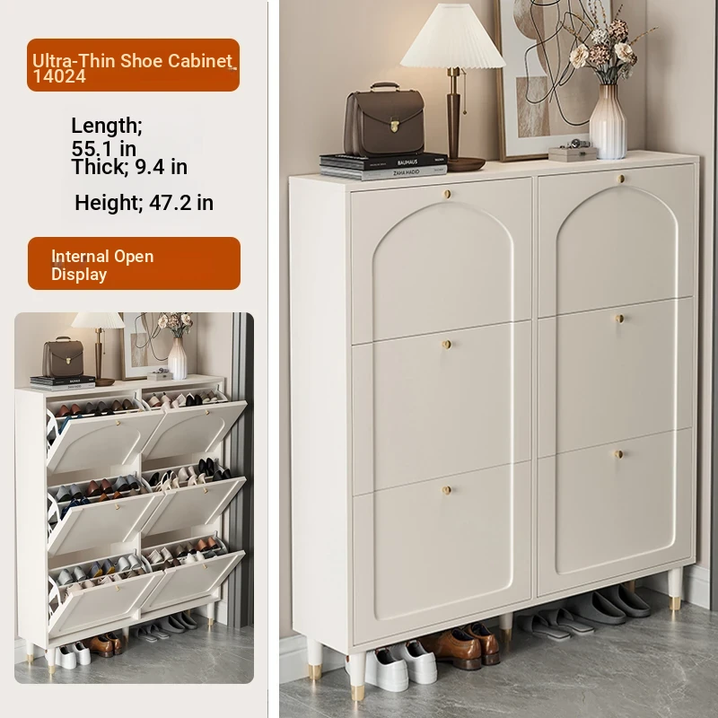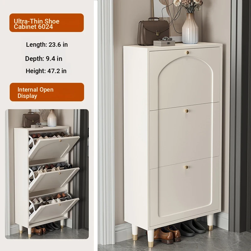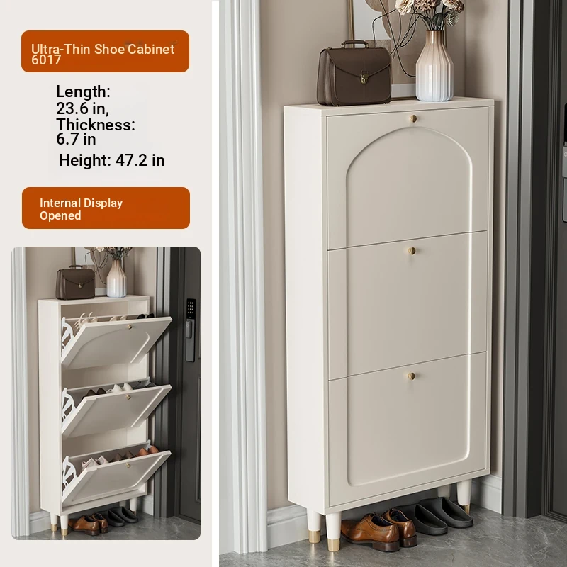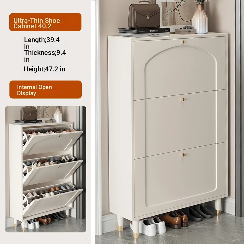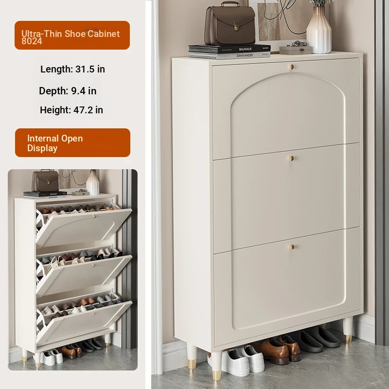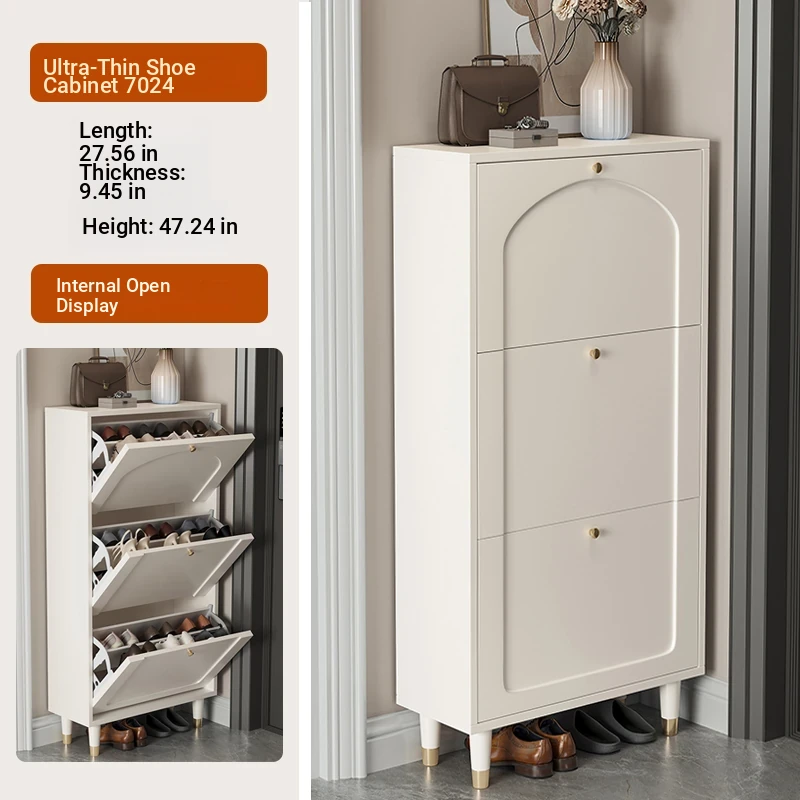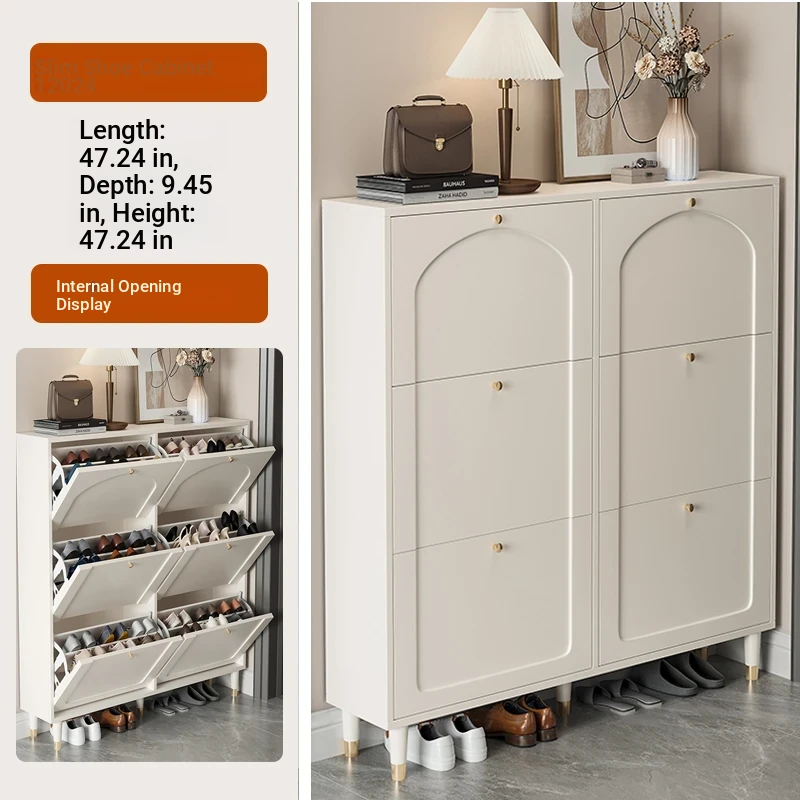 2024 New Arrival: Slim Creamy Ultra-Thin Shoe Cabinet - Perfect for Home Use, Fits Narrow Doorways and Balconies, Innovative Flip-Top Shoe Rack for Space-Saving Storage.