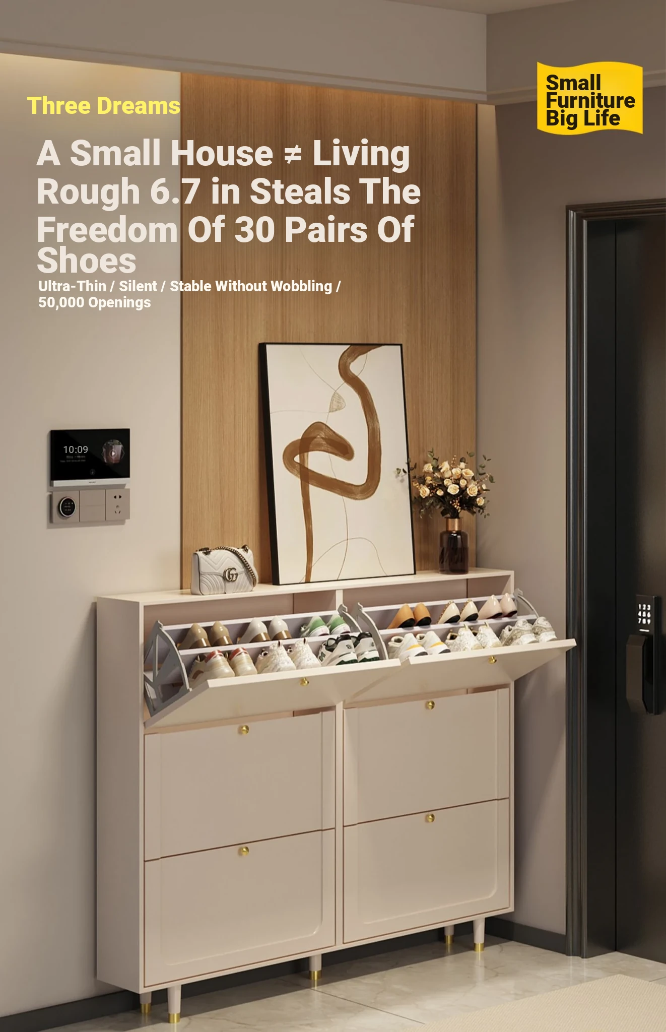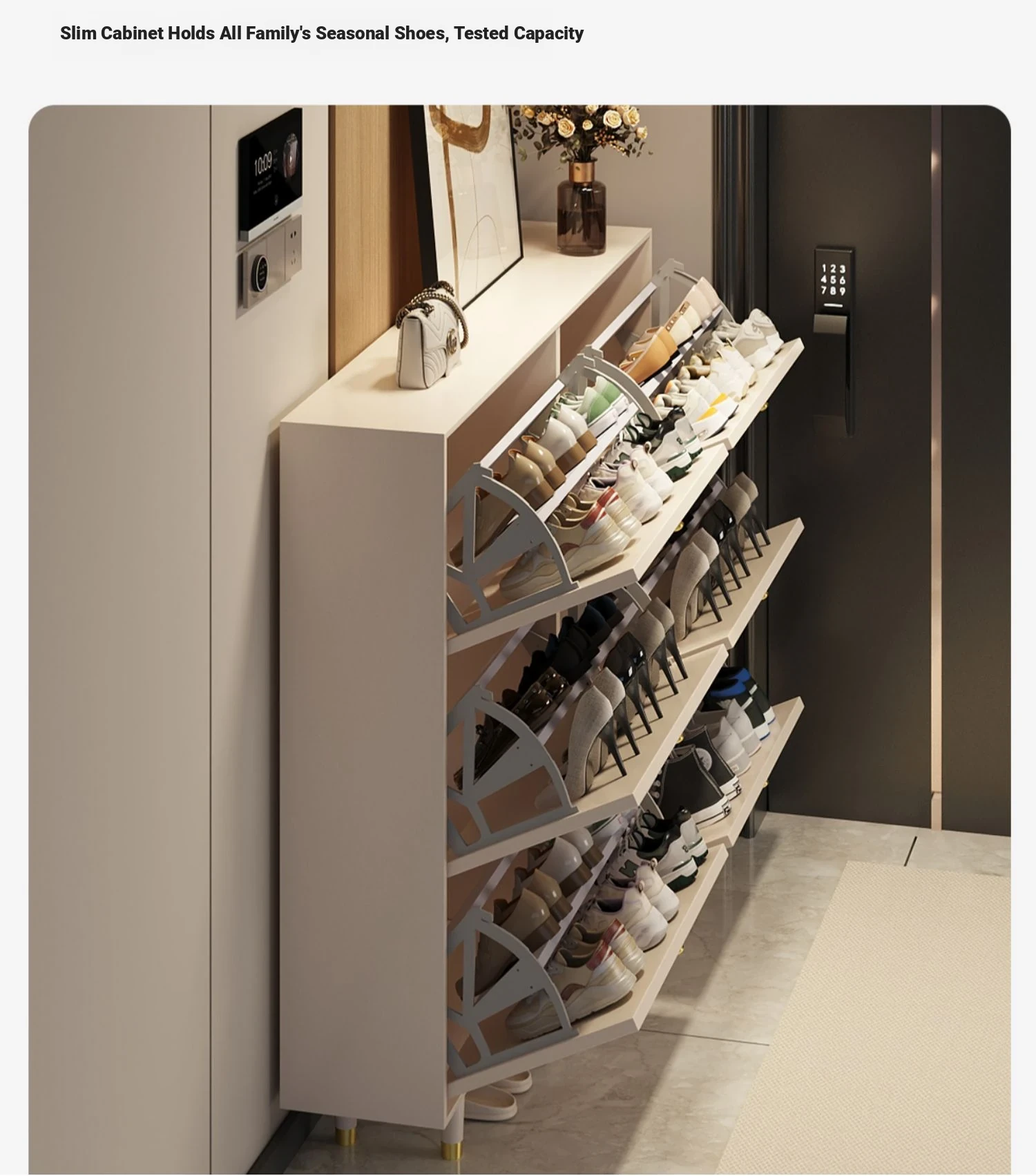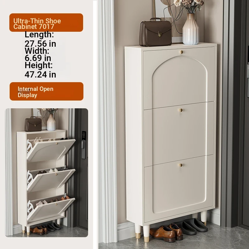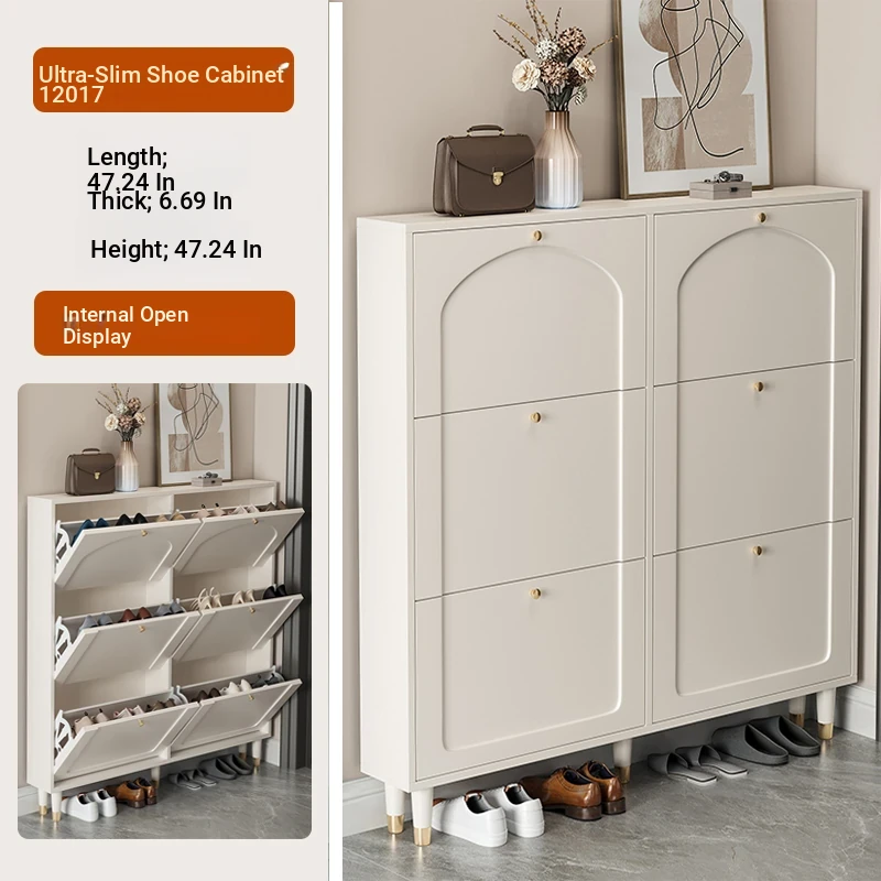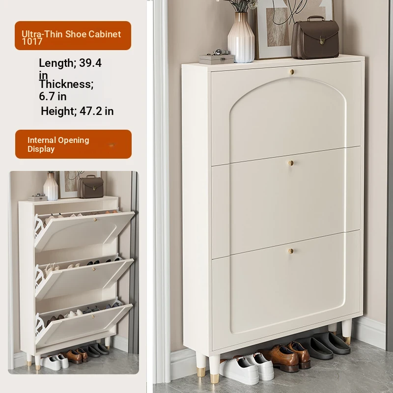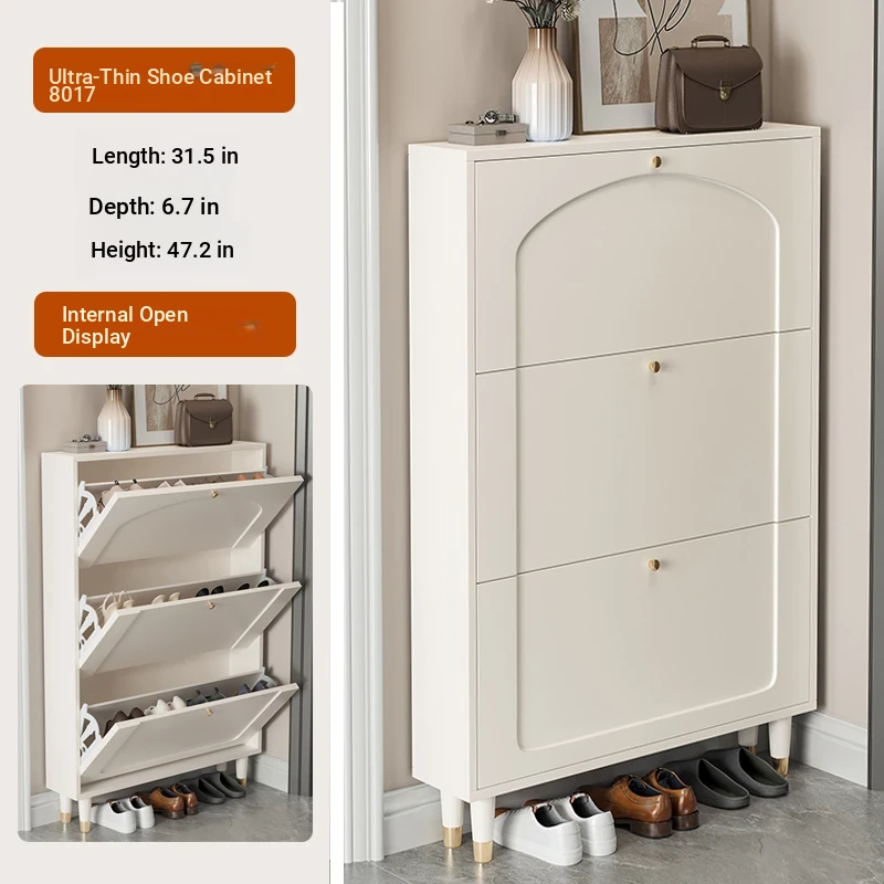 2024 New Arrival: Slim Creamy Ultra-Thin Shoe Cabinet - Perfect for Home Use, Fits Narrow Doorways and Balconies, Innovative Flip-Top Shoe Rack for Space-Saving Storage.
