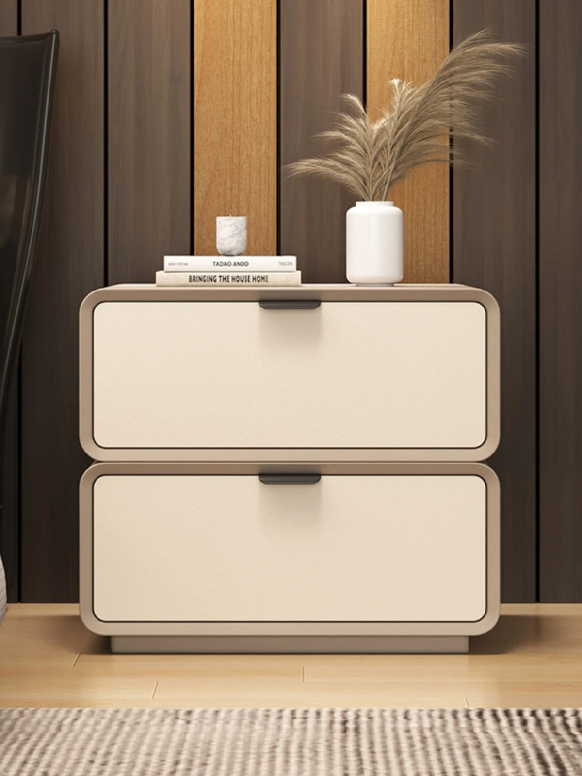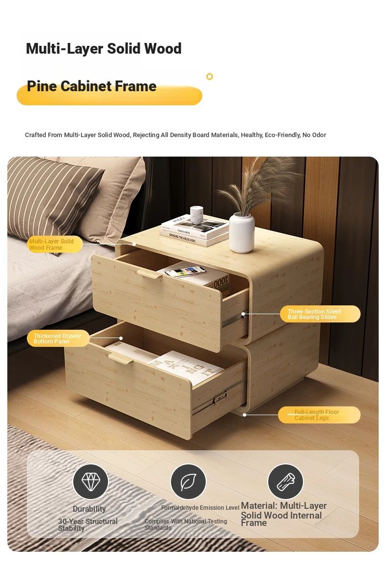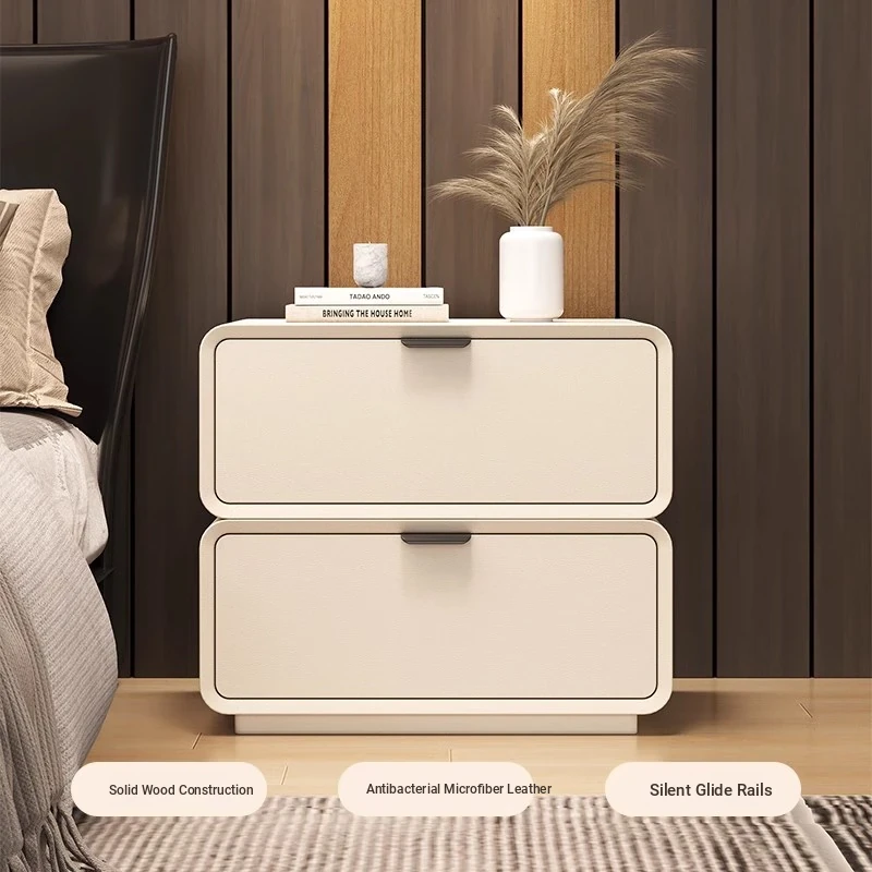Dreamy Solid Wood Nightstand - Creamy Minimalist Modern Small Cabinet for Home Bedroom, Chic Compact Bedside Storage Solution