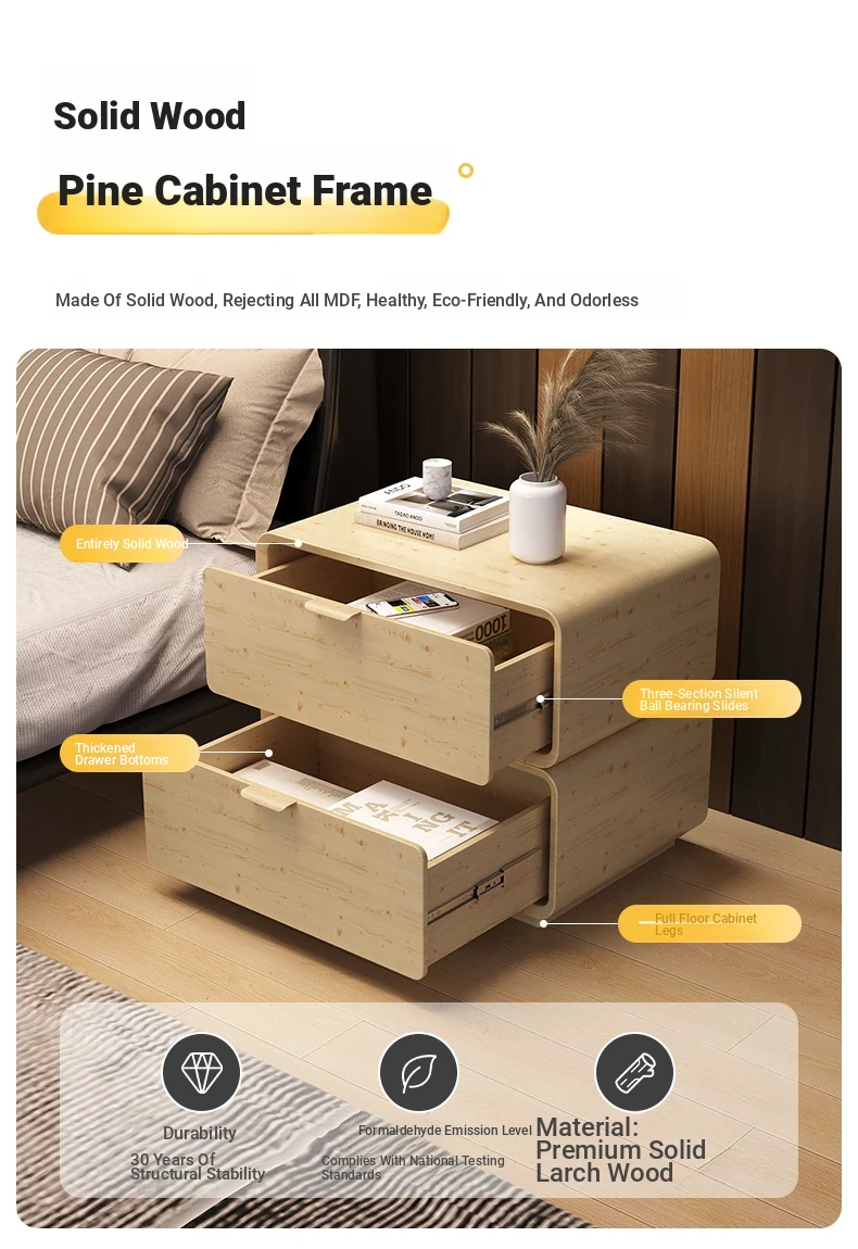 Creamy-white [Super larch multi-layer solid wood frame + solid wood drawer]]