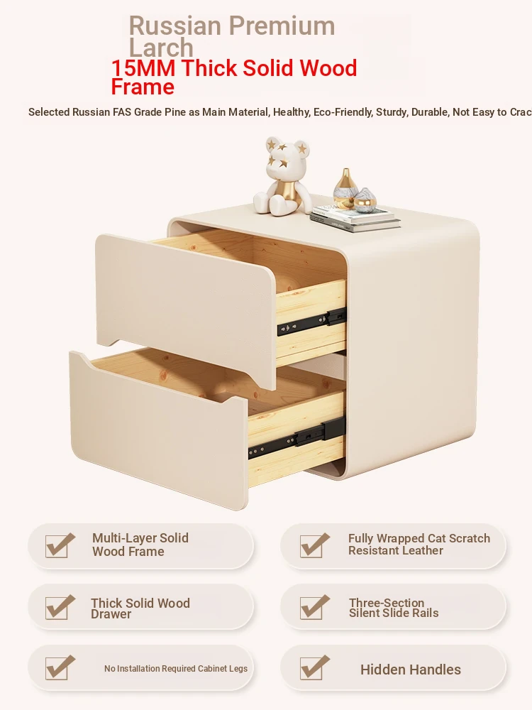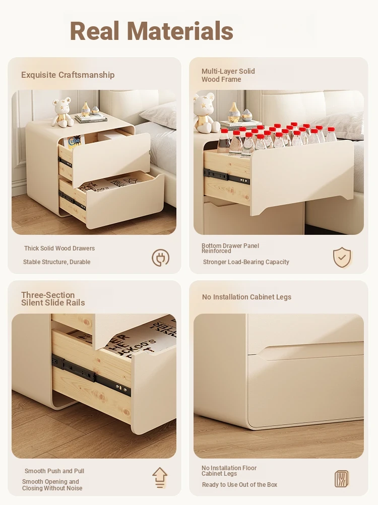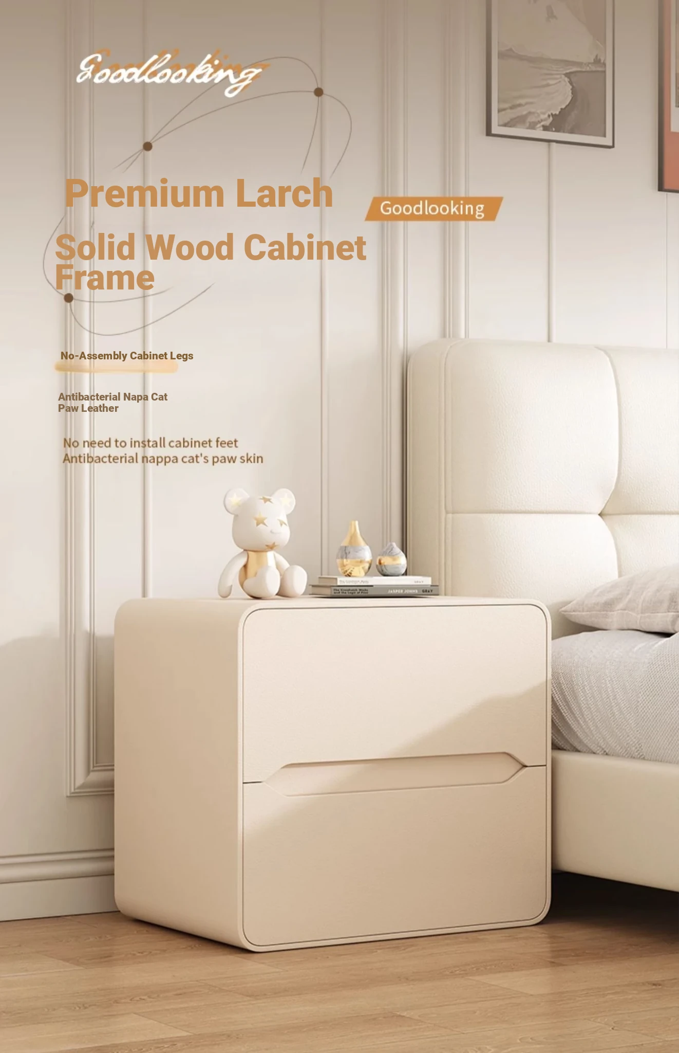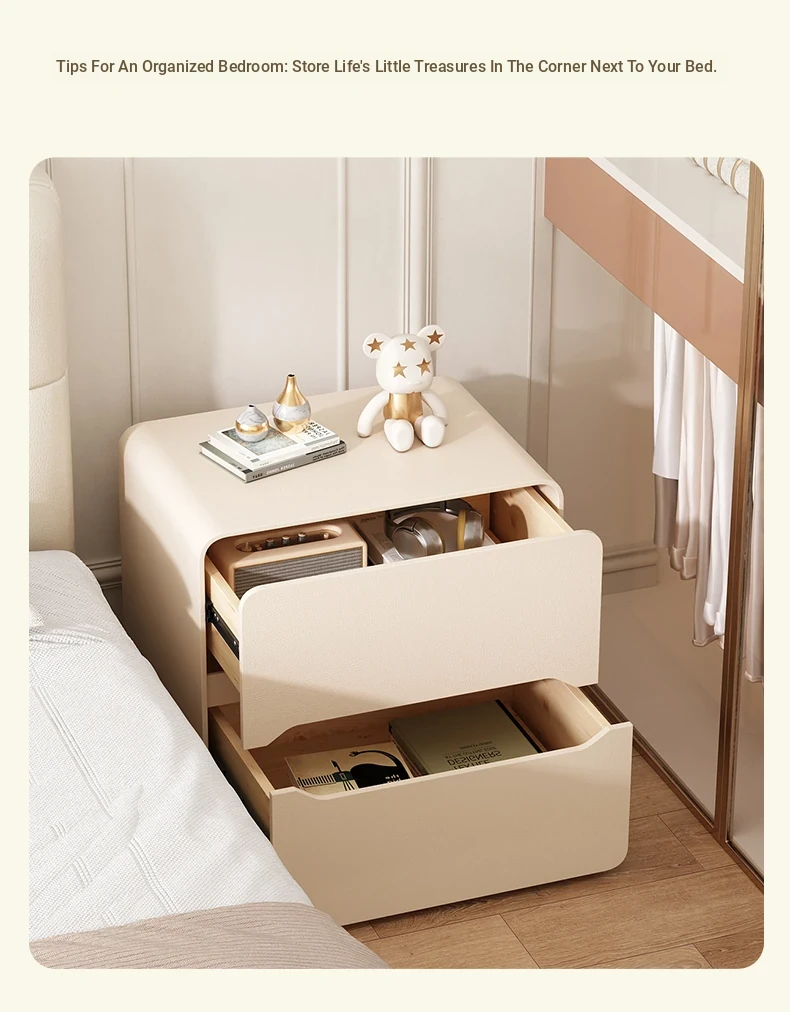 Dreamy Solid Wood Nightstand - Modern Minimalist Small Bedroom Storage Cabinet with Luxurious Creamy Aesthetic - Perfect for Organizing Your Space!