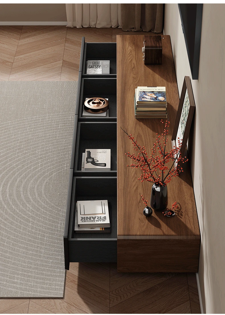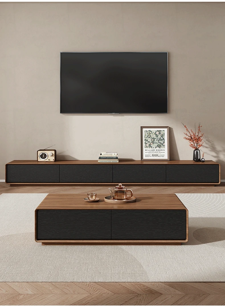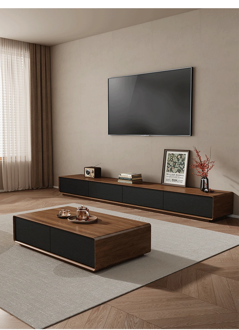 Elegant Walnut TV Stand and Coffee Table Set for Small Living Rooms - Modern Minimalist Design for a Chic Touch in Your Home