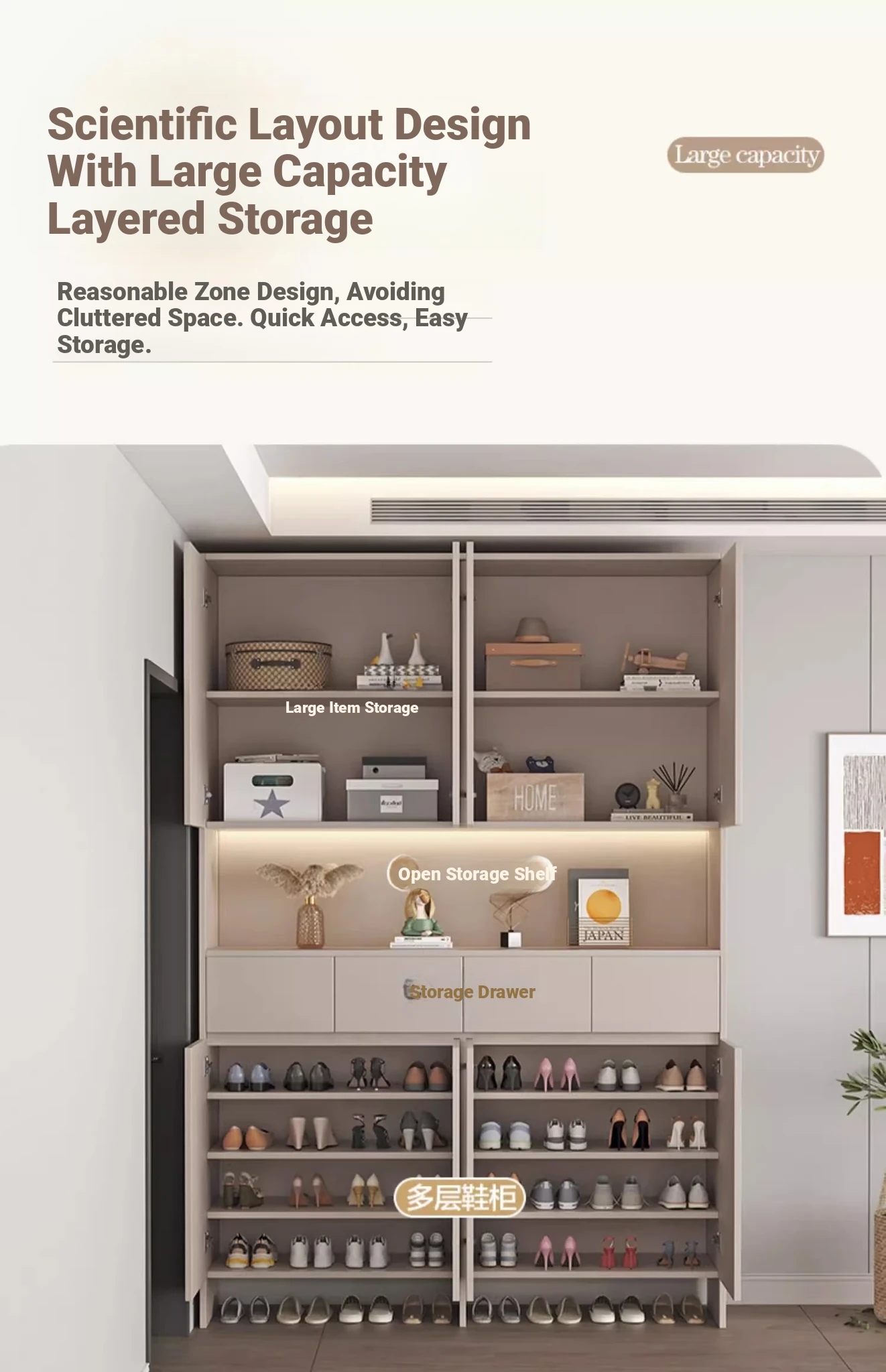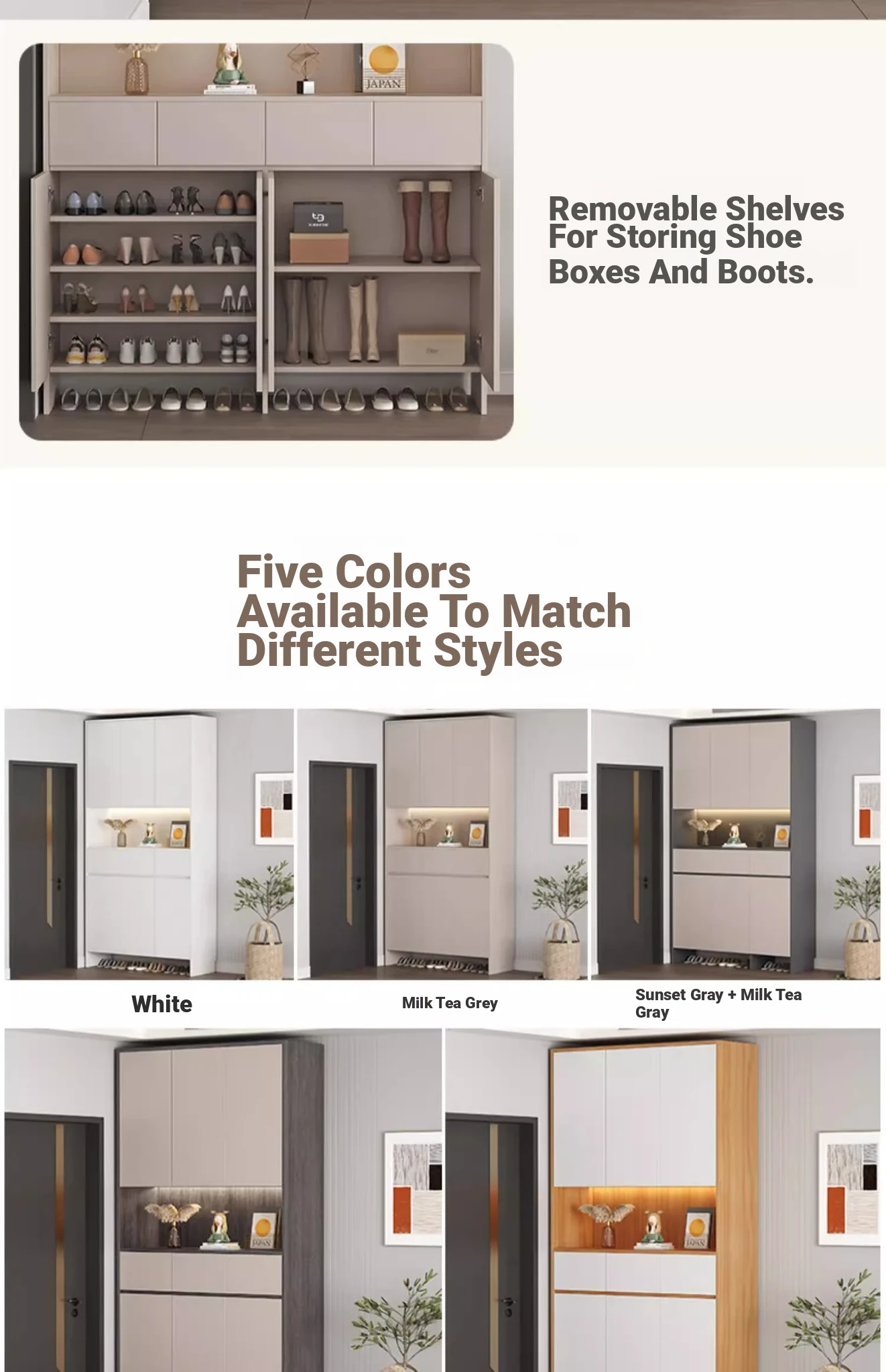 [Solid Wood] A High Cabinet -43.31in Long (Sunset Grey + Milk Tea Grey Door)