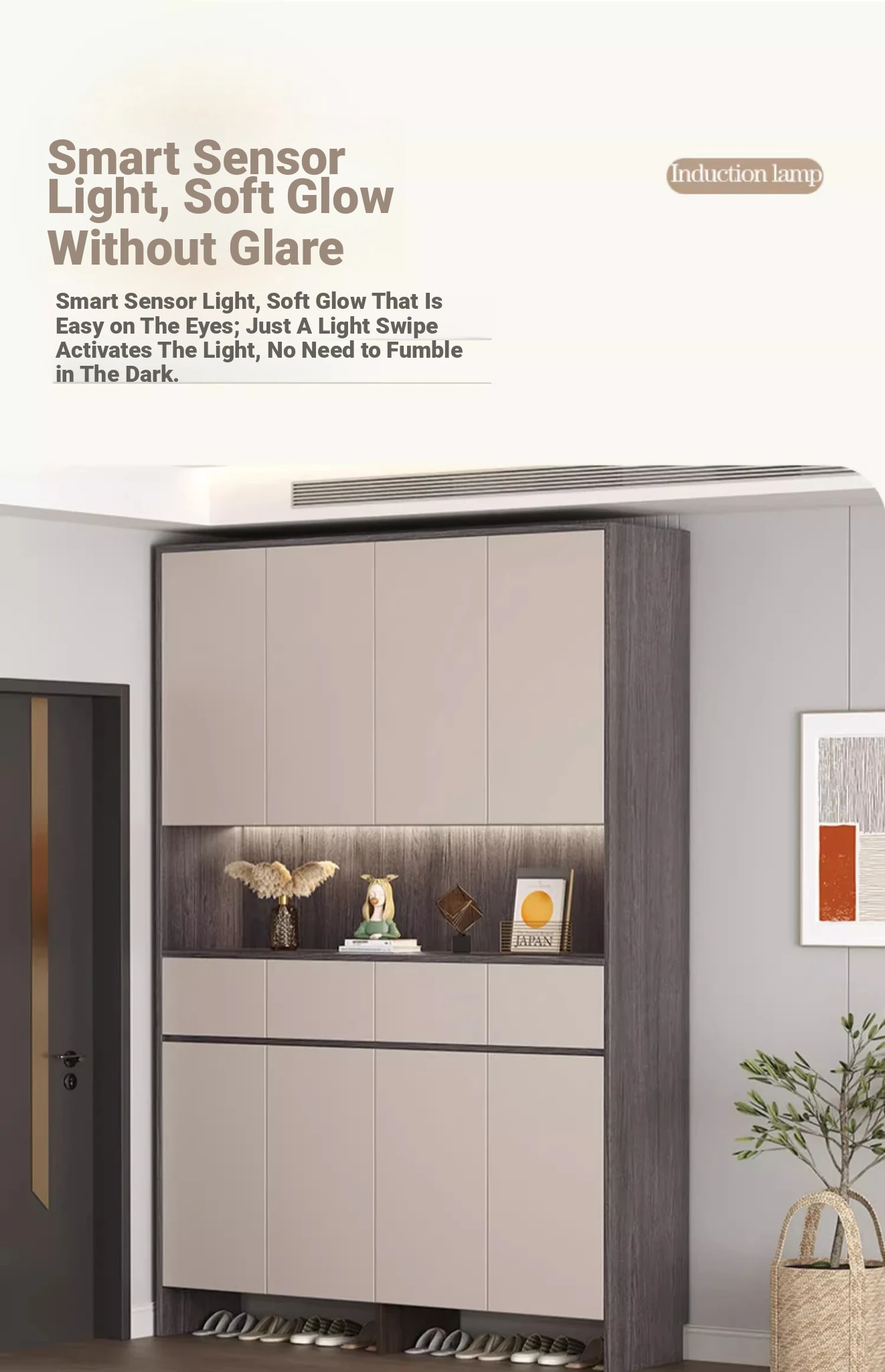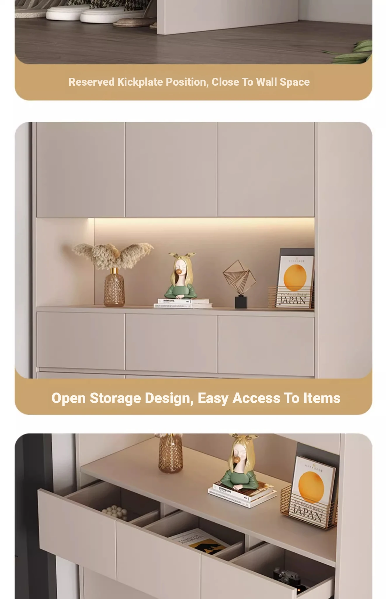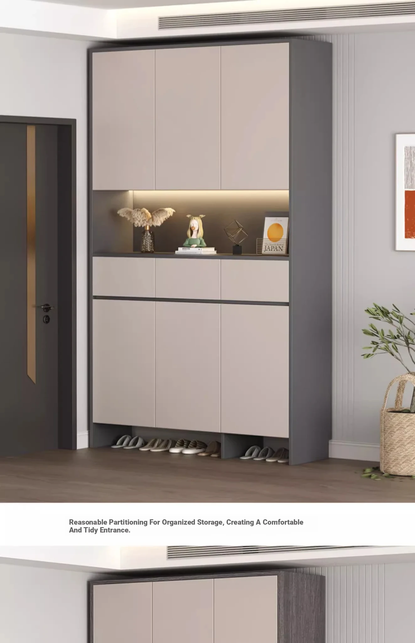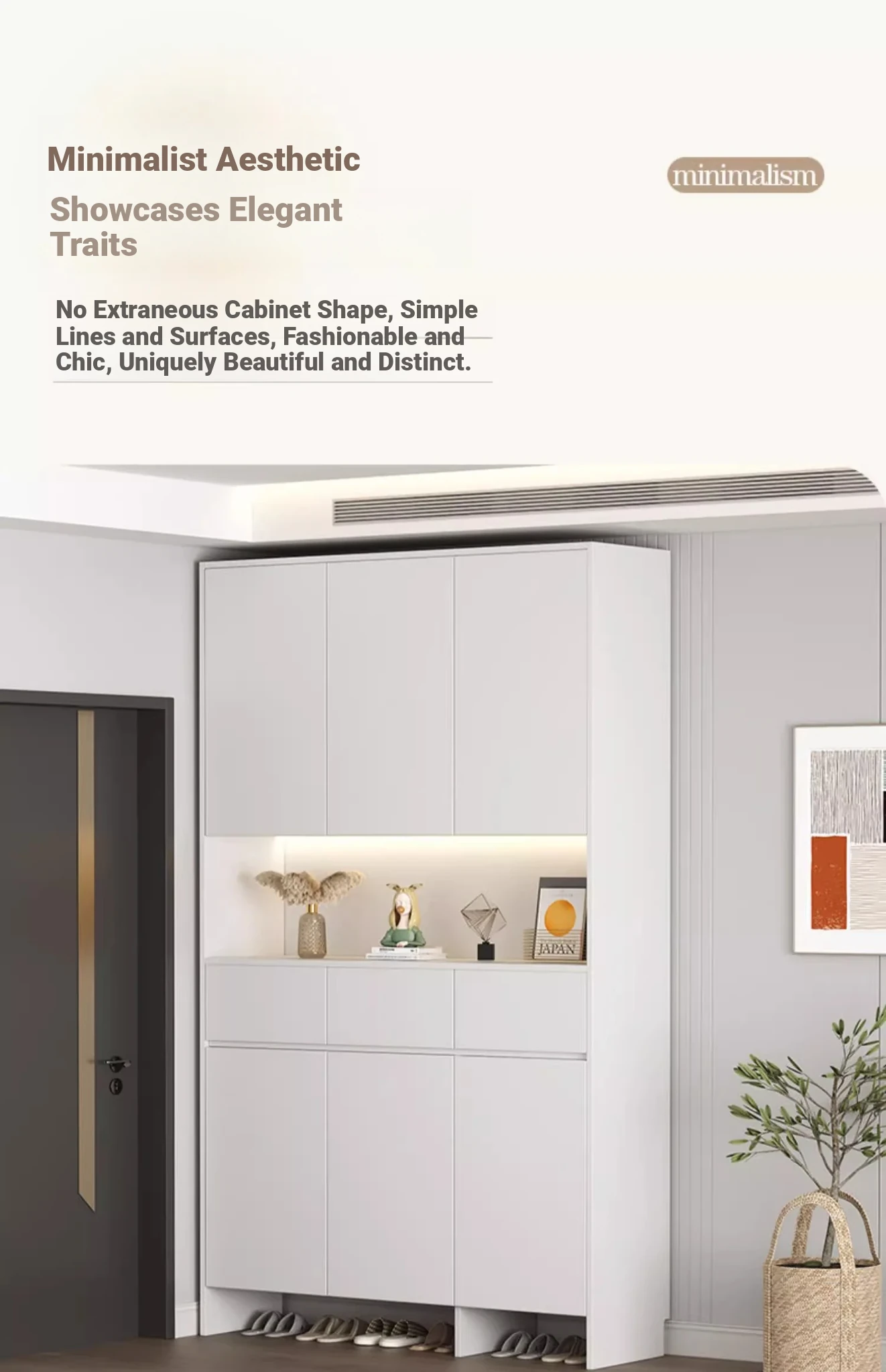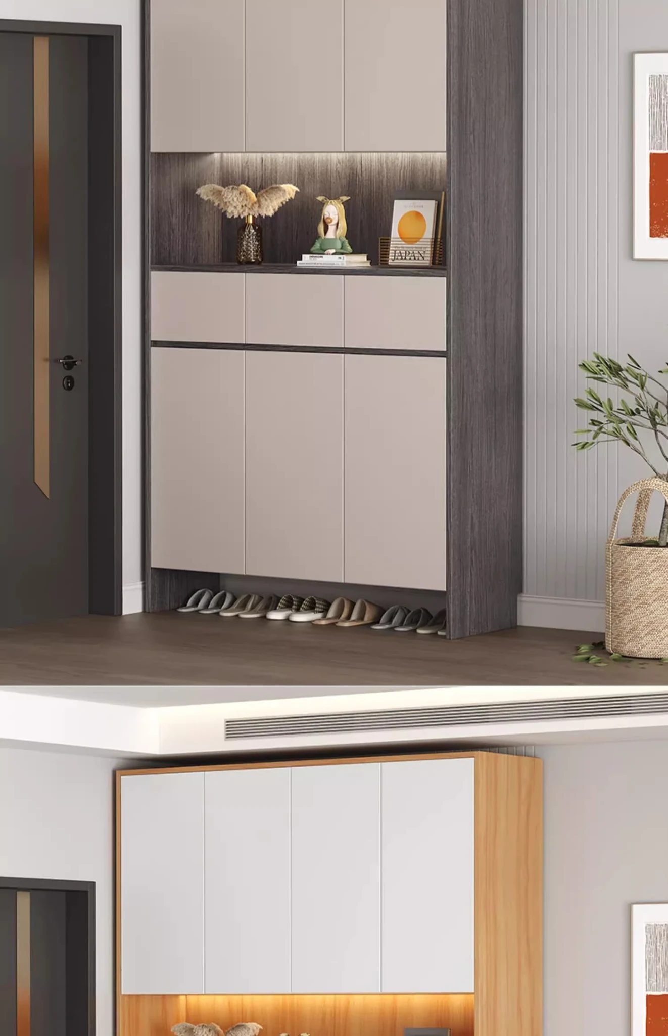 [Solid Wood] A High Cabinet -23.62in Long (Sunset Grey + Milk Tea Grey Door)