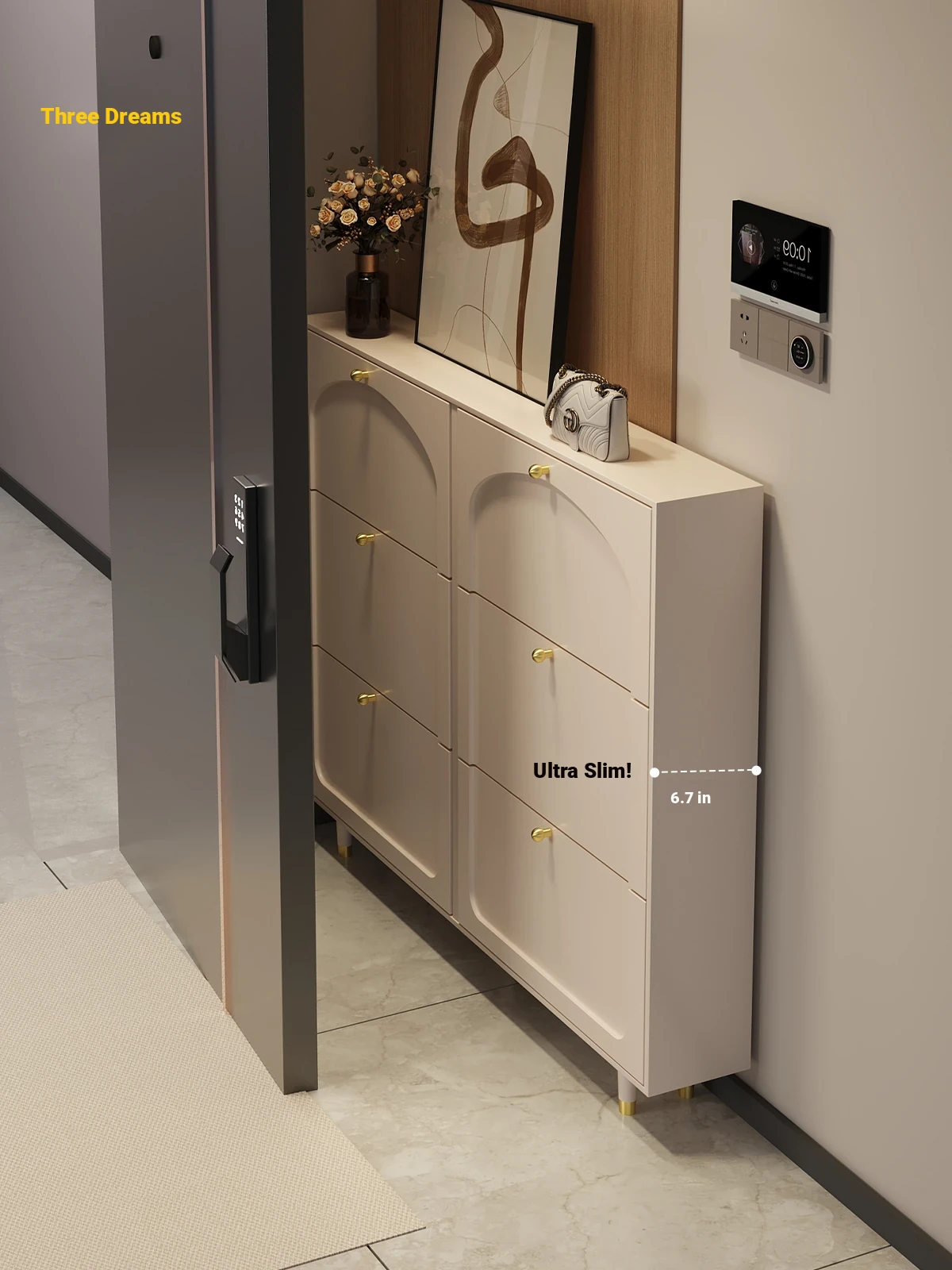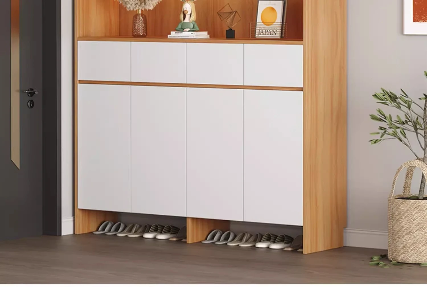 Elevate Your Entryway with the Eisen Solid Wood Shoe Cabinet – Multipurpose High Cabinet with Drawers and Ample Storage Space for a Stylish and Organized Home. Perfect for Any Hallway or Entrance!