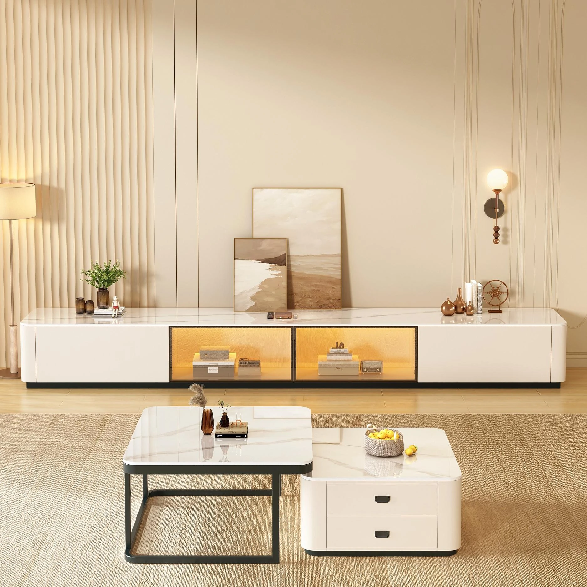 [Solid Wood] A High Cabinet -47.24in Long (Warm White)