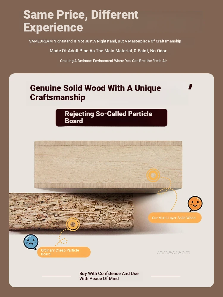 Sangmeng Solid Wood Nightstand 2025 New Arrival - Minimalist Modern Luxury Small Bedside Storage Cabinet for Your Bedroom
