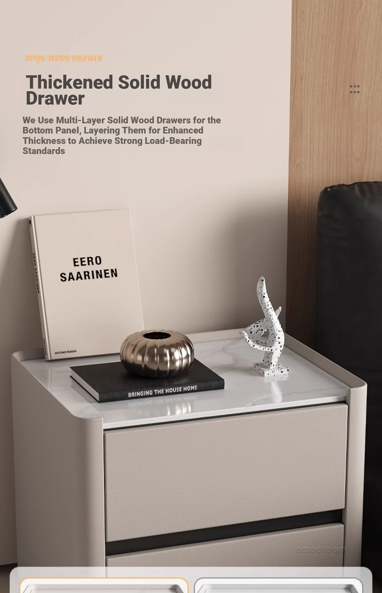 Creamy-white (thickened solid wood frame + solid wood drawer)