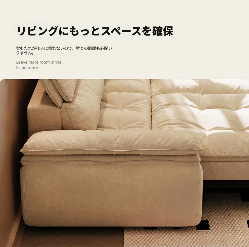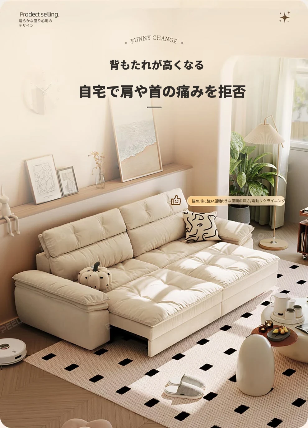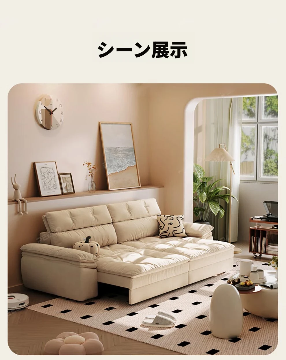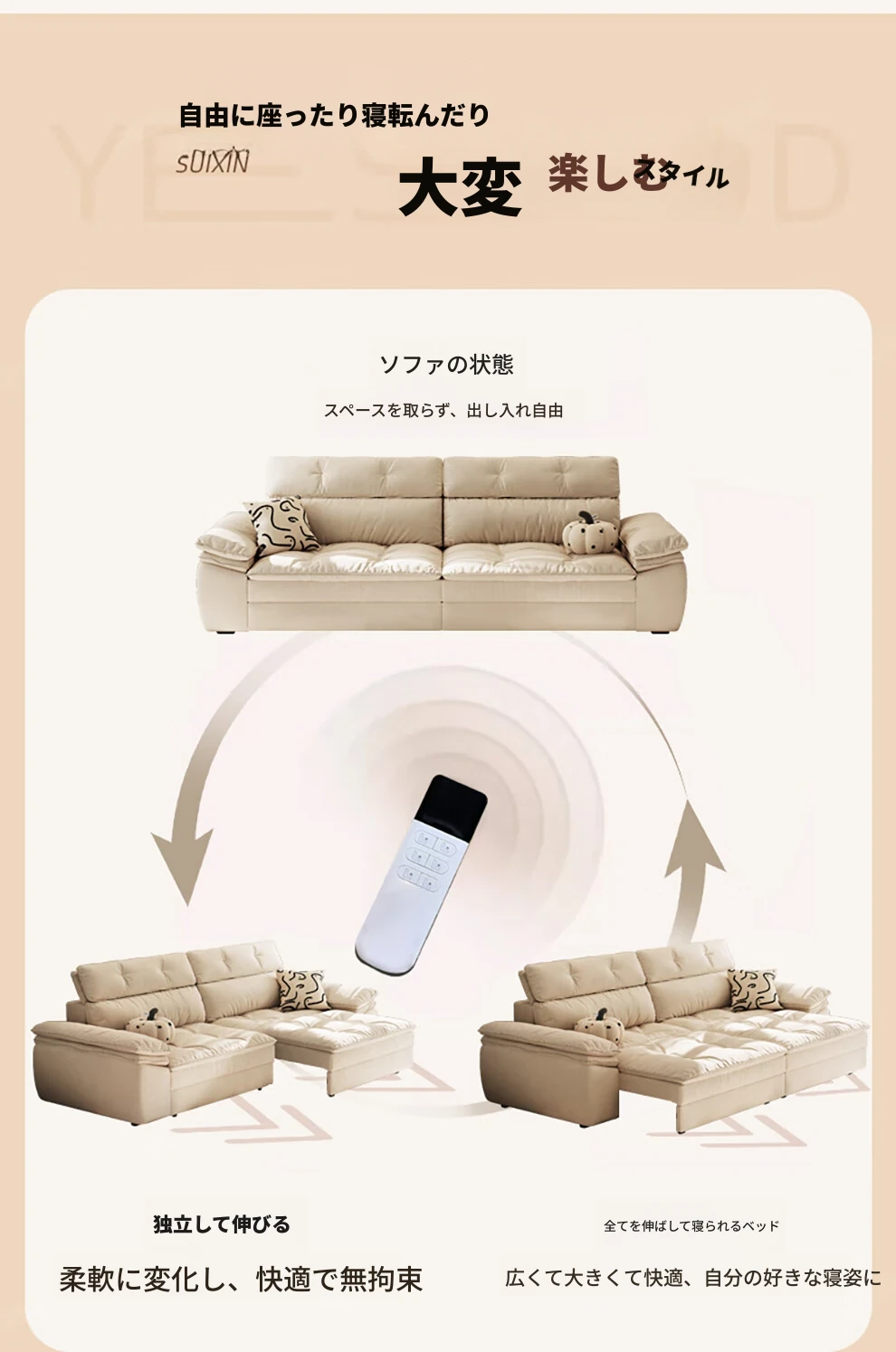 2025年新登場!甄皮の多機能電動ソファ - クリーム風デザインで、リビングでも使える折りたたみ式伸縮布張りソファベッド。快適さとスタイルを兼ね備えた、理想的な空間作りをお手伝いします!