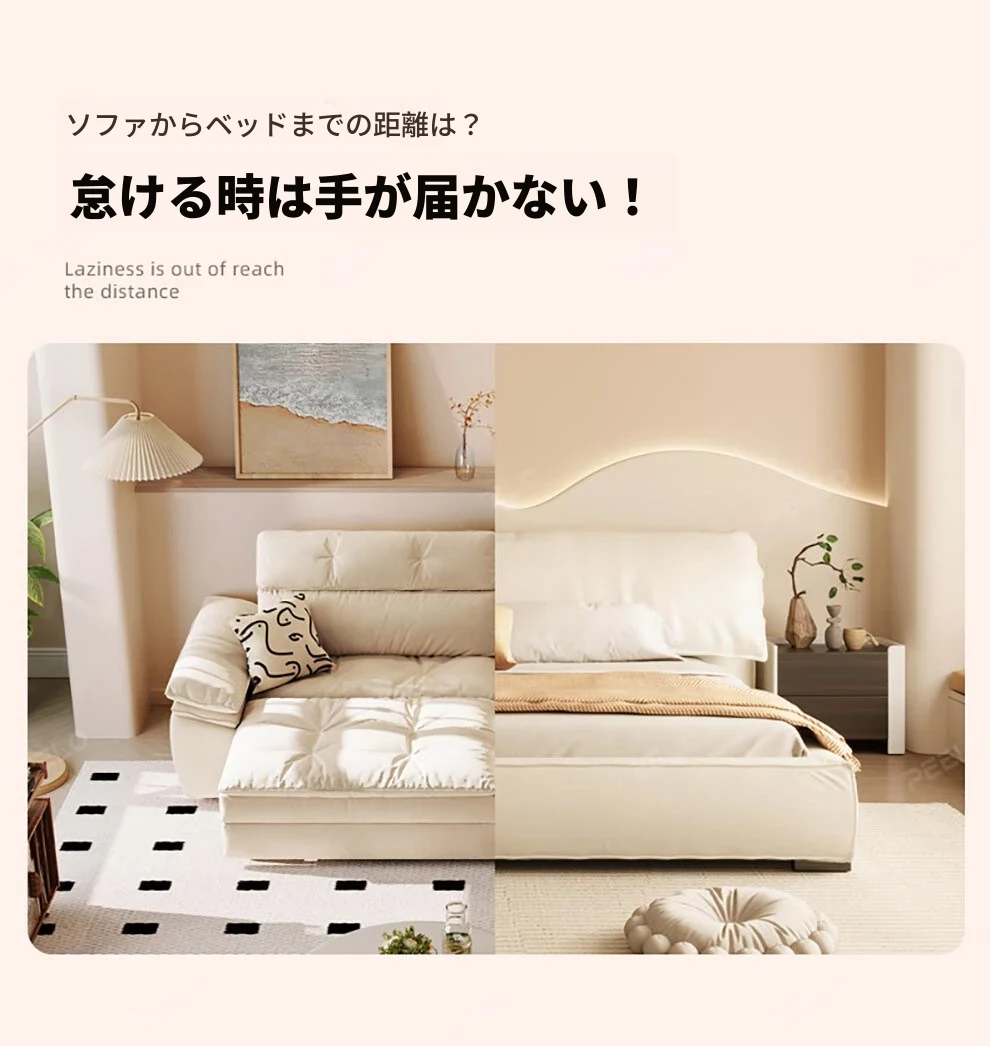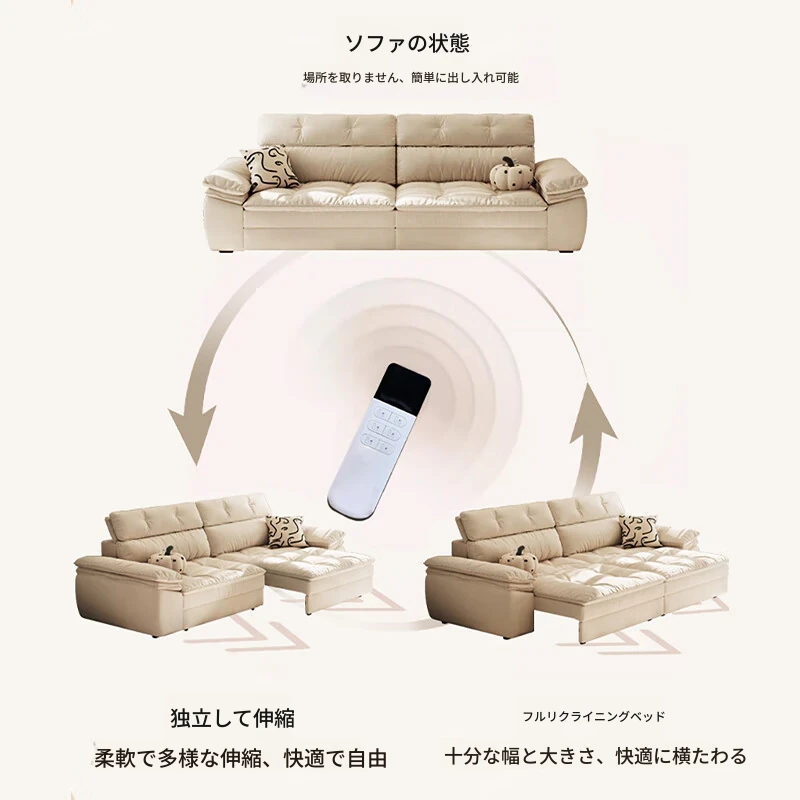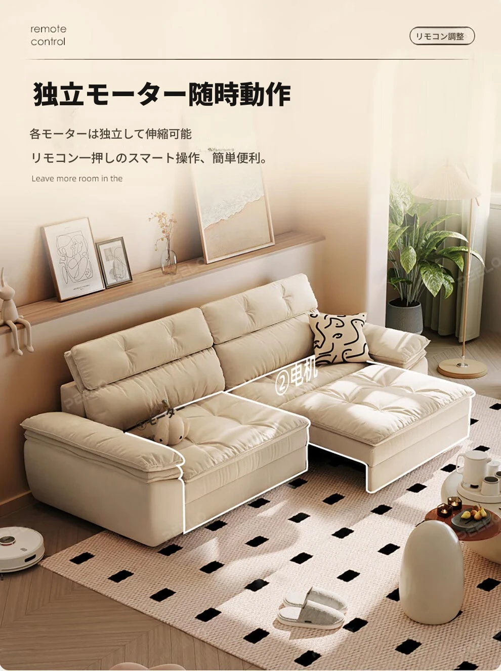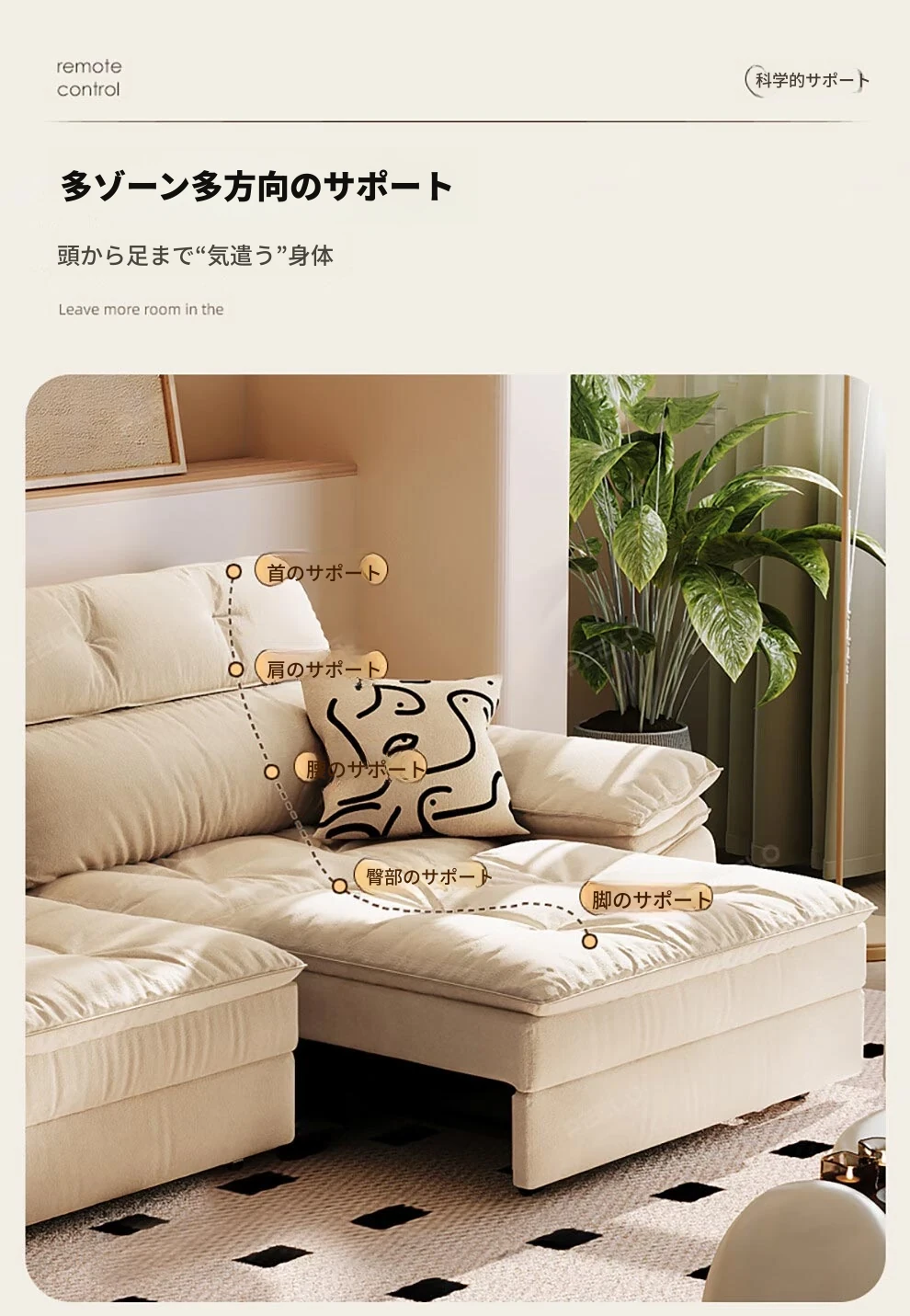 2025年新登場!甄皮の多機能電動ソファ - クリーム風デザインで、リビングでも使える折りたたみ式伸縮布張りソファベッド。快適さとスタイルを兼ね備えた、理想的な空間作りをお手伝いします!