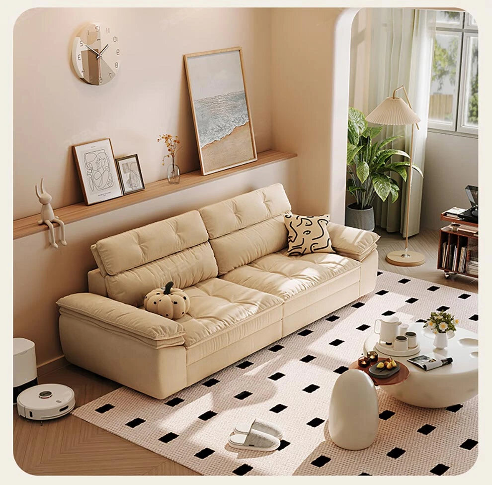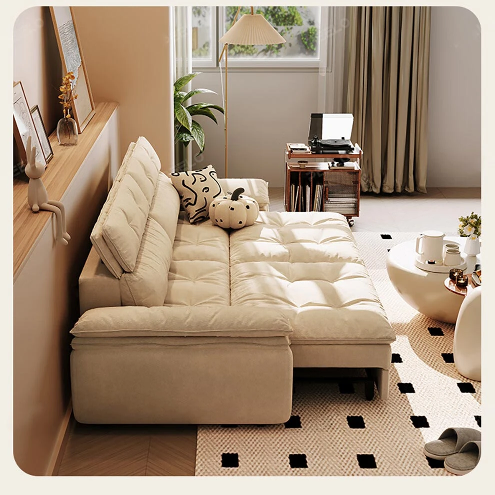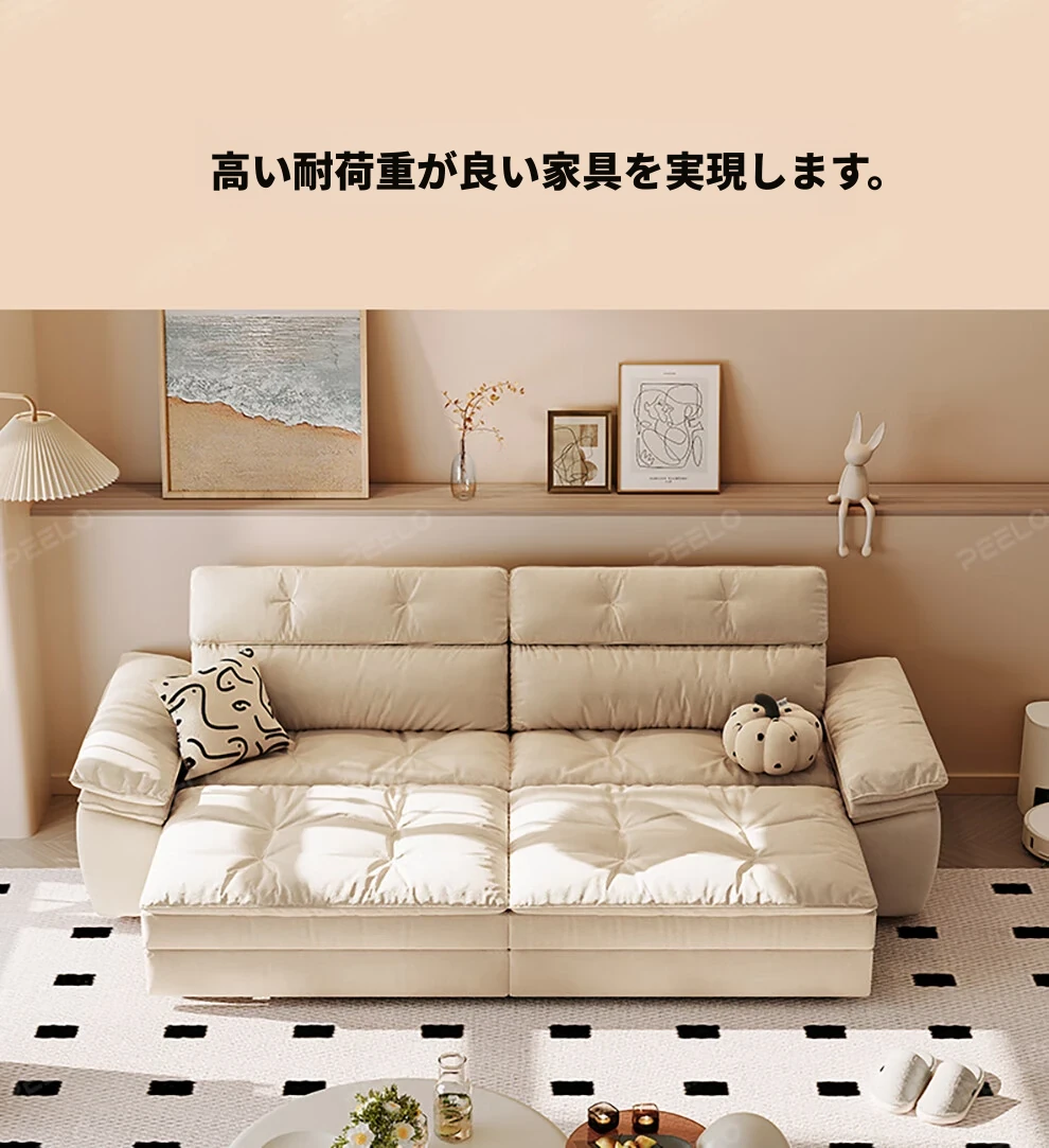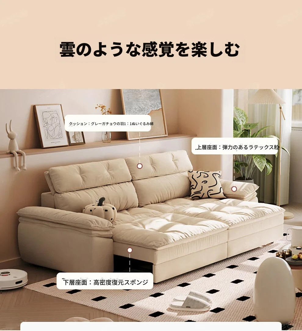 2025年新登場!甄皮の多機能電動ソファ - クリーム風デザインで、リビングでも使える折りたたみ式伸縮布張りソファベッド。快適さとスタイルを兼ね備えた、理想的な空間作りをお手伝いします!