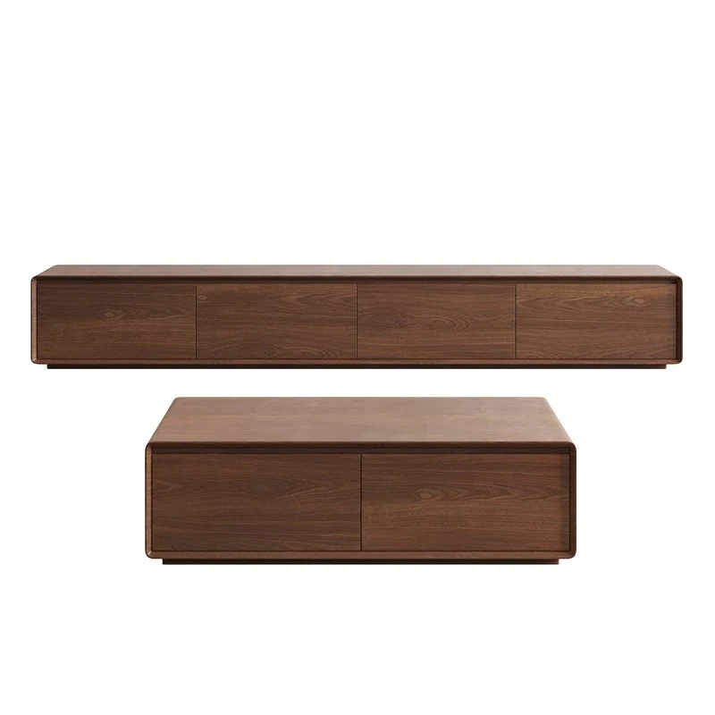 Abison Solid Wood TV Stand and Coffee Table Set - Elegant Vintage Walnut Entertainment Cabinet for Living Room, Perfect for Home Audio and Visual Experience
