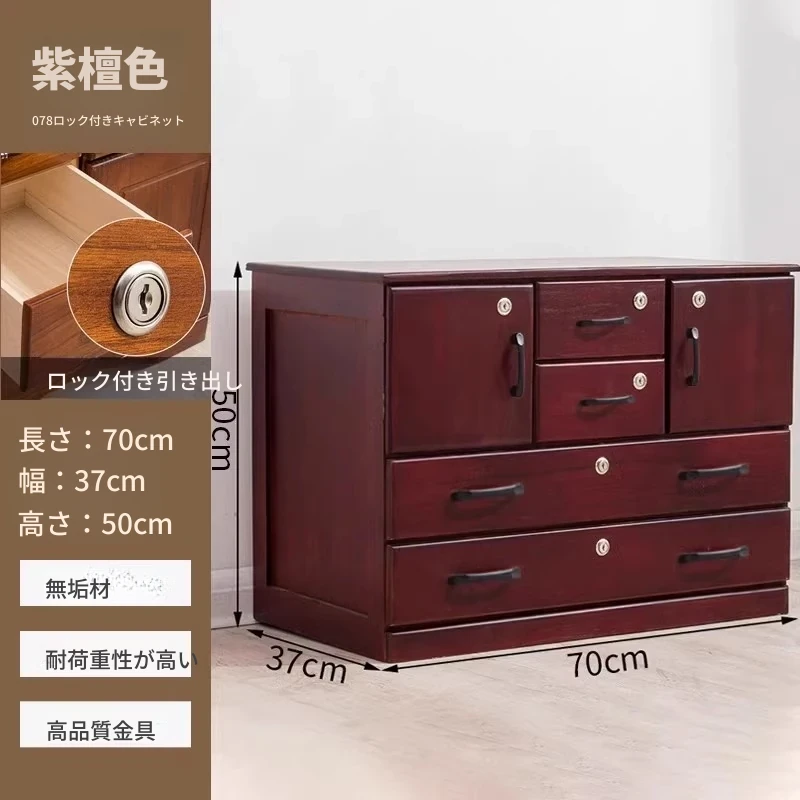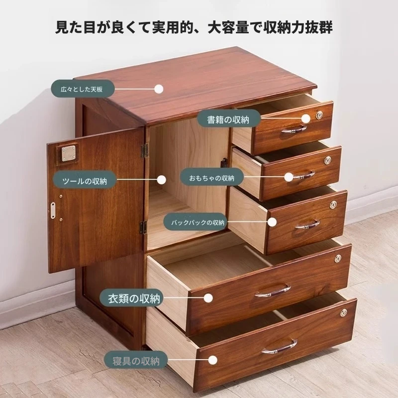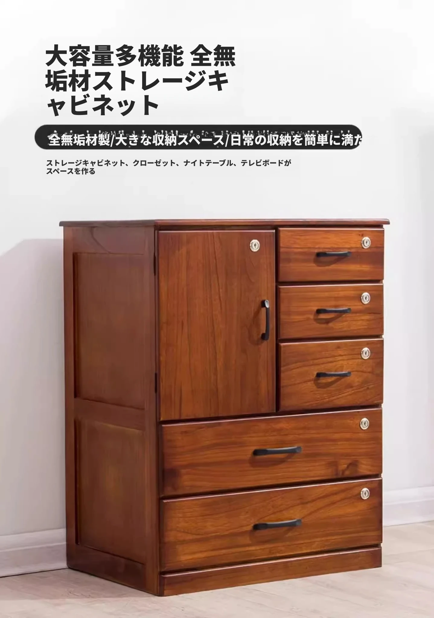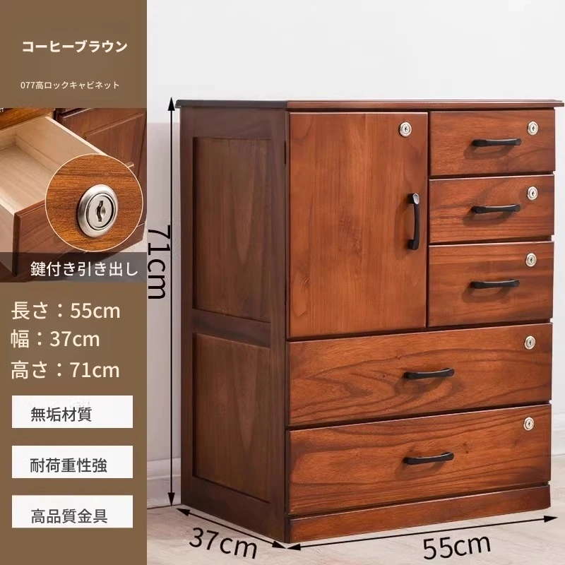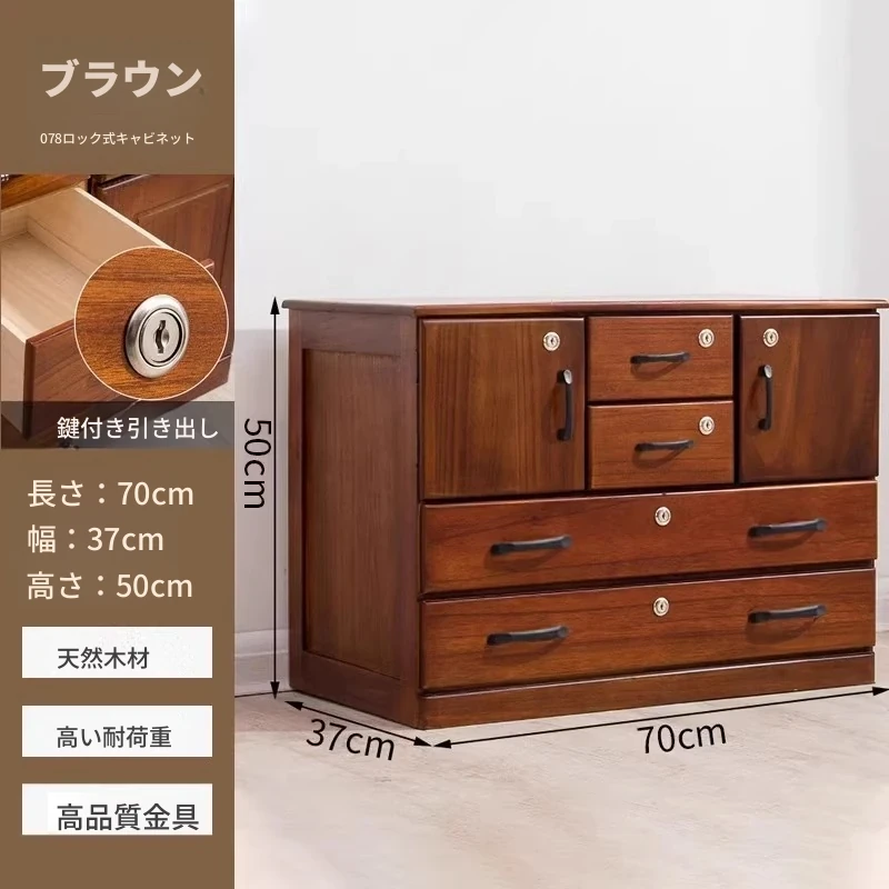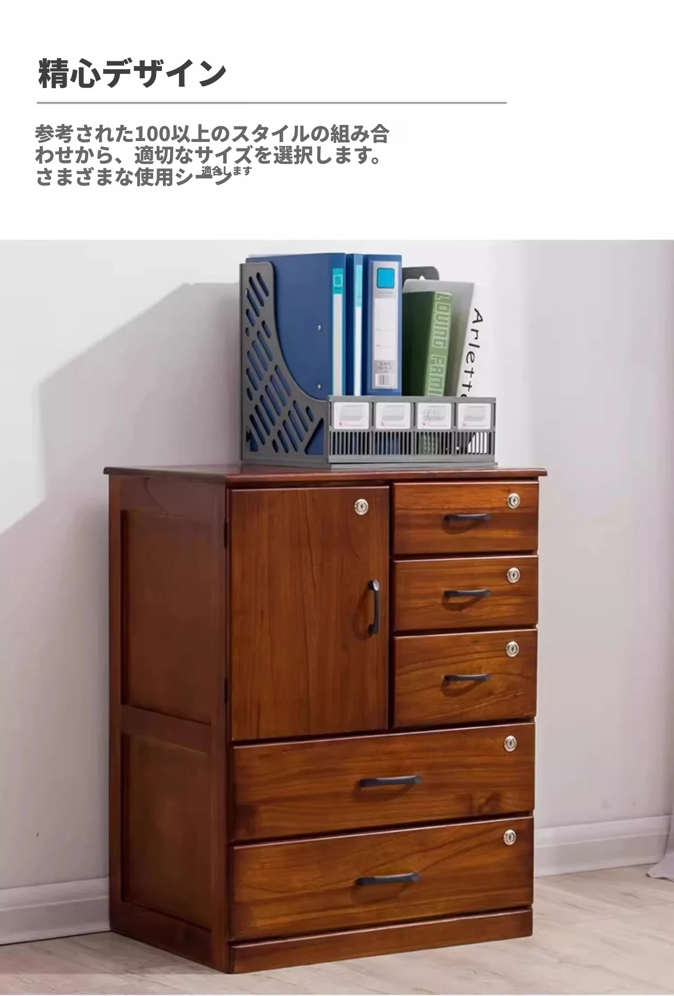 アイセン耐久性の無垢材ダンスチェスト - ベッドルームやリビングに最適な収納力抜群の引き出し付きキャビネット。鍵付きで大切な書類も安心!シンプルでスタイリッシュなデザインで、あなたの空間を華やかに彩ります。
