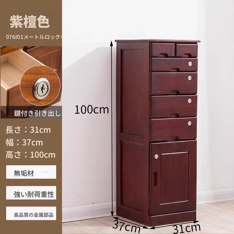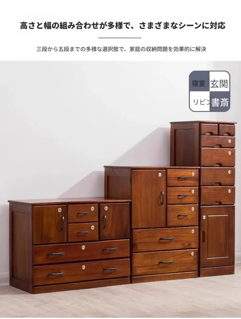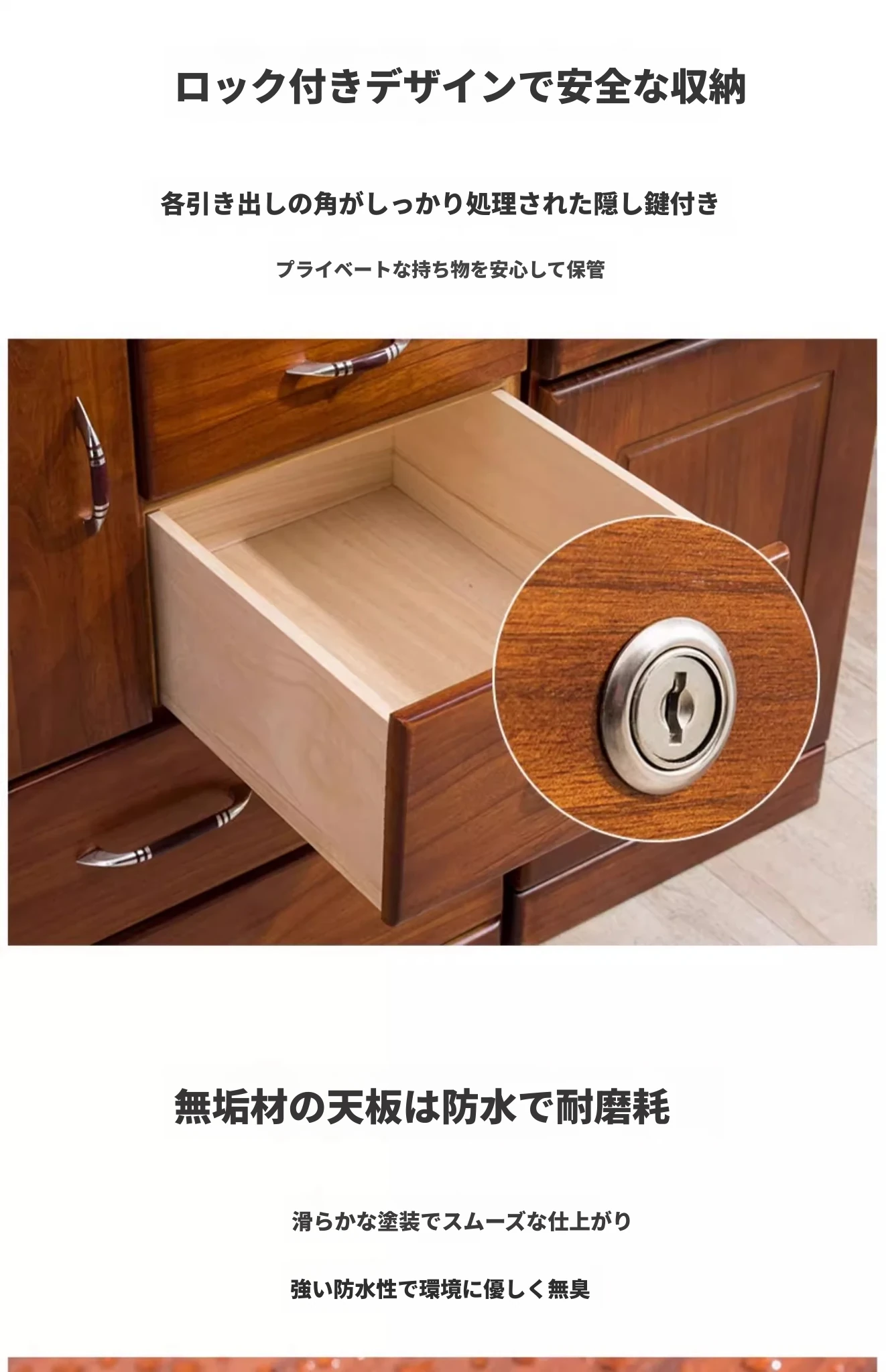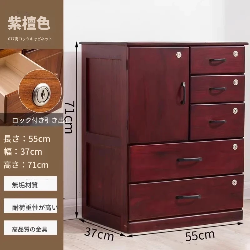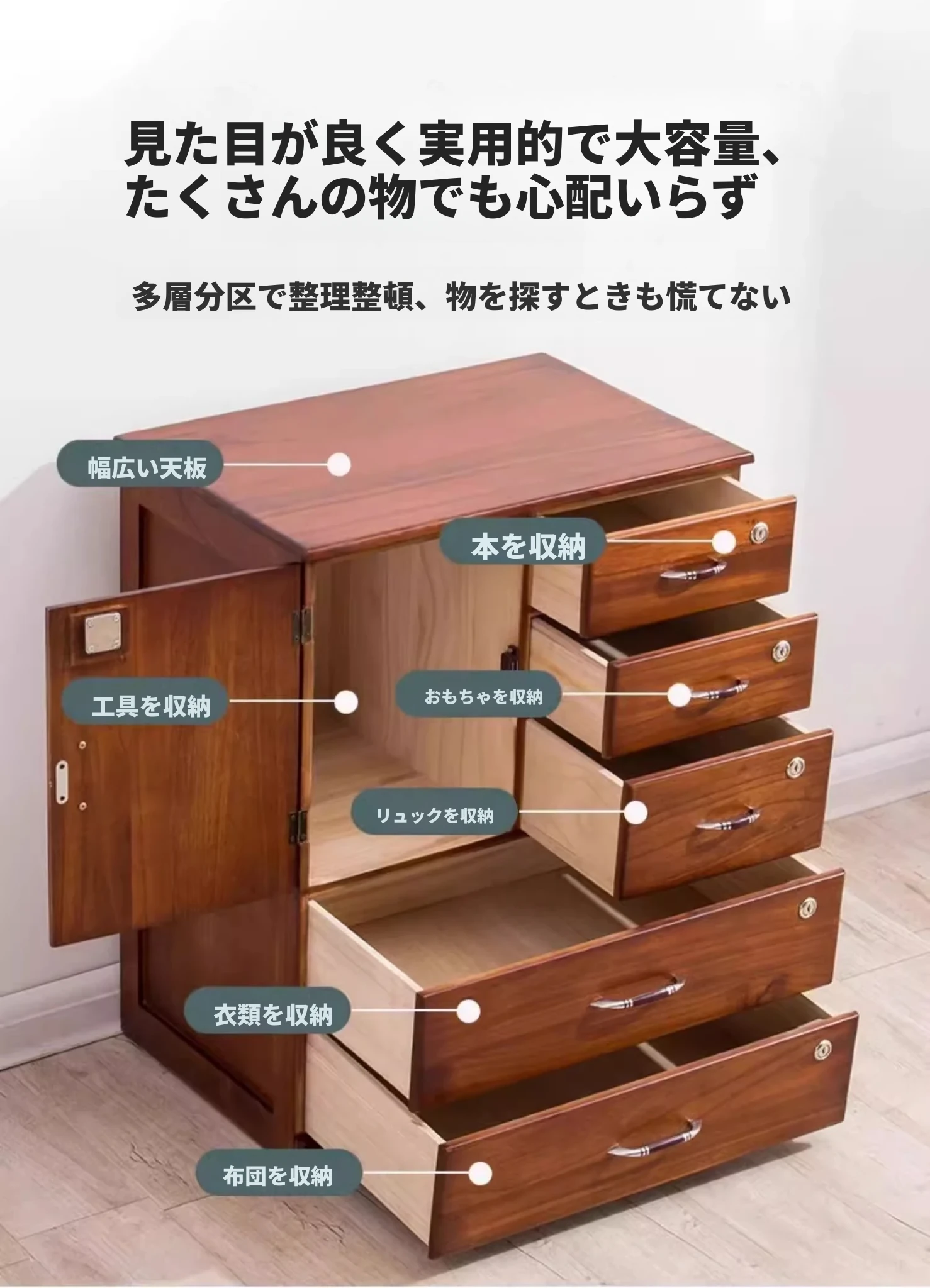 アイセン耐久性の無垢材ダンスチェスト - ベッドルームやリビングに最適な収納力抜群の引き出し付きキャビネット。鍵付きで大切な書類も安心!シンプルでスタイリッシュなデザインで、あなたの空間を華やかに彩ります。