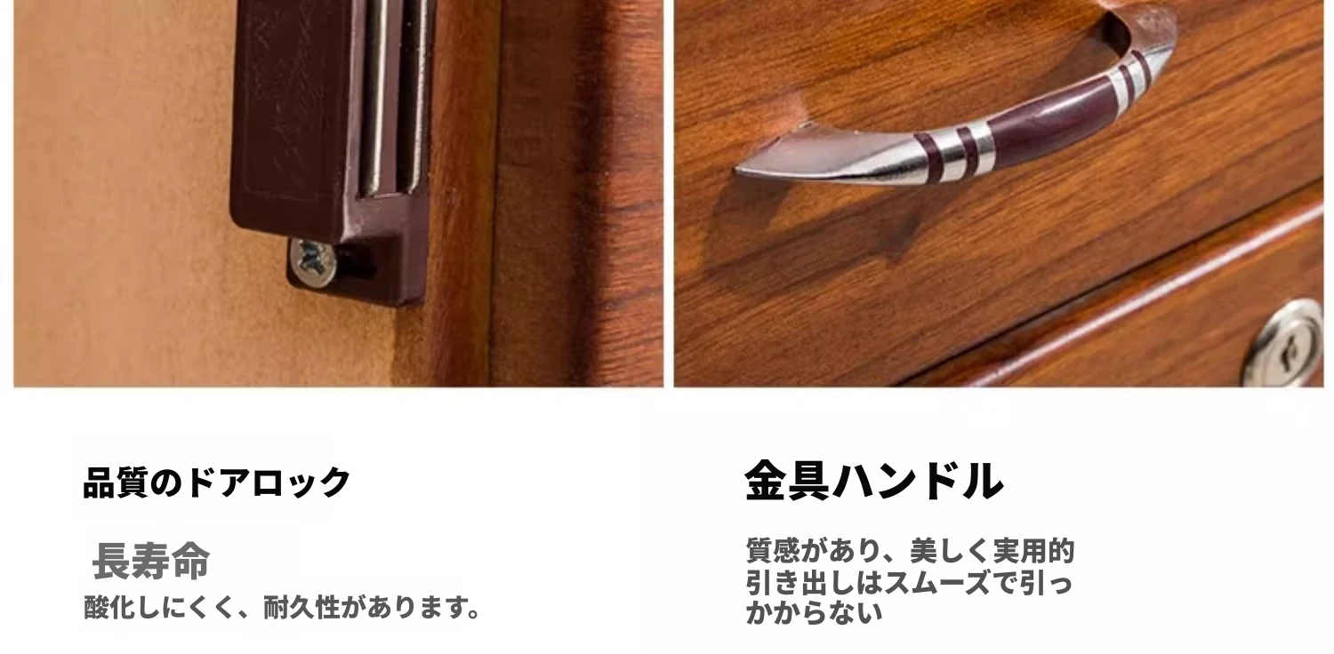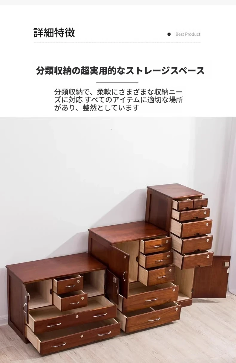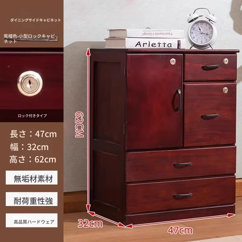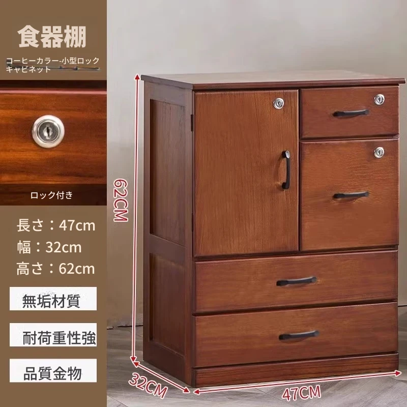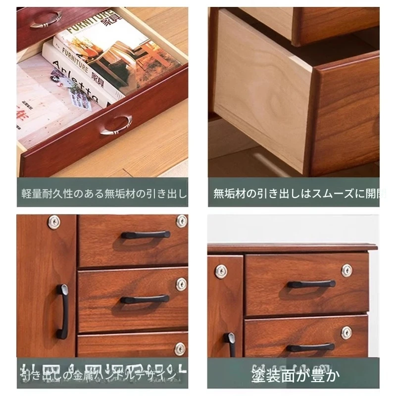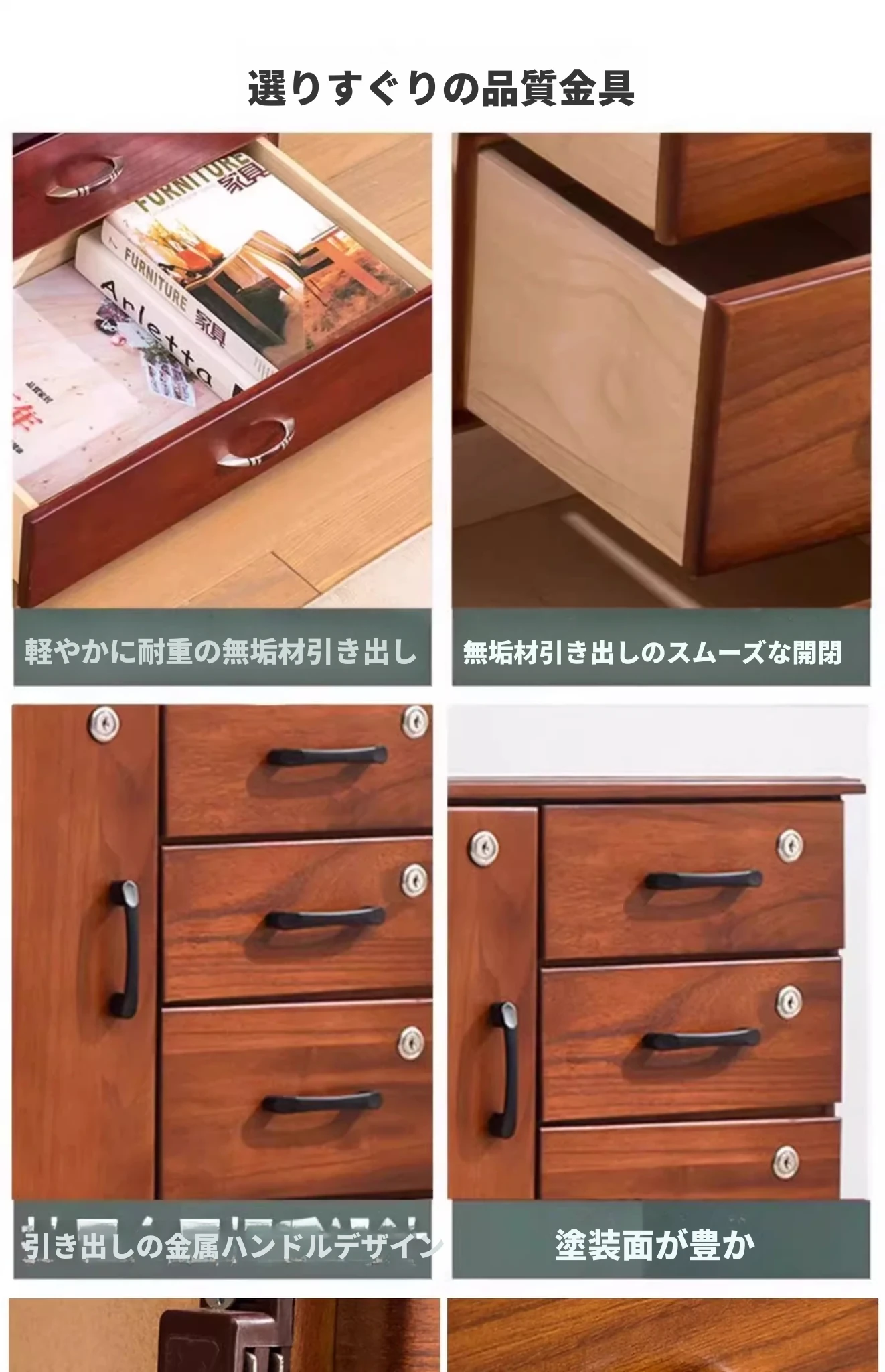 アイセン耐久性の無垢材ダンスチェスト - ベッドルームやリビングに最適な収納力抜群の引き出し付きキャビネット。鍵付きで大切な書類も安心!シンプルでスタイリッシュなデザインで、あなたの空間を華やかに彩ります。