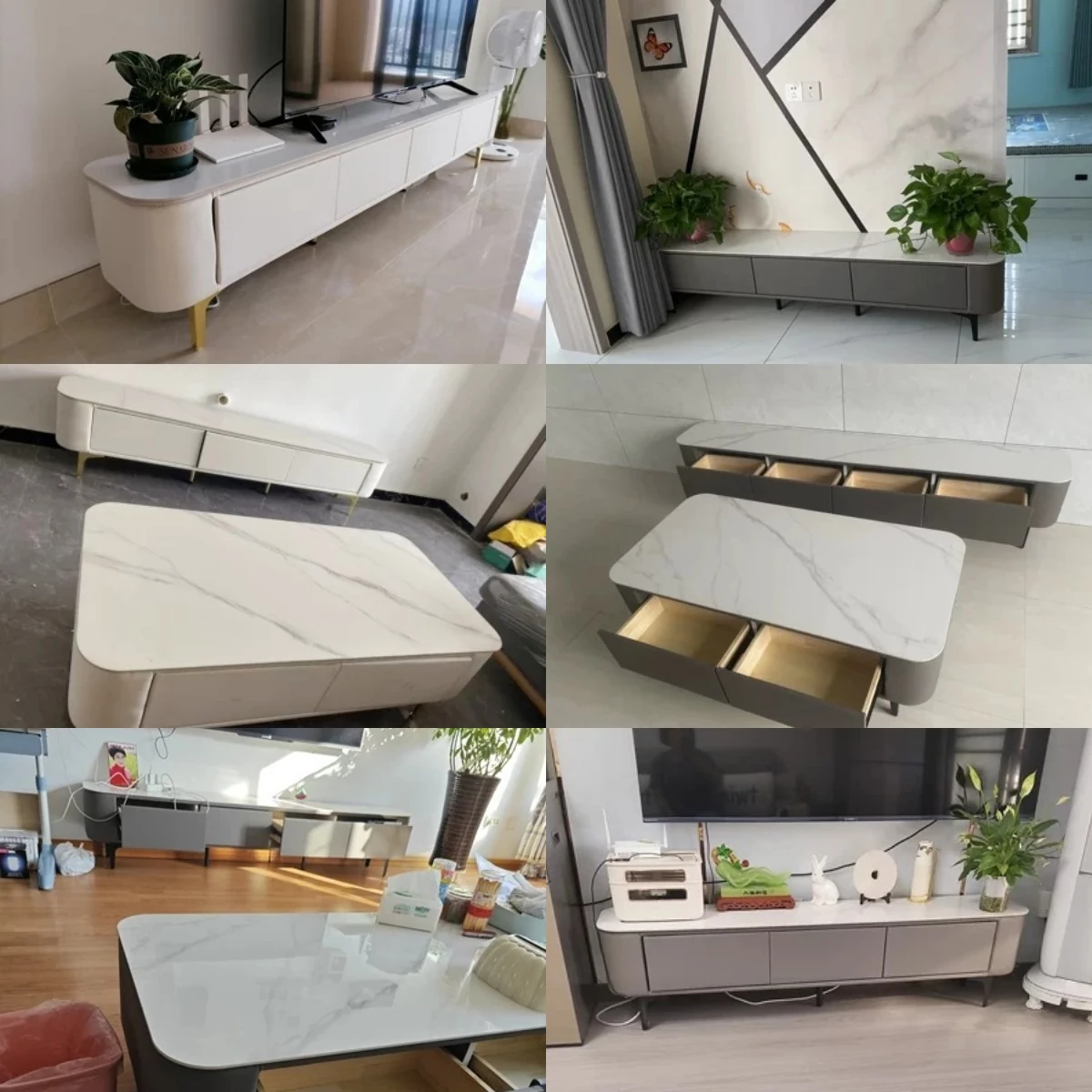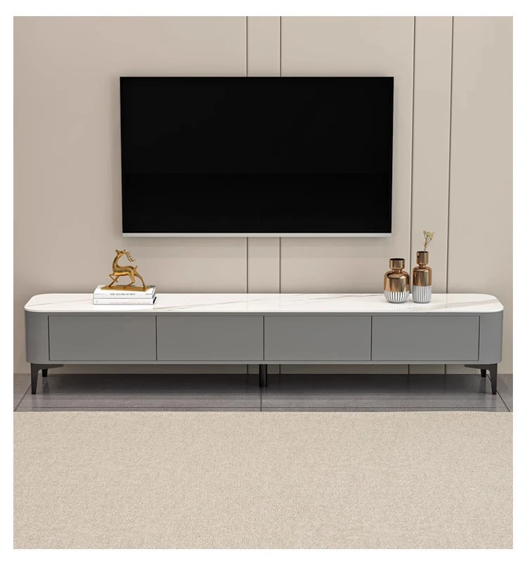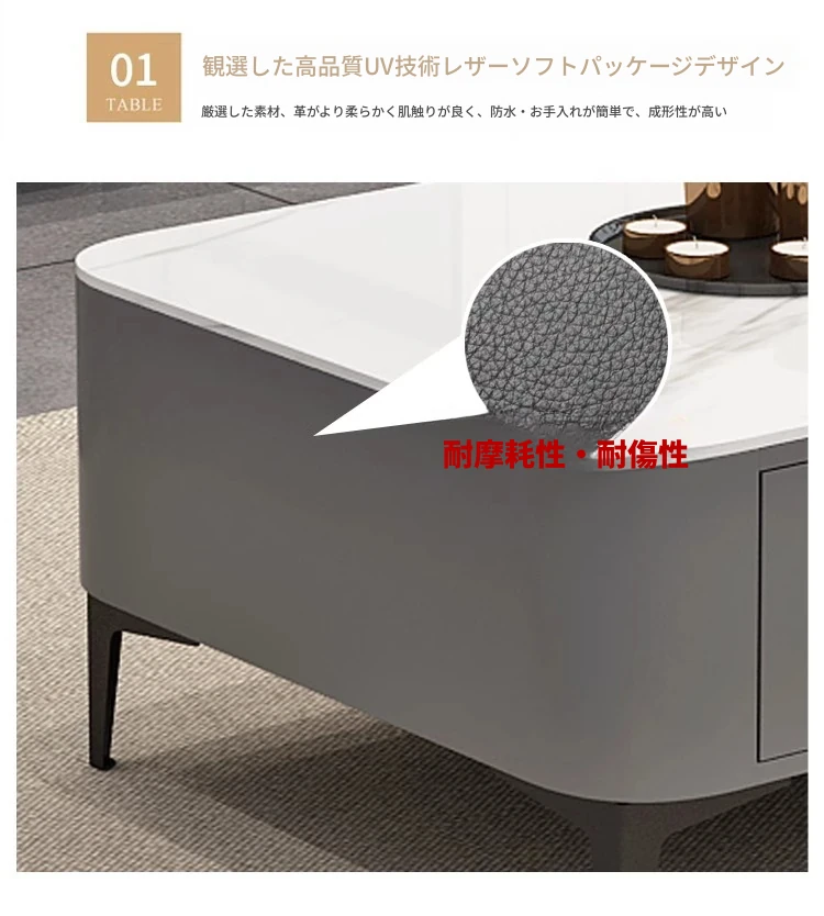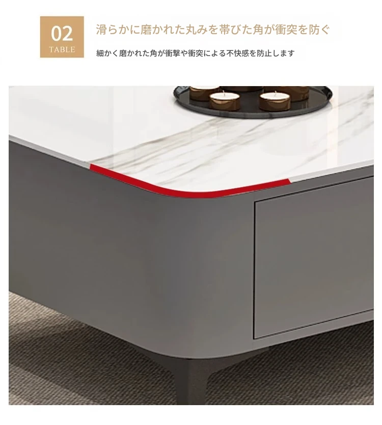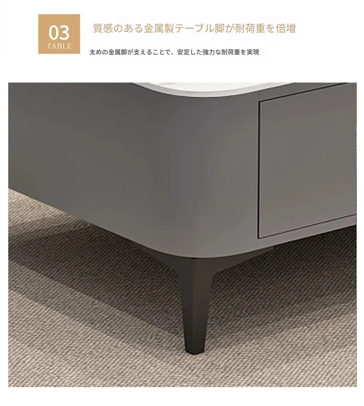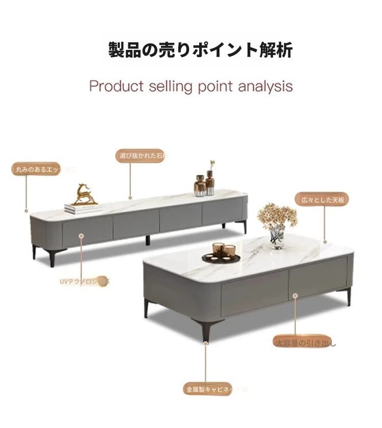 テレビボード1.8メートル+1.2メートルコーヒーテーブル【灰色+白色の丸角岩板】