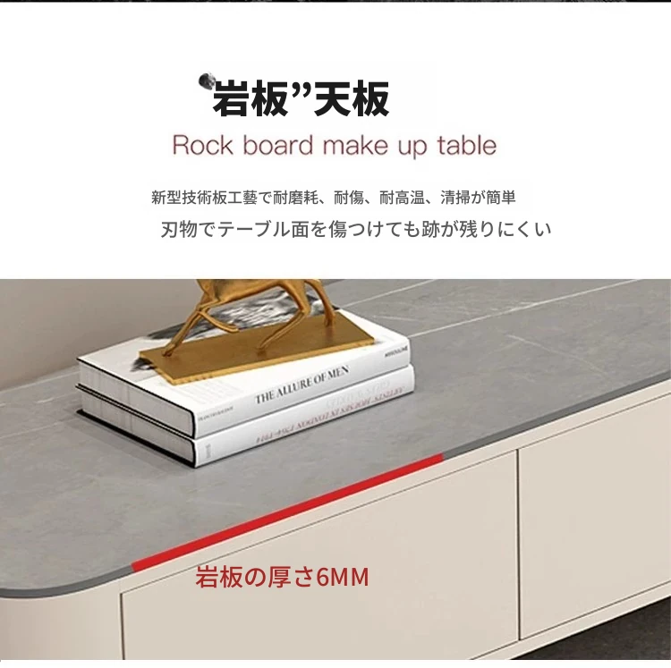 テレビ台1.8メートル+1.2メートルのテーブル【暖白+グレーの角丸岩板】