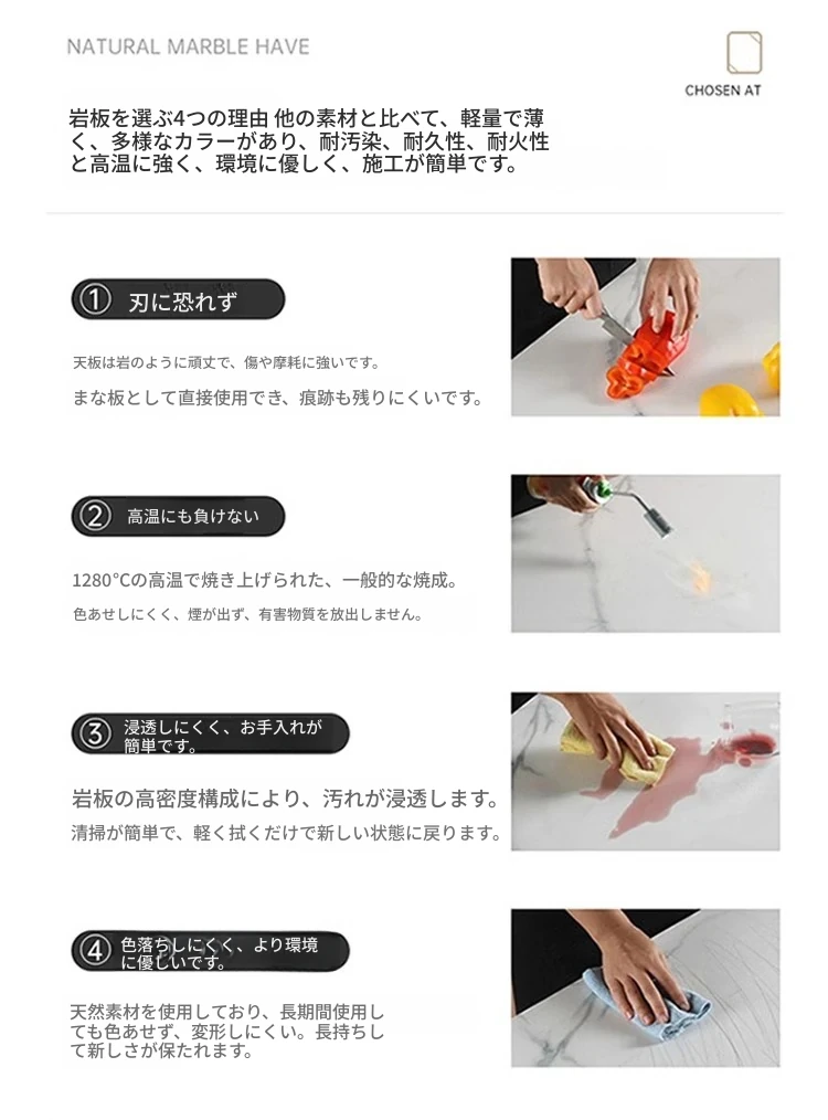 1.3メートルのテーブル【ラウンドコーナーの石板面】(色はカスタマーサービスにお問い合わせください)