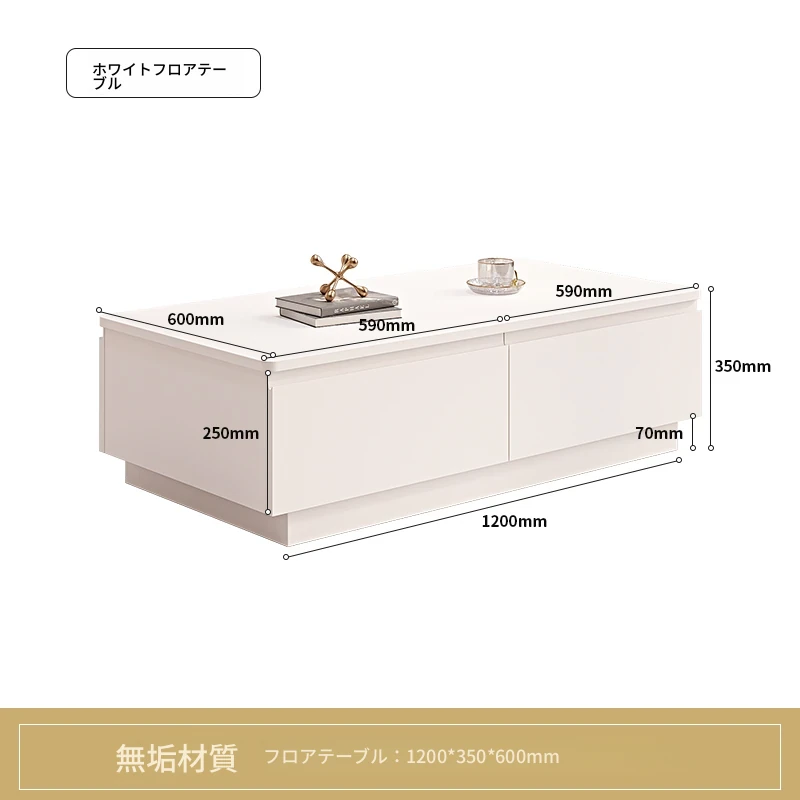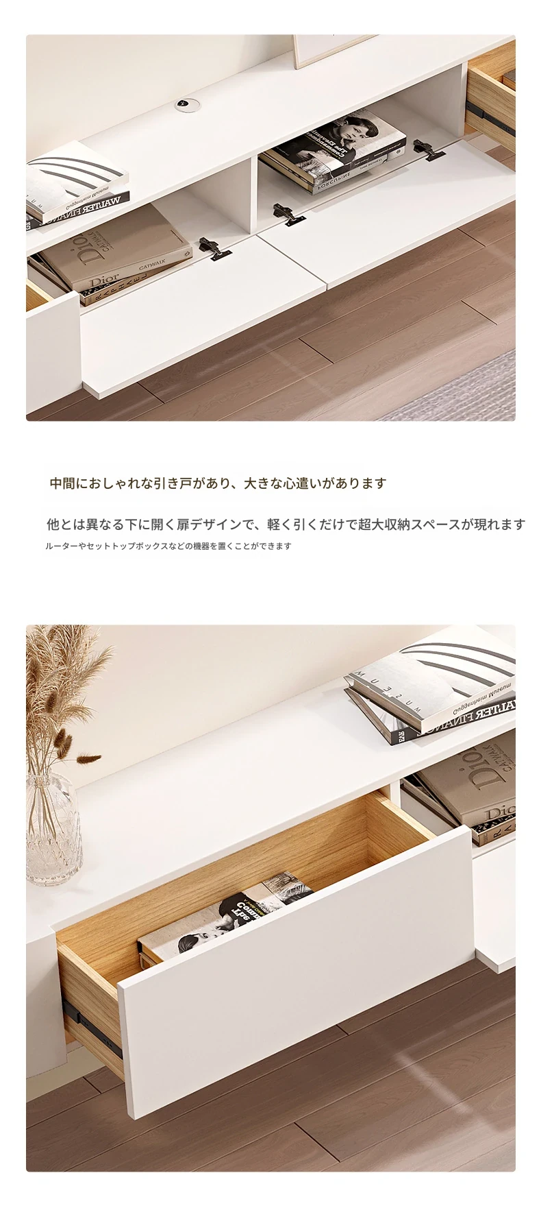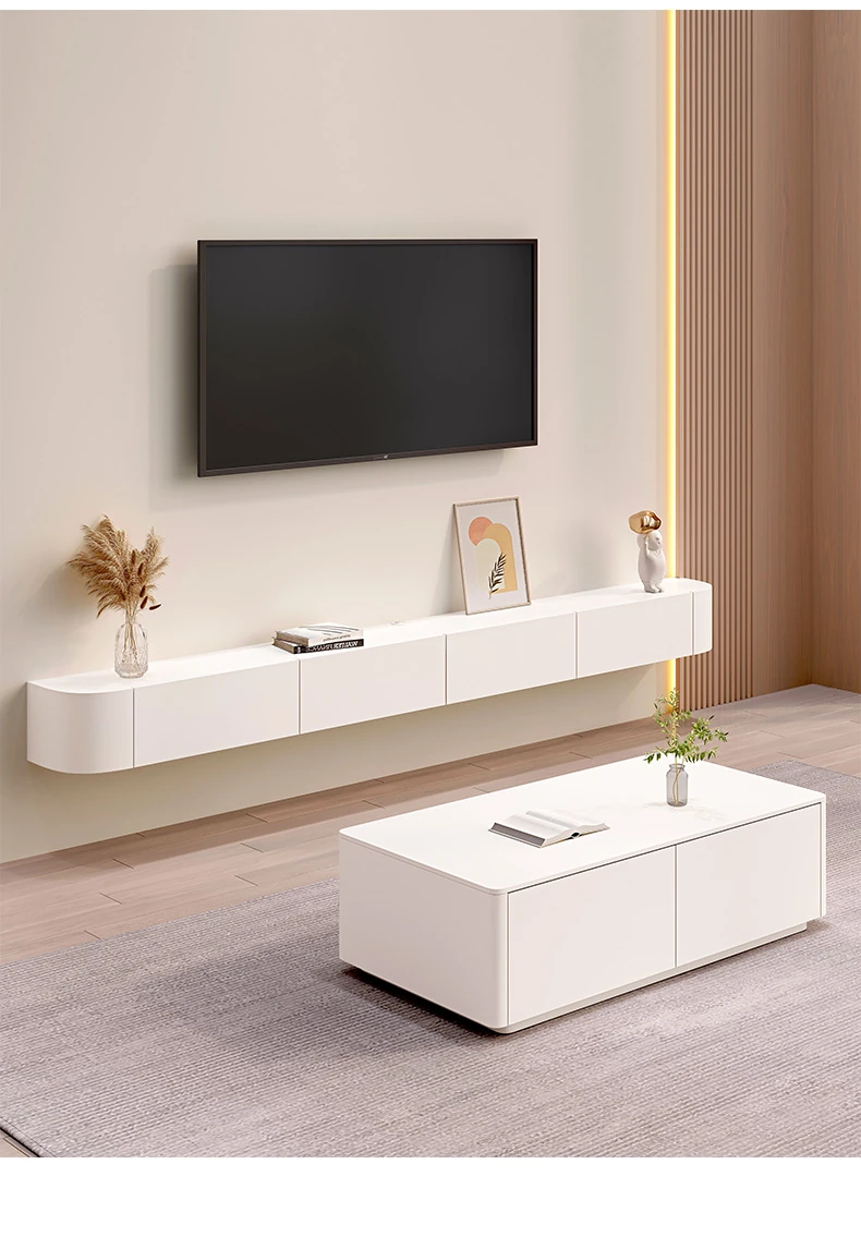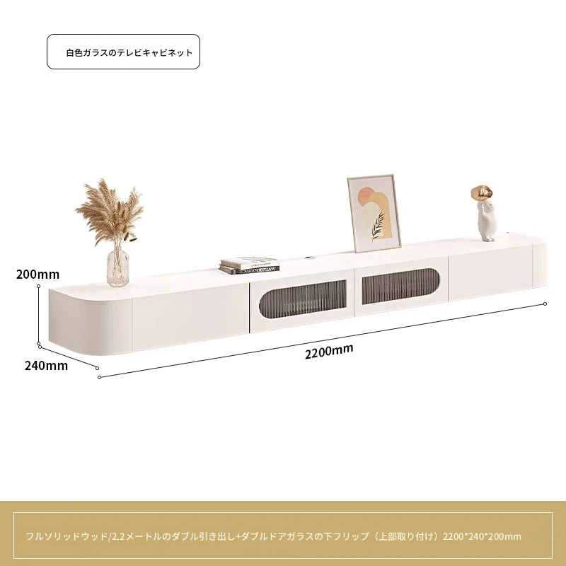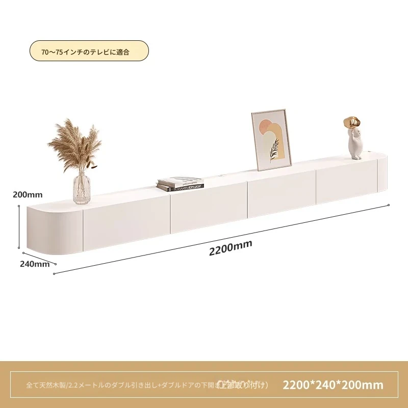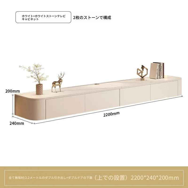 2.2m丸角テレビキャビネット-白-岩板白 (壁取り付け無料)