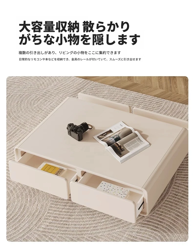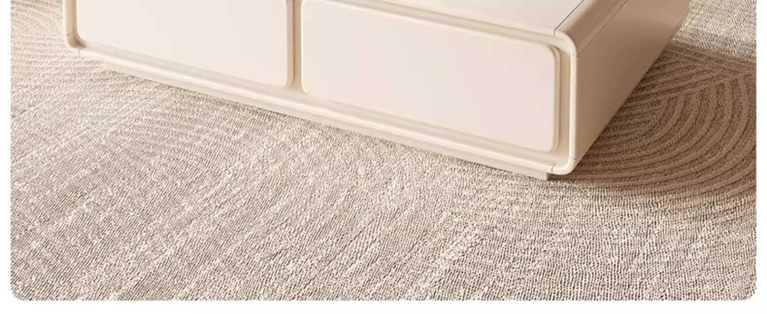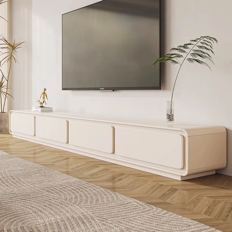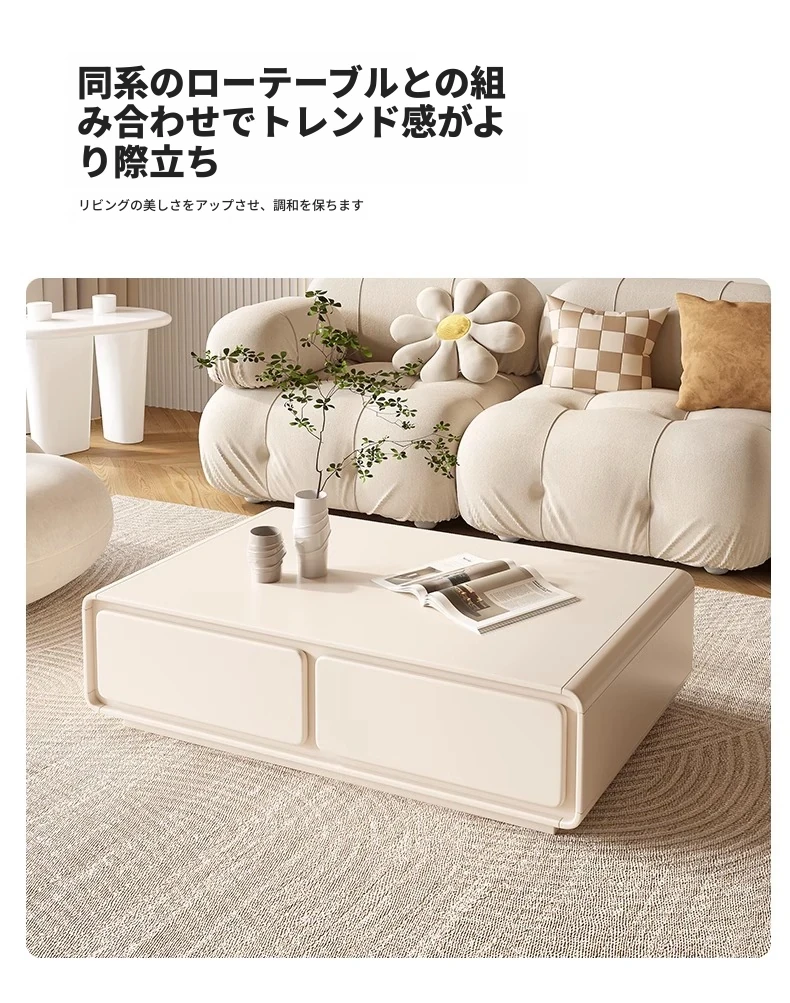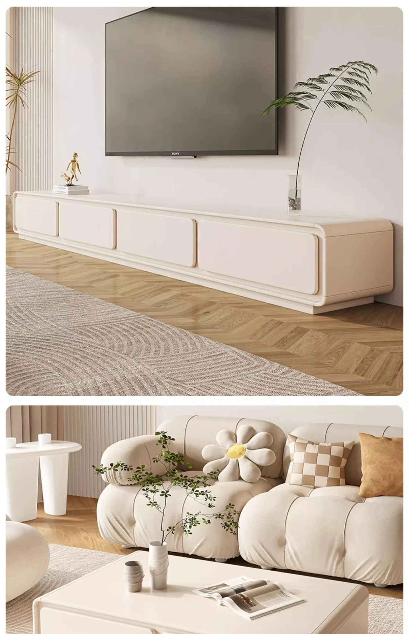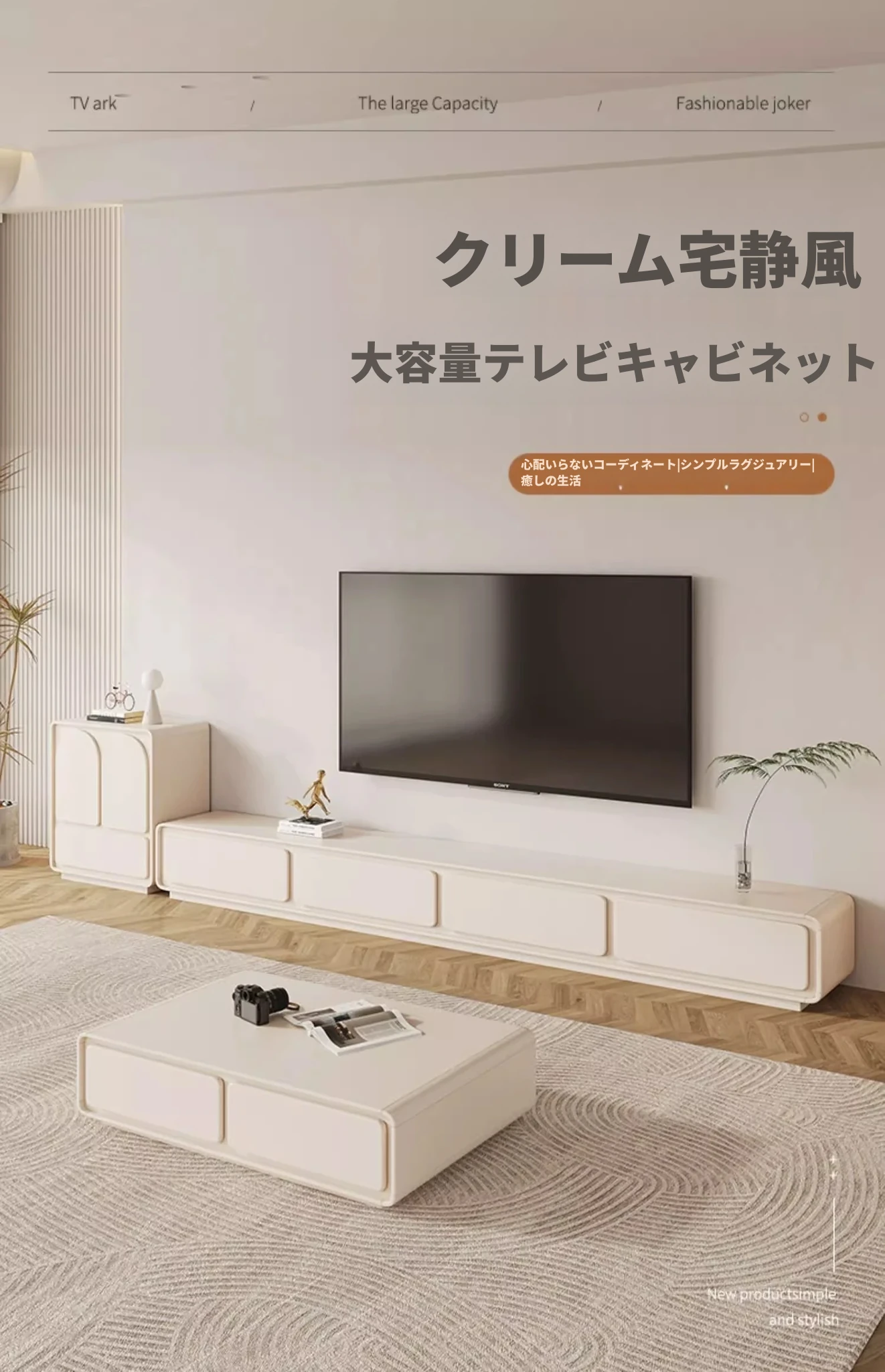 オーヤ・イッカの侘寂スタイルクリームテレビボードとシンプルモダンのコーヒーテーブルセット - 小さなリビングルームに最適なラグジュアリーなミニマリズムを実現!