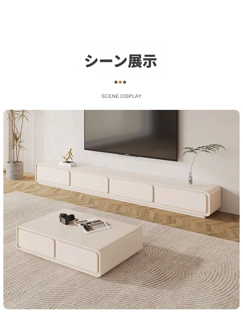 2.2メートルテレビキャビネット+1.2メートルコーヒーテーブルセット【安全な丸角 配送と設置】