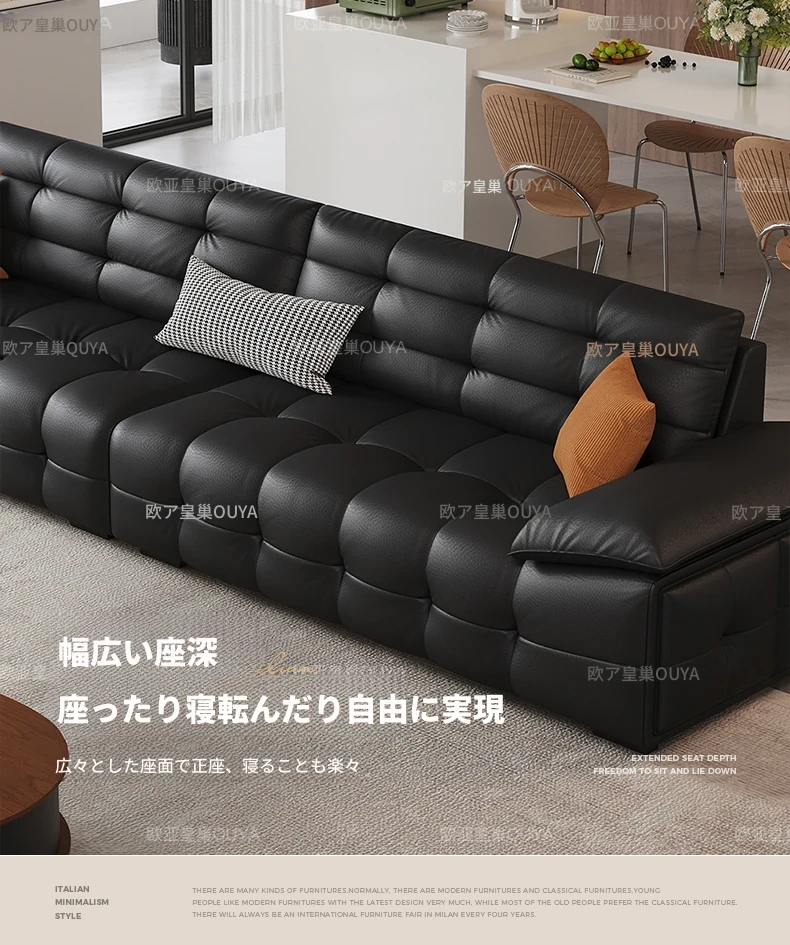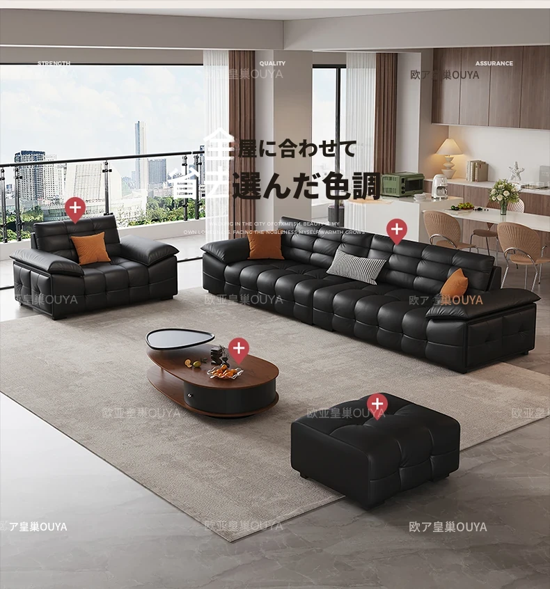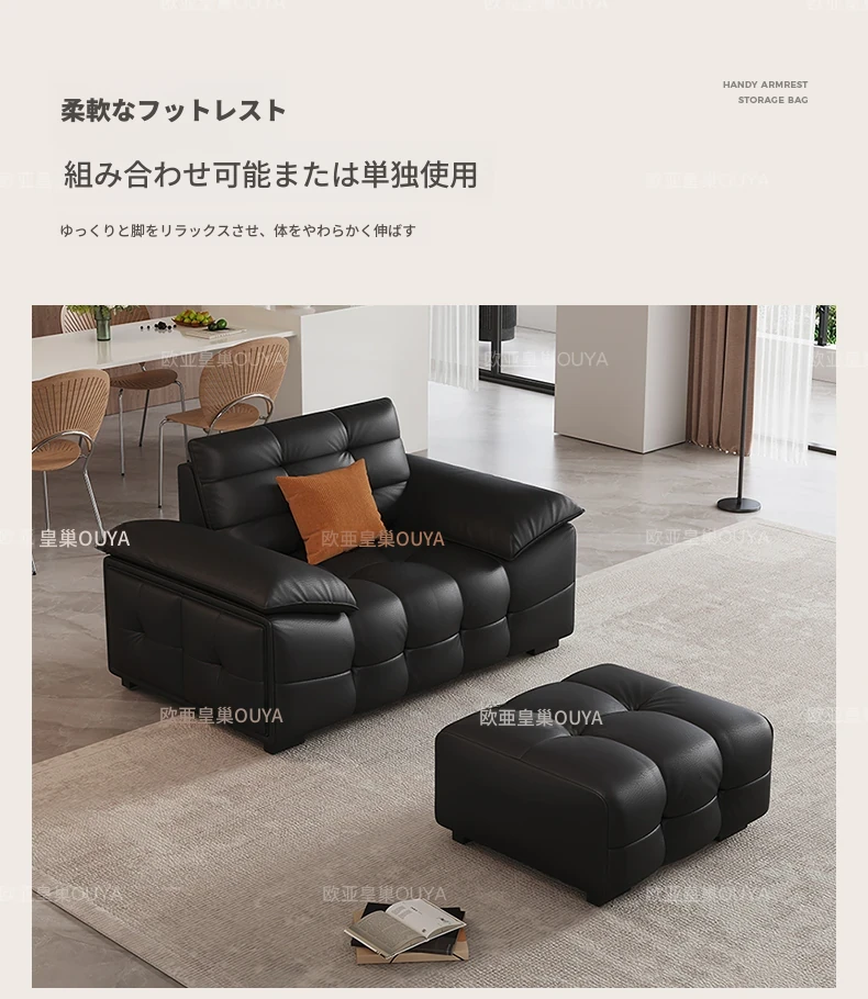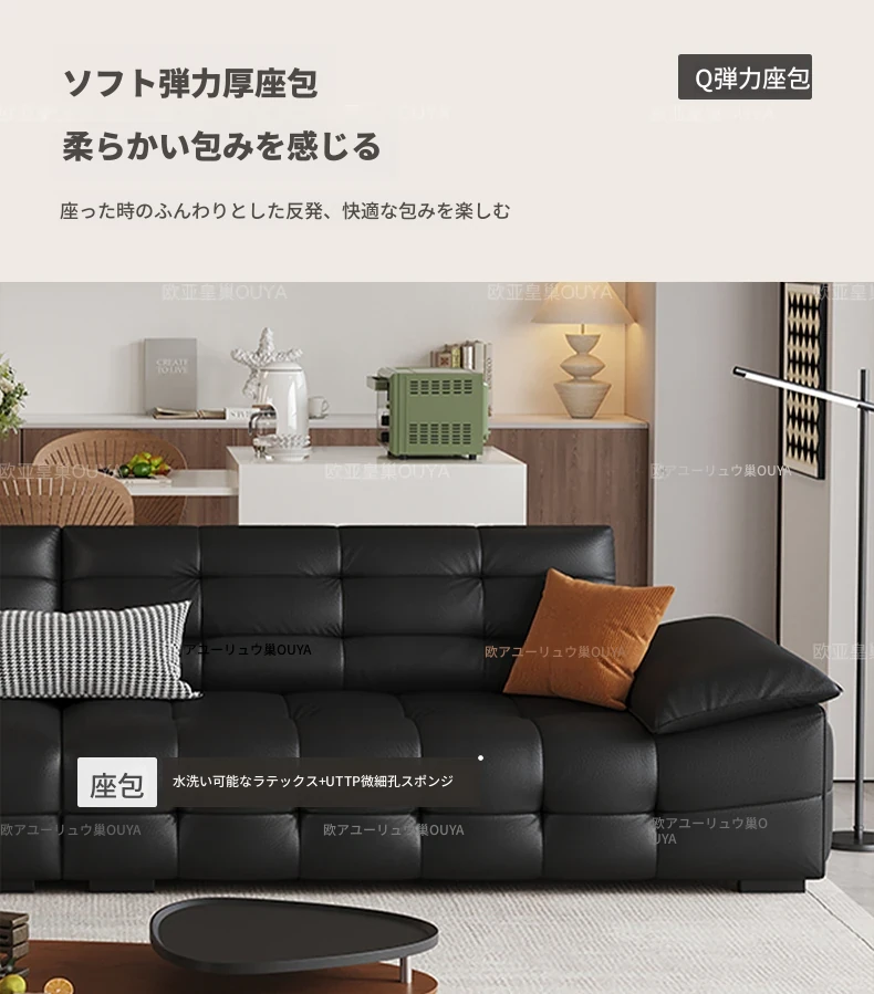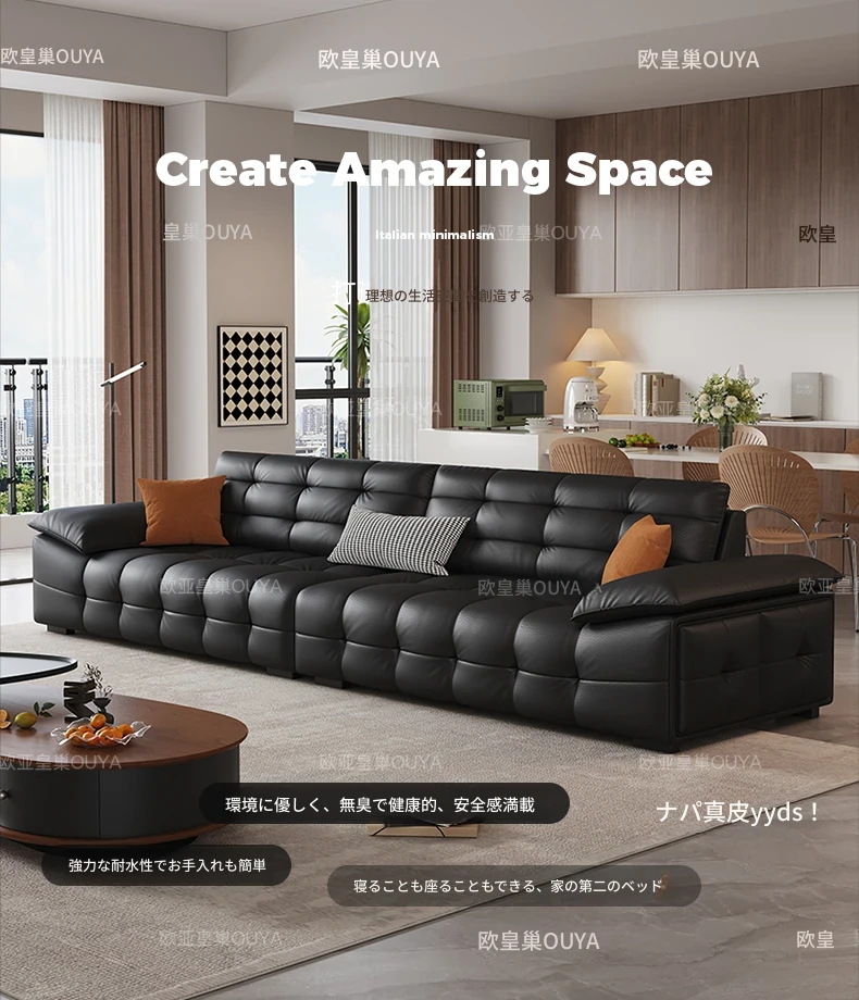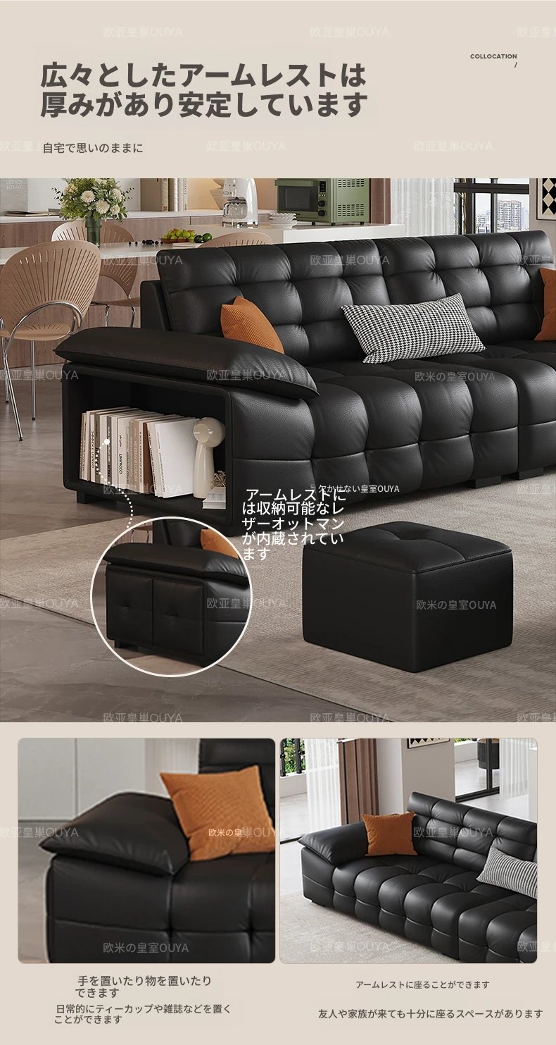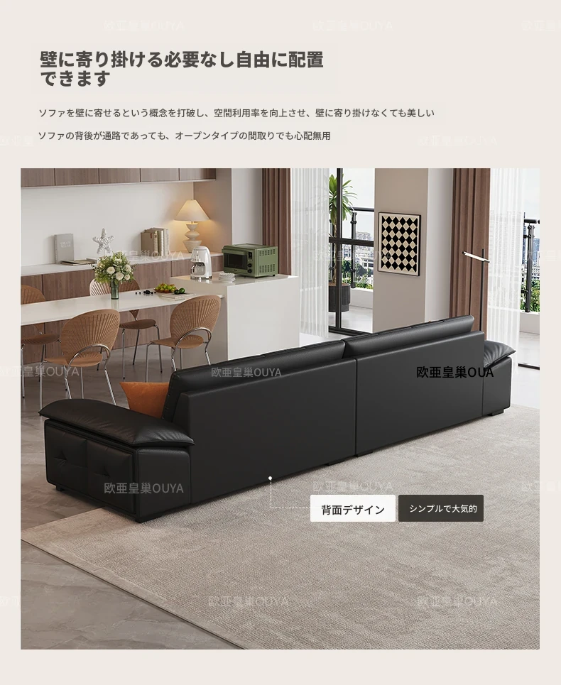 オーシャンアジアのローレンススタイル高背イタリアンレザーソファ - コンパクトで上質な高級ミニマルデザイン。洗練されたブラックカラーで、おしゃれなリビングを演出!