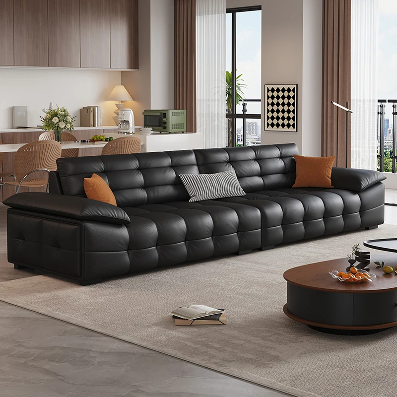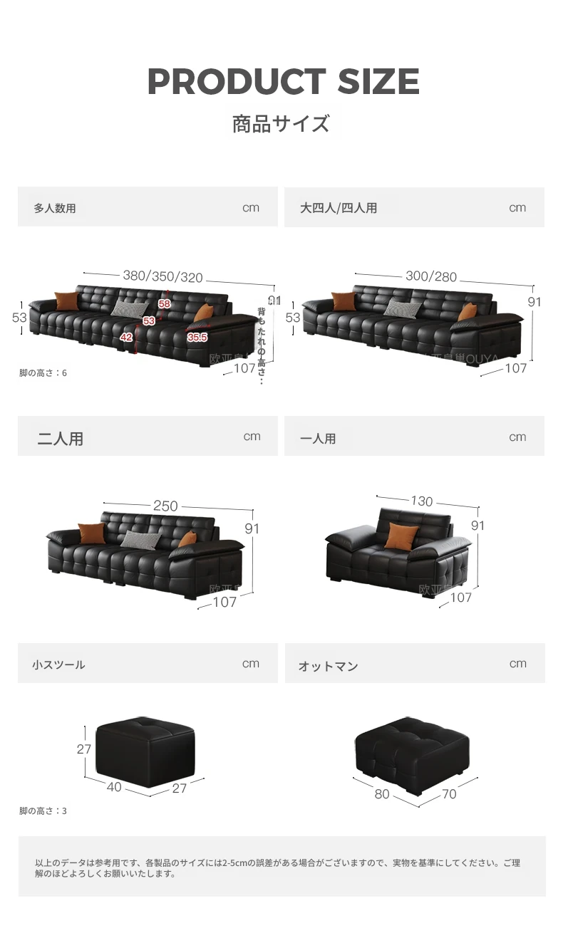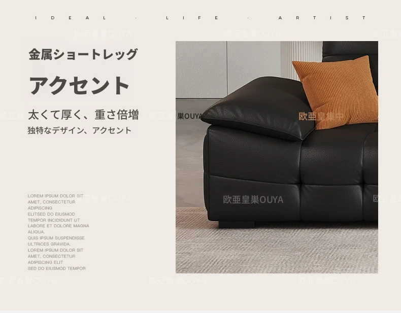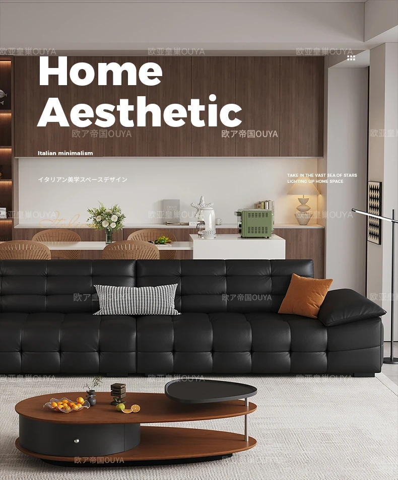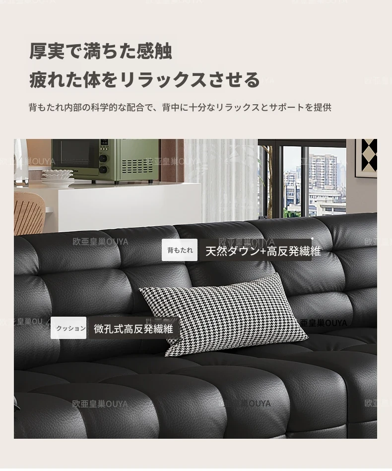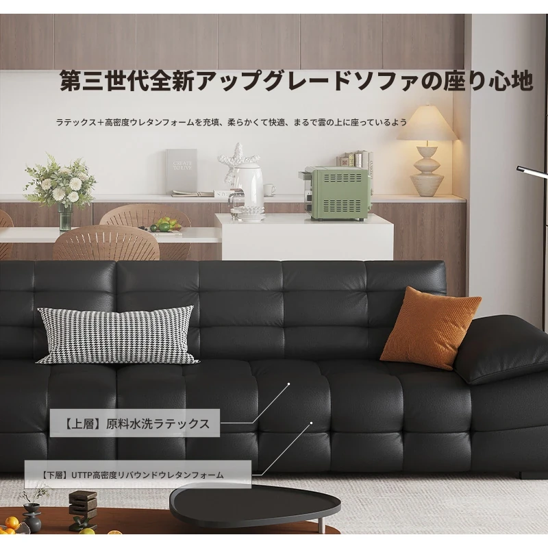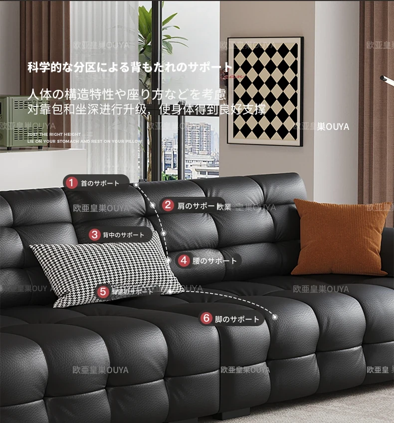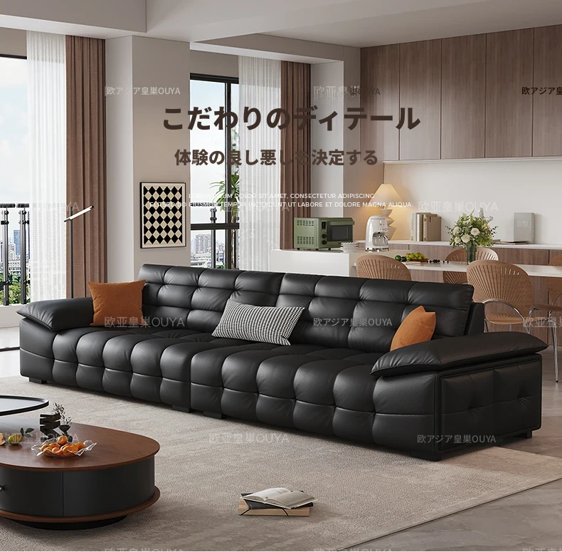 オーシャンアジアのローレンススタイル高背イタリアンレザーソファ - コンパクトで上質な高級ミニマルデザイン。洗練されたブラックカラーで、おしゃれなリビングを演出!