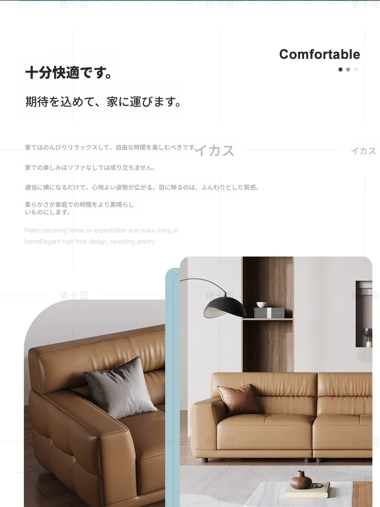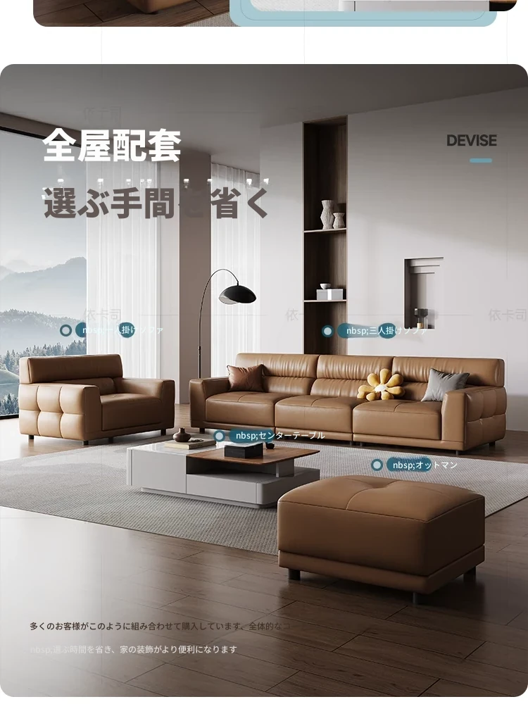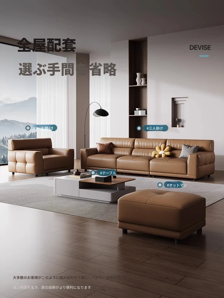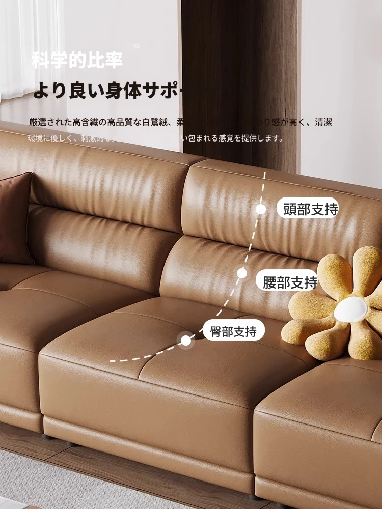 グフィイタリアンラグジュアリー軽量ソファ|モダンミニマリストデザイン、コンパクトなリビングにぴったりな本革リクライニングソファ。高品質なトップレザー使用で、優雅な快適さを実現!