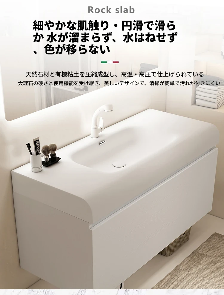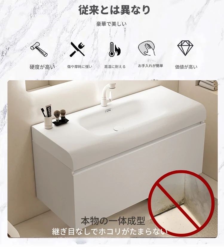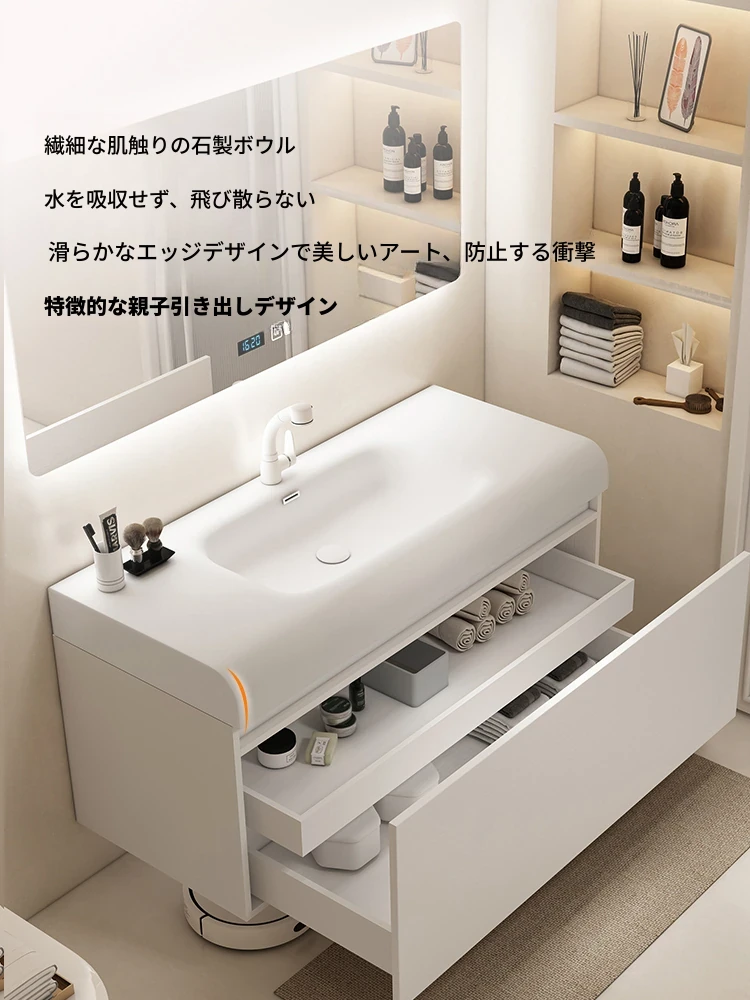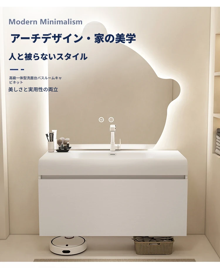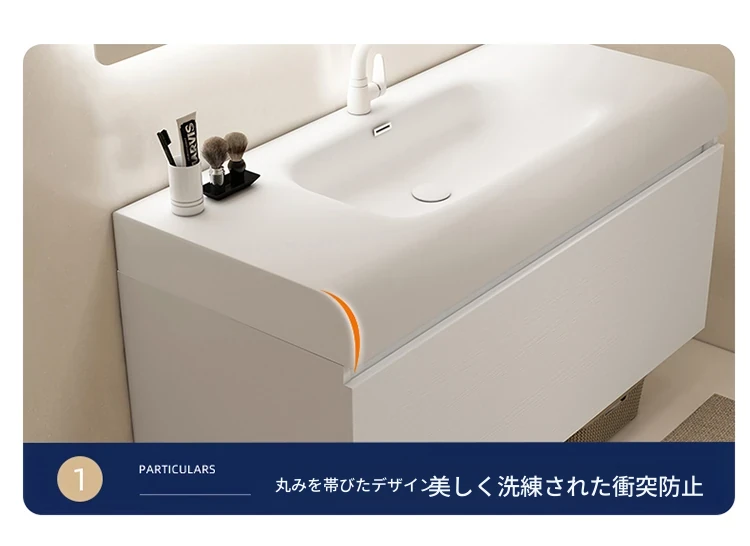 インターコンチネンタル 日本式ミニマリズム 洗面台・バスルームキャビネットセット おしゃれな洗面所の洗面ボウルと吊りキャビネットで空間をスッキリ整えます。理想のバスルームを実現!