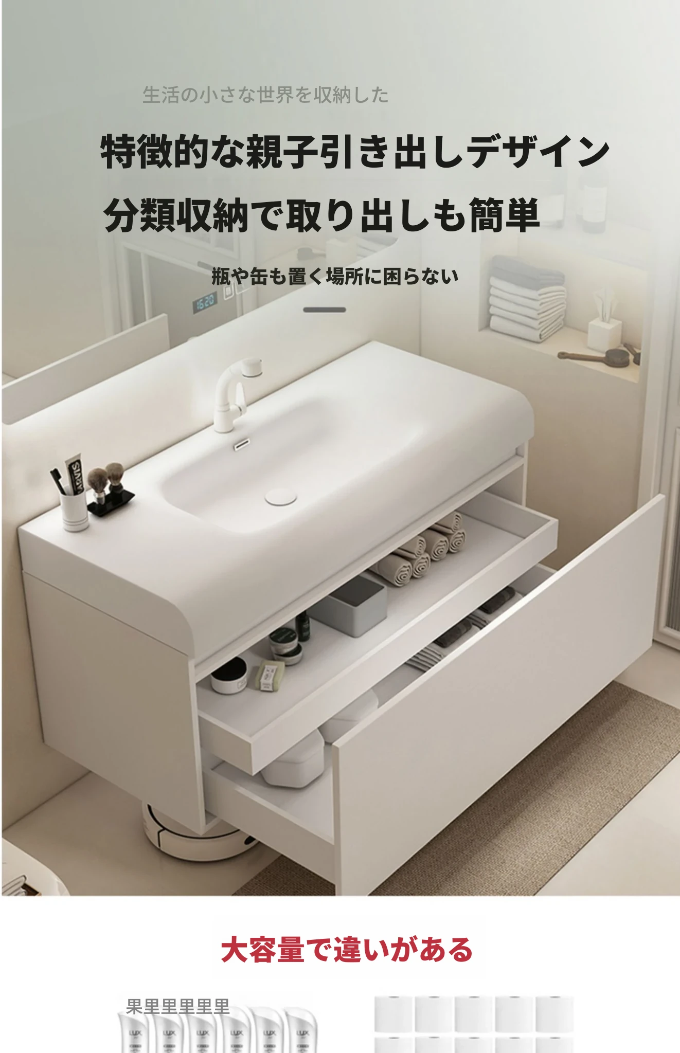90CMスマート収納ミラーキャビネット付き(付属品あり)