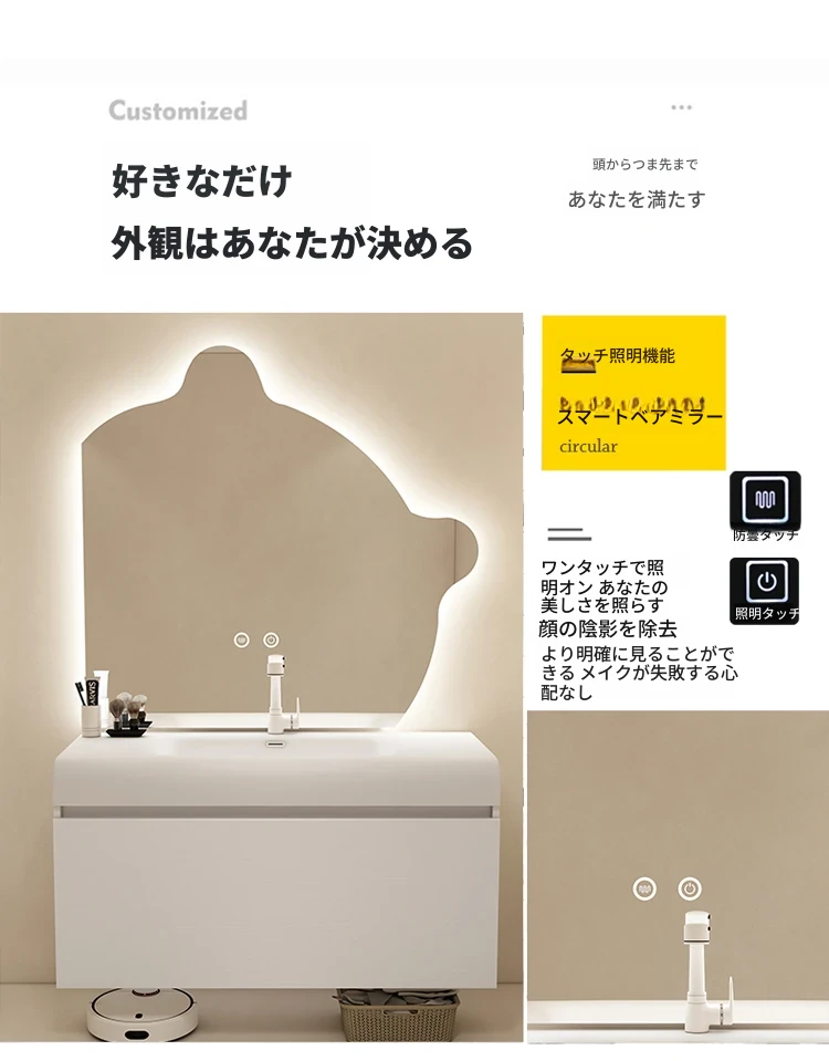 80CMスマート収納ミラーキャビネット付き(付属品あり)
