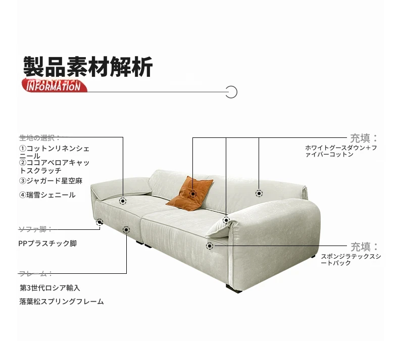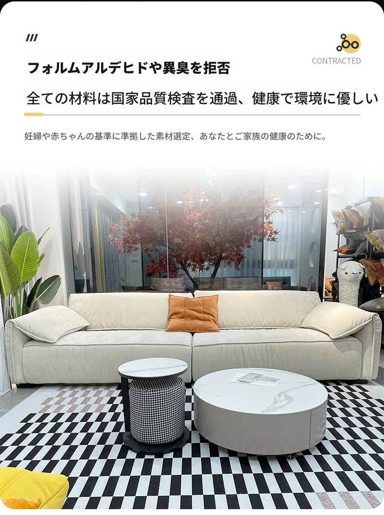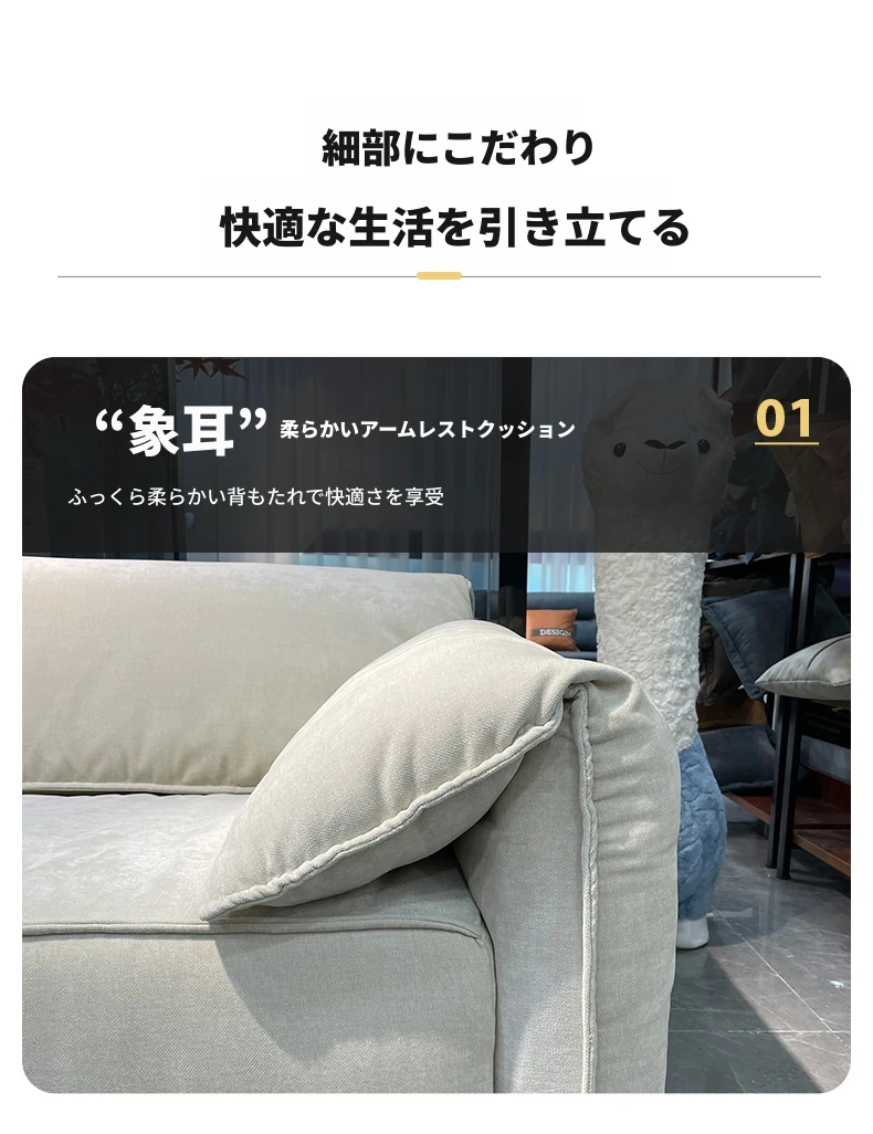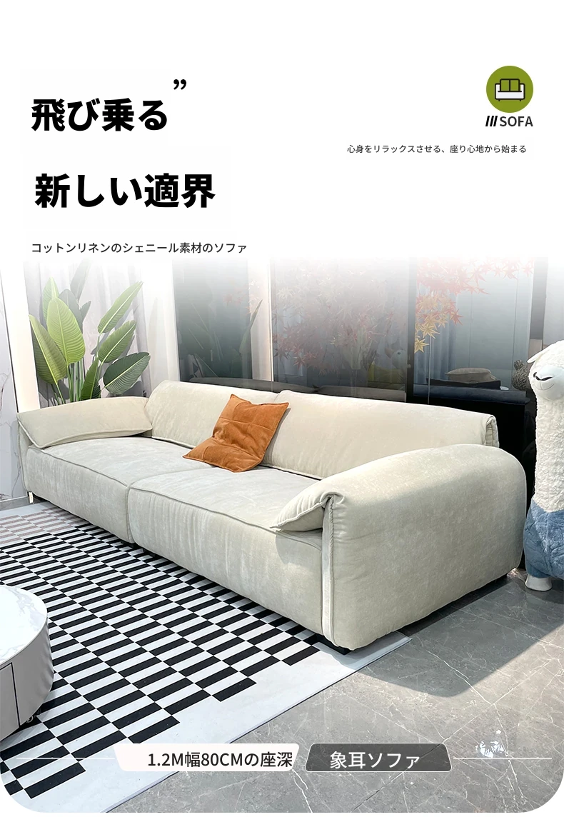 ケロイモン のラグジュアリー ラウンジ サファリソファ - 2024年新作、現代的でシンプルなデザイン、リラックスできるアイボリーカラーの象耳ソファ!リビングに最適な居心地の良い家族用ソファ。