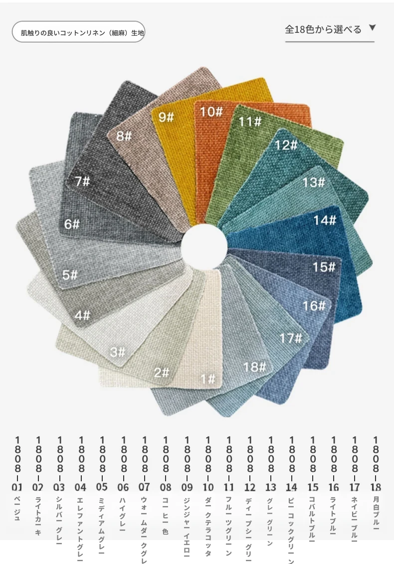 肌に優しいコットンリネン(細麻)生地18色選択可 無料のカラーチップ郵送 肌に優しいコットンリネン(細麻)生地18色選択可 無料のカラーチップ郵送