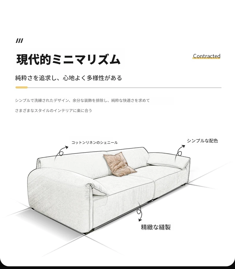 【幅1.2m 開間に注意 - ゆったりとした座深約80cm】ストレート3.6m