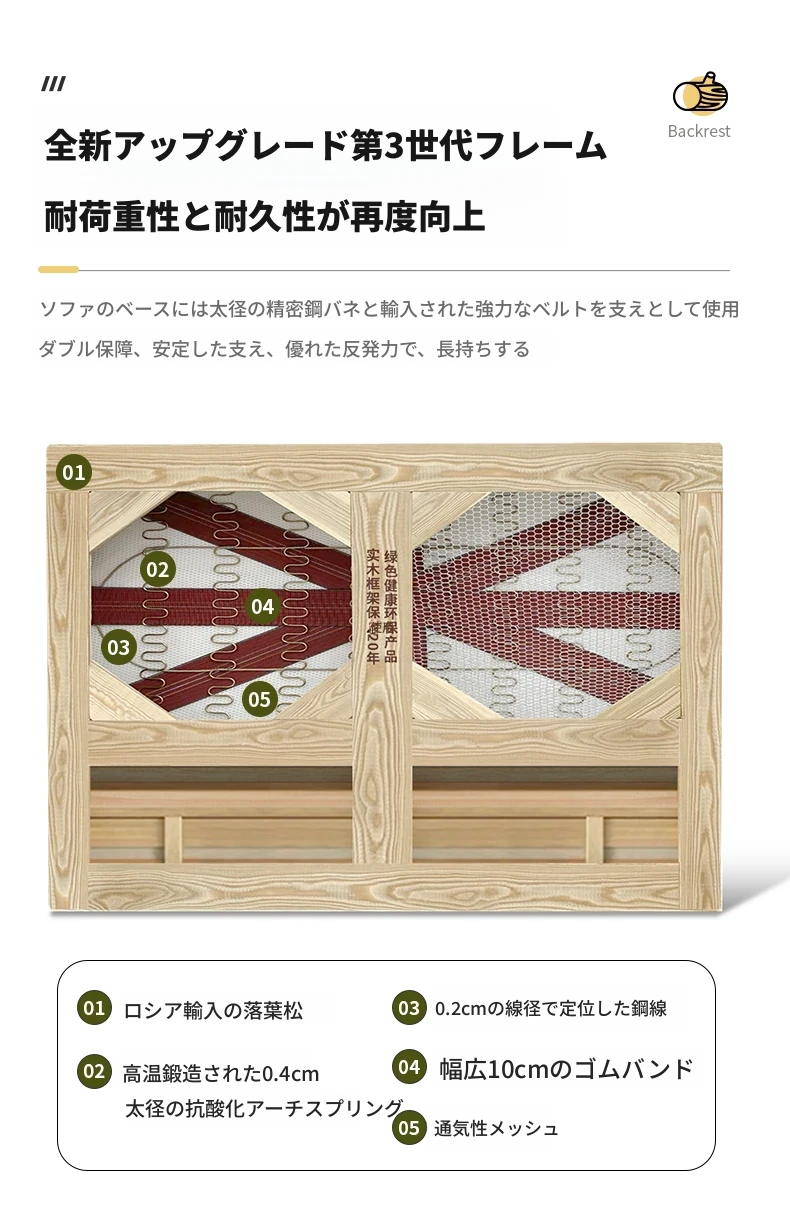 【幅1.2m 開間に注意 - ゆったりとした座深約80cm】ダブル1.8m