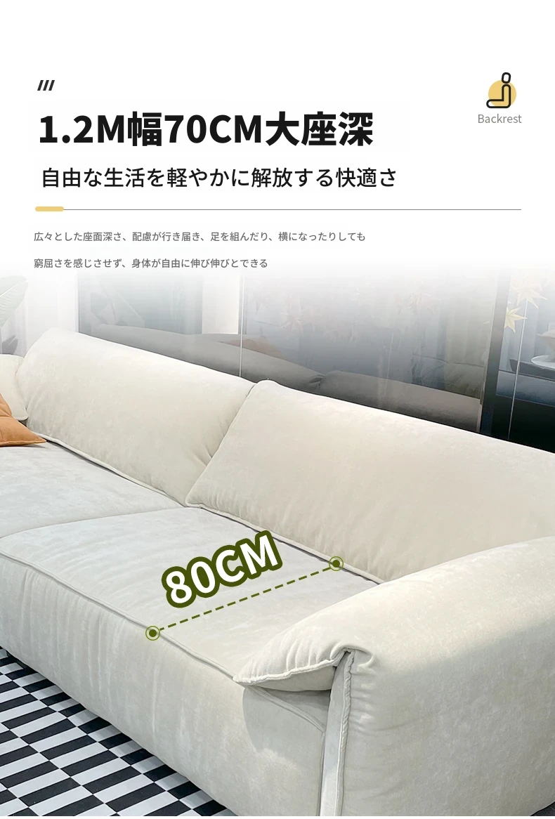 【幅1.2m 開間に注意 - ゆったりとした座深約80cm】ストレート3.4m