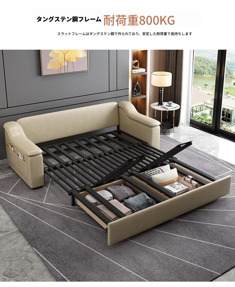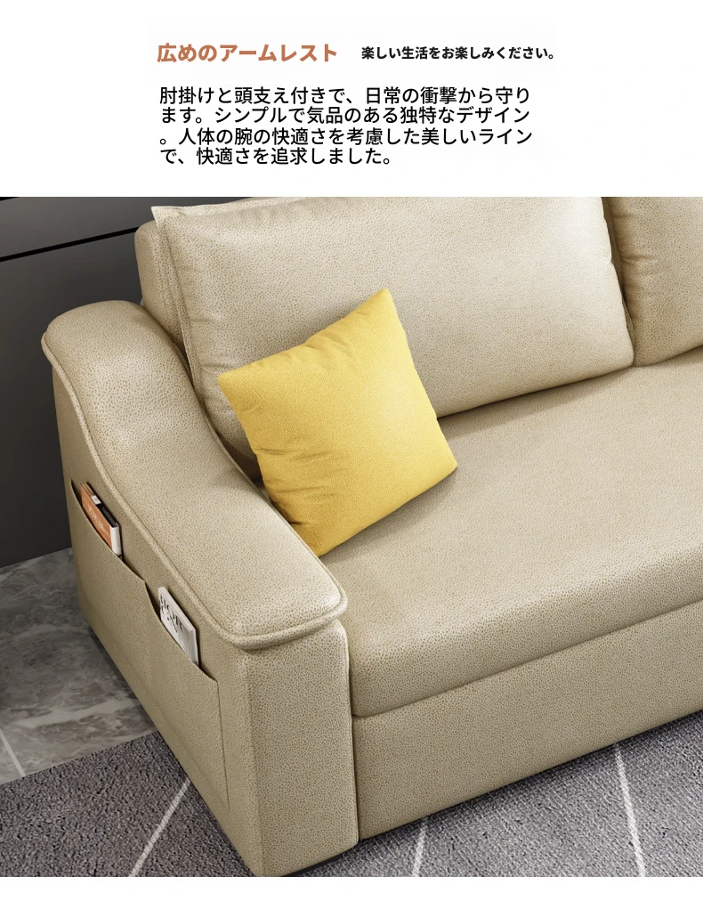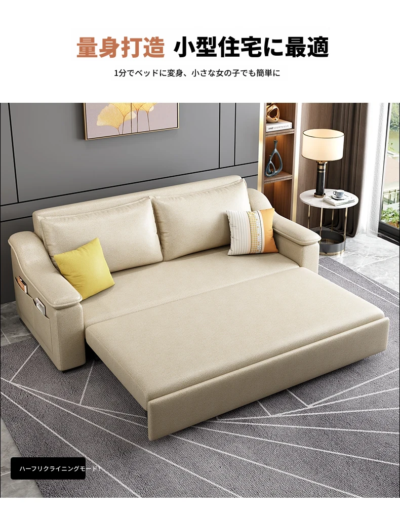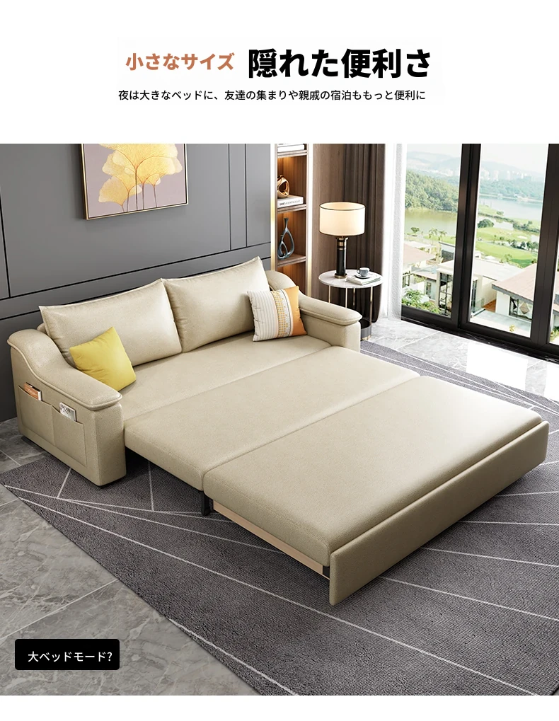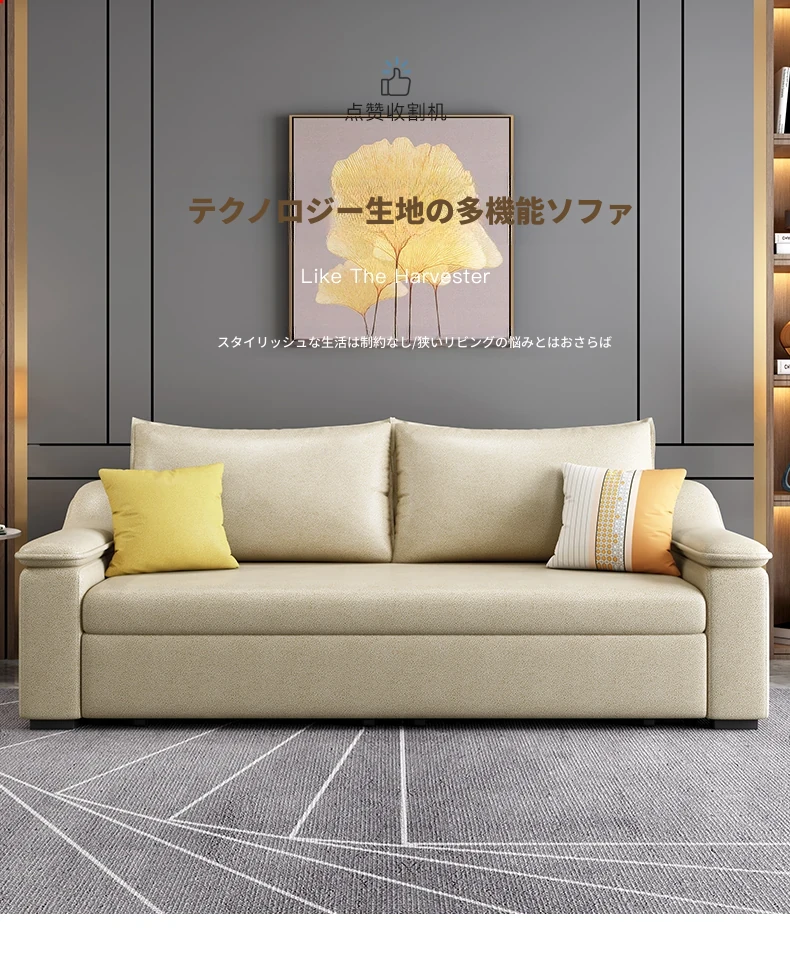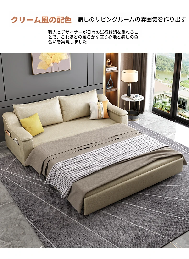 ケイモンハウ創造のファブリックソファベッド - クリーム風、新作2025年発表!2WAY伸縮式で、コンパクトアパートにもぴったりの折りたたみダブルベッド。快適さとスタイルを手に入れよう!