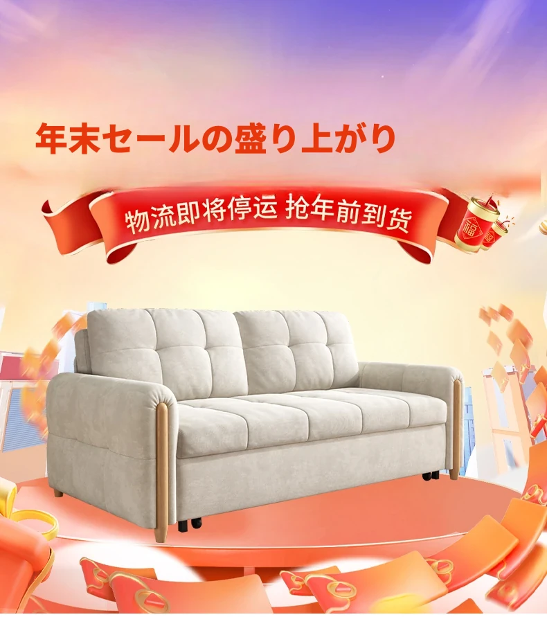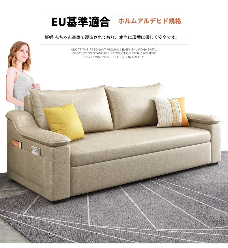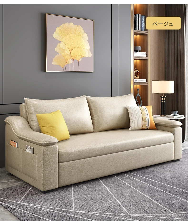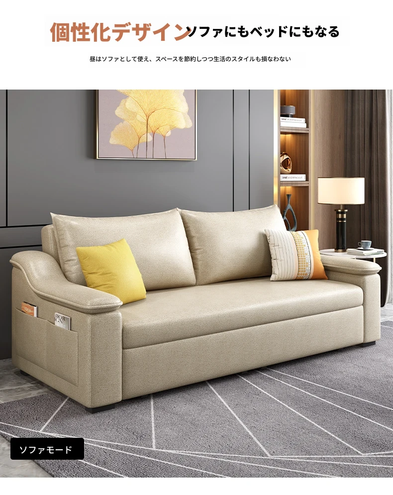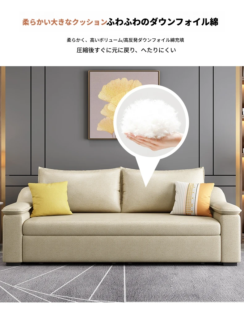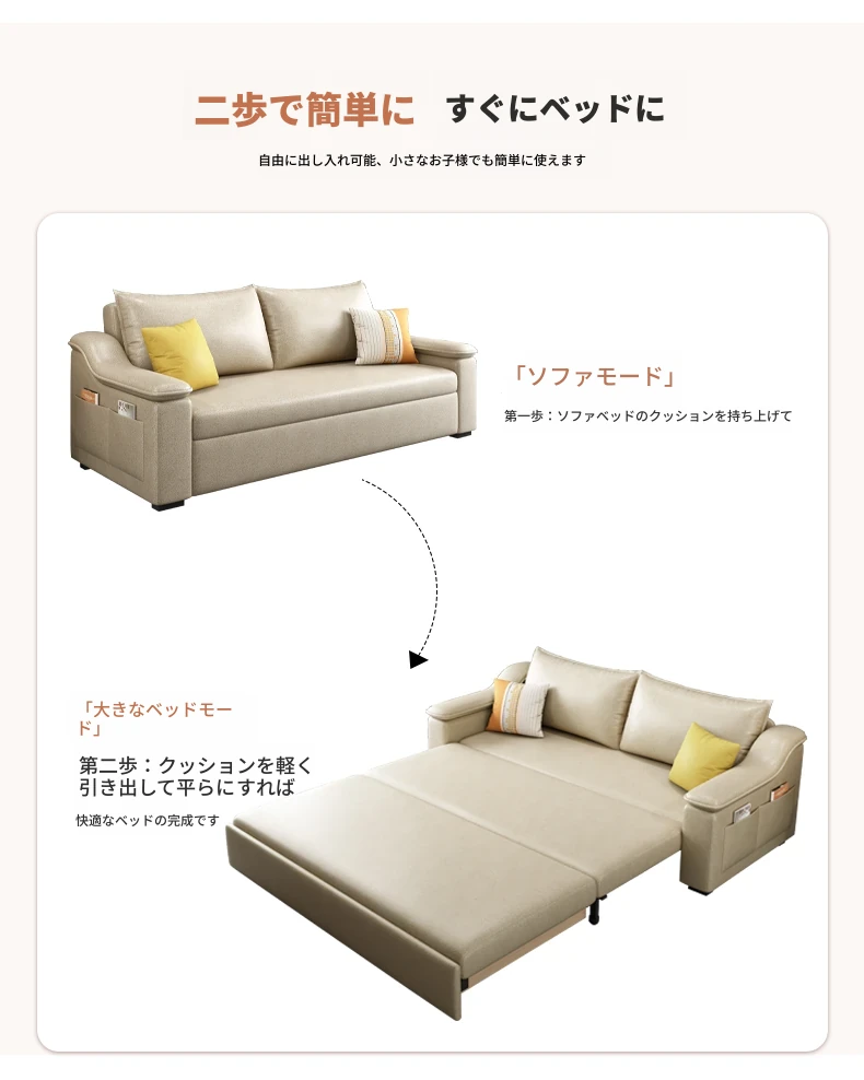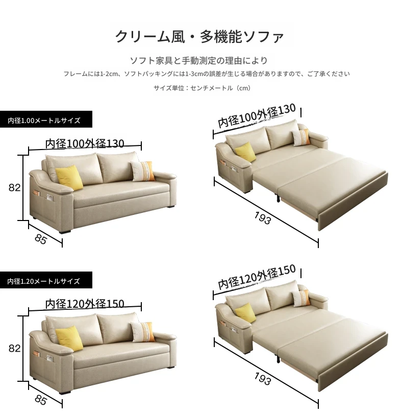 ケイモンハウ創造のファブリックソファベッド - クリーム風、新作2025年発表!2WAY伸縮式で、コンパクトアパートにもぴったりの折りたたみダブルベッド。快適さとスタイルを手に入れよう!