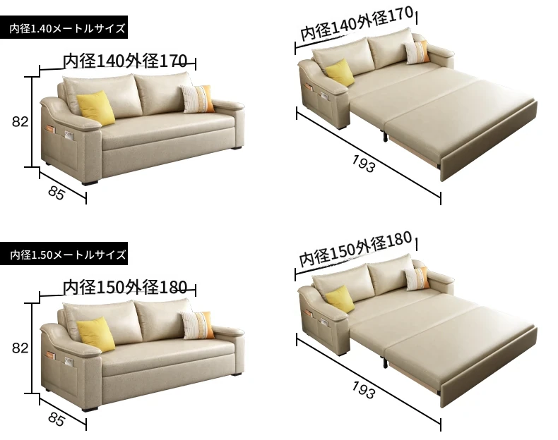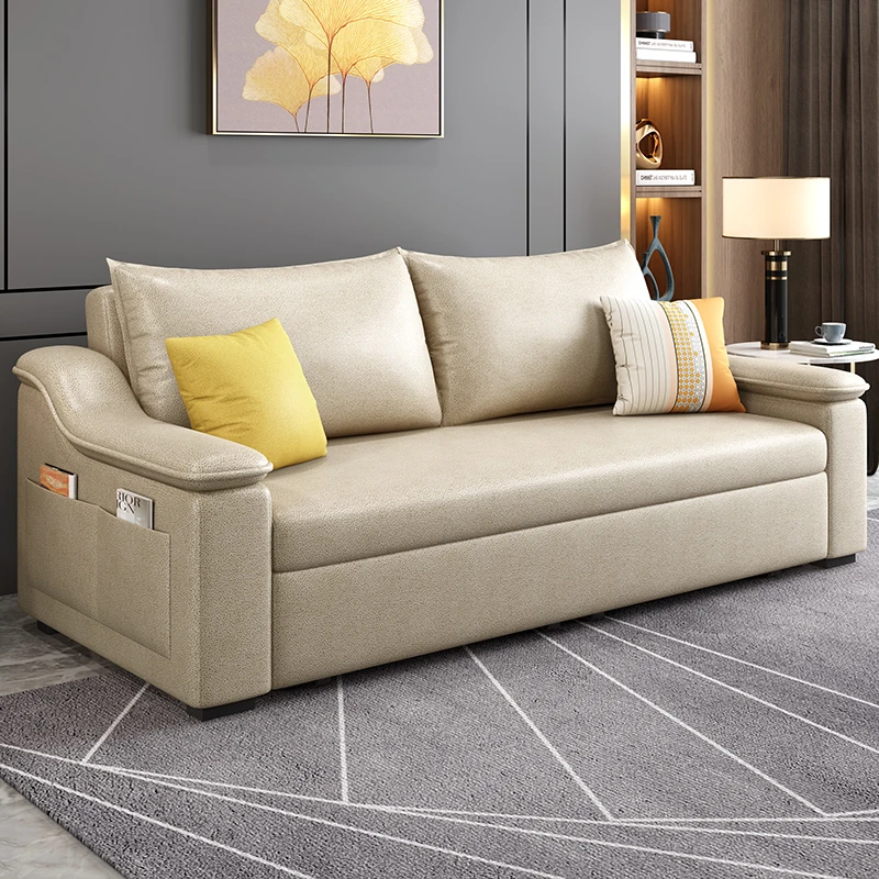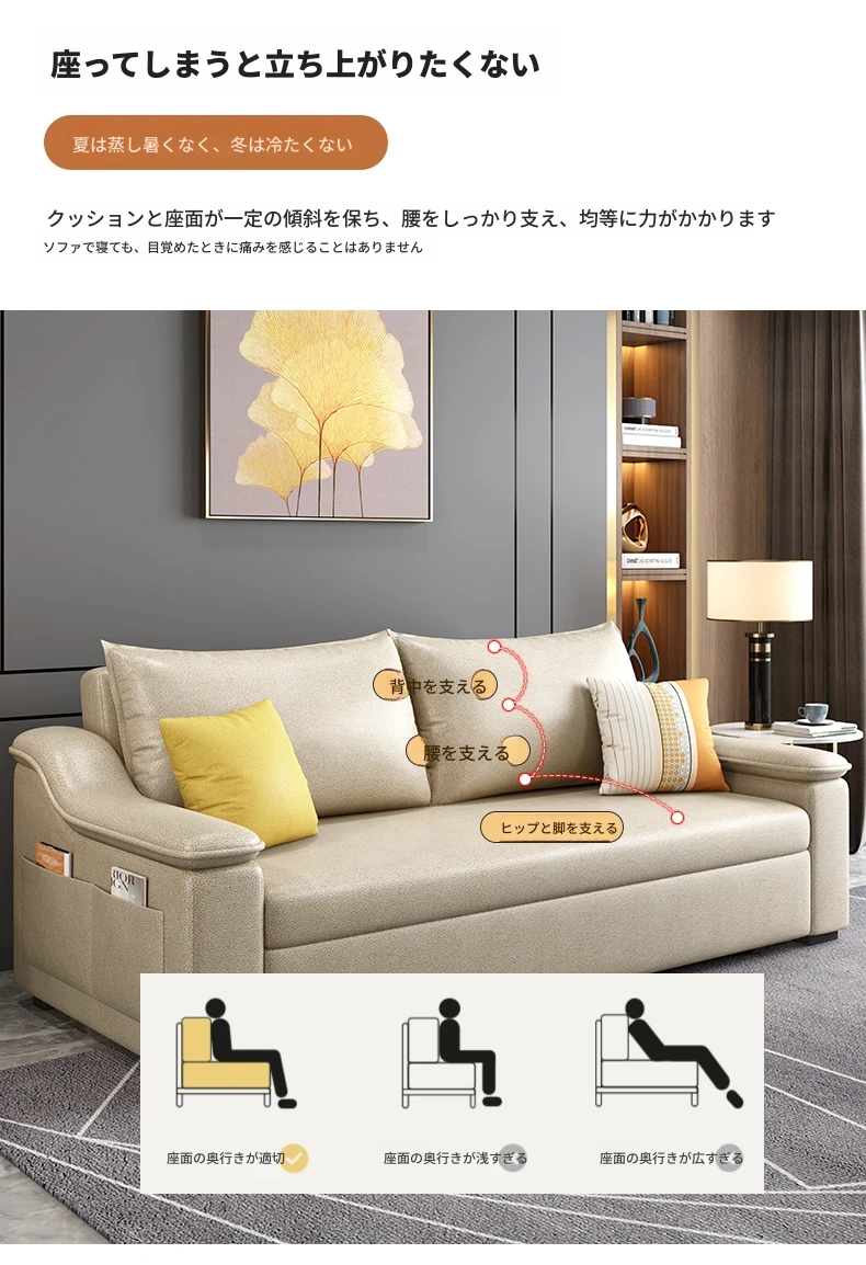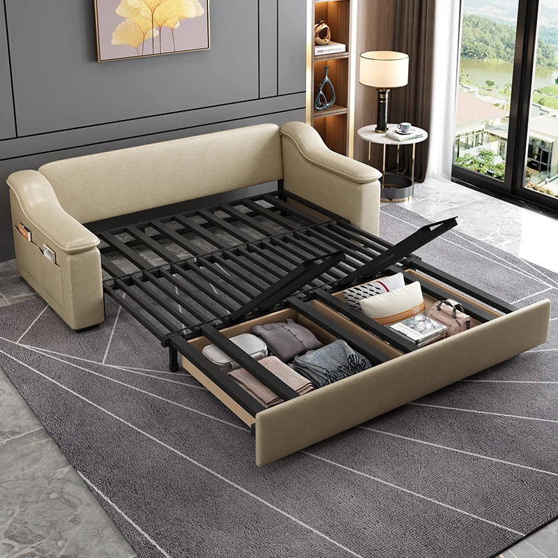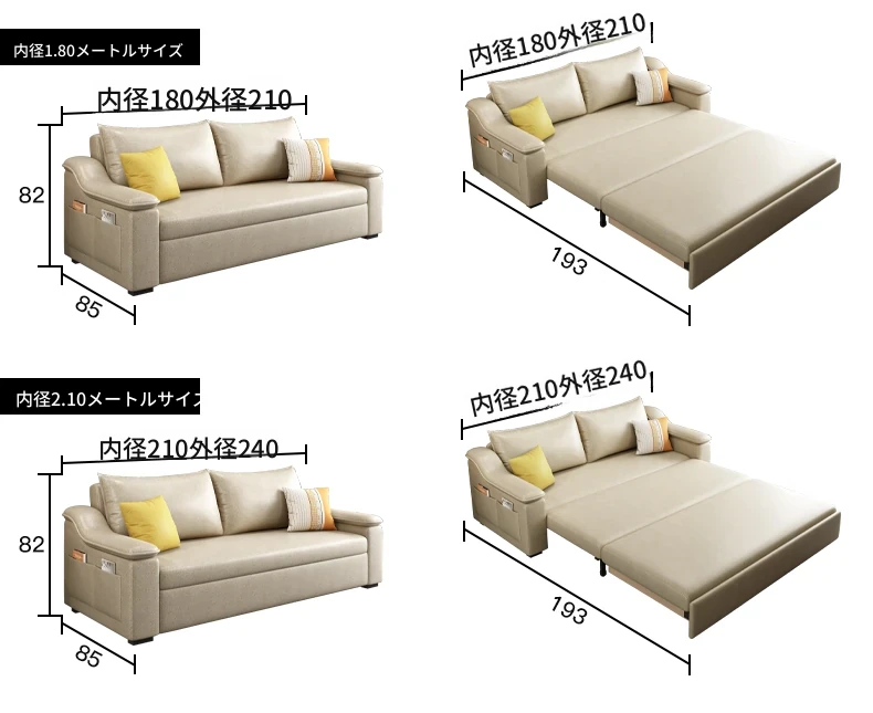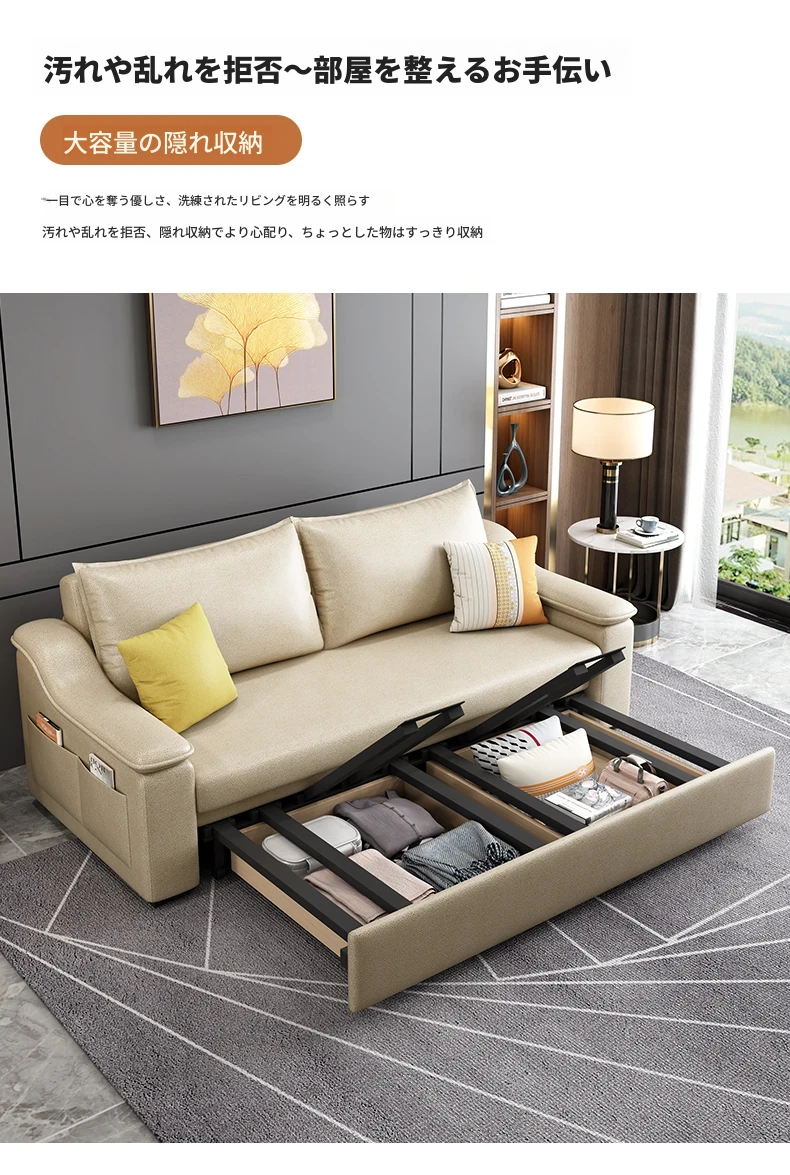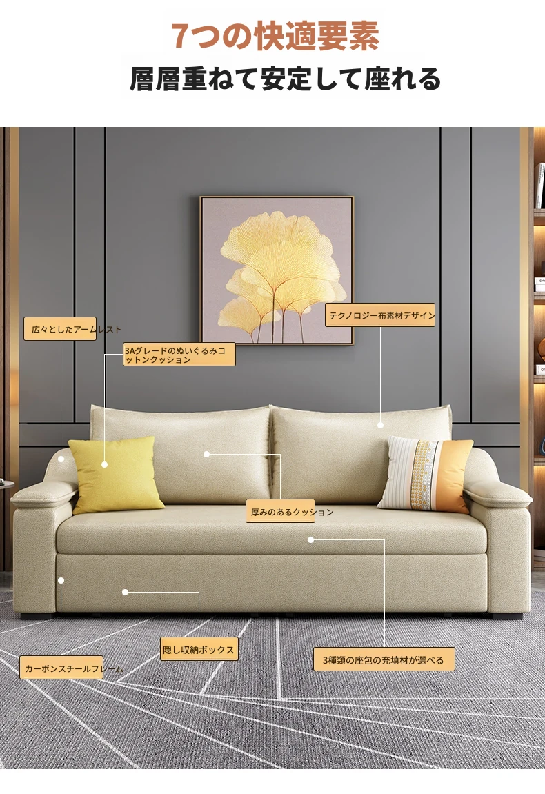 ケイモンハウ創造のファブリックソファベッド - クリーム風、新作2025年発表!2WAY伸縮式で、コンパクトアパートにもぴったりの折りたたみダブルベッド。快適さとスタイルを手に入れよう!