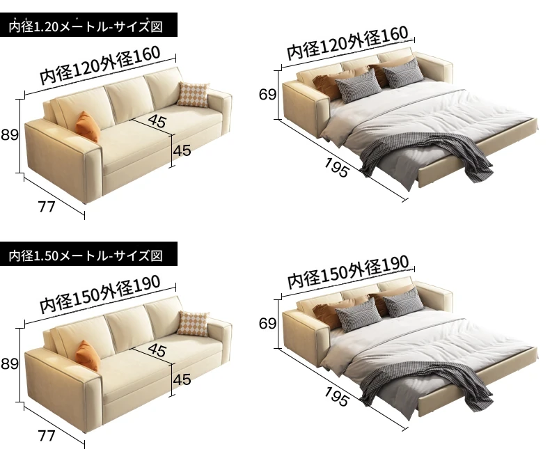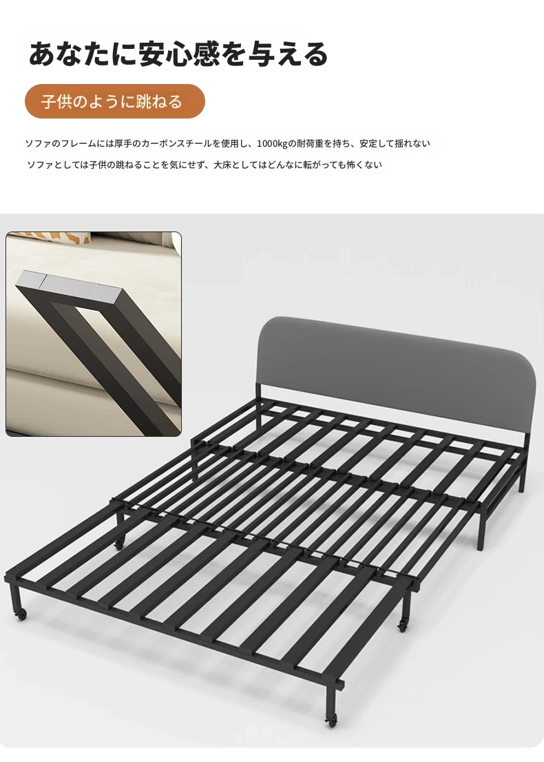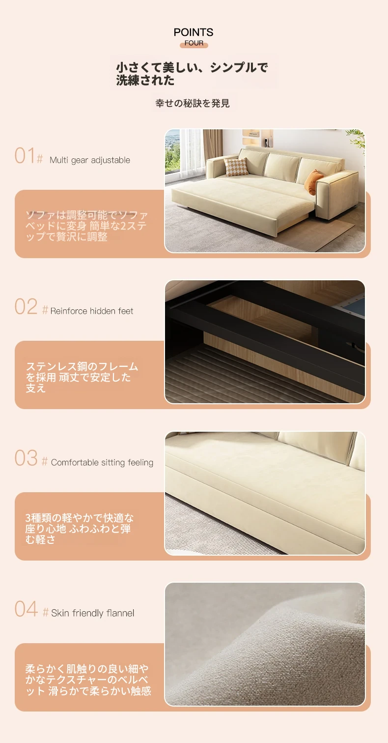 カエリヤ 多機能コンパクトリビング用 折りたたみ式 二人用 テクノロジーフランネルソファベッド - おしゃれで快適、狭い空間でもスマートに使える人気アイテム!