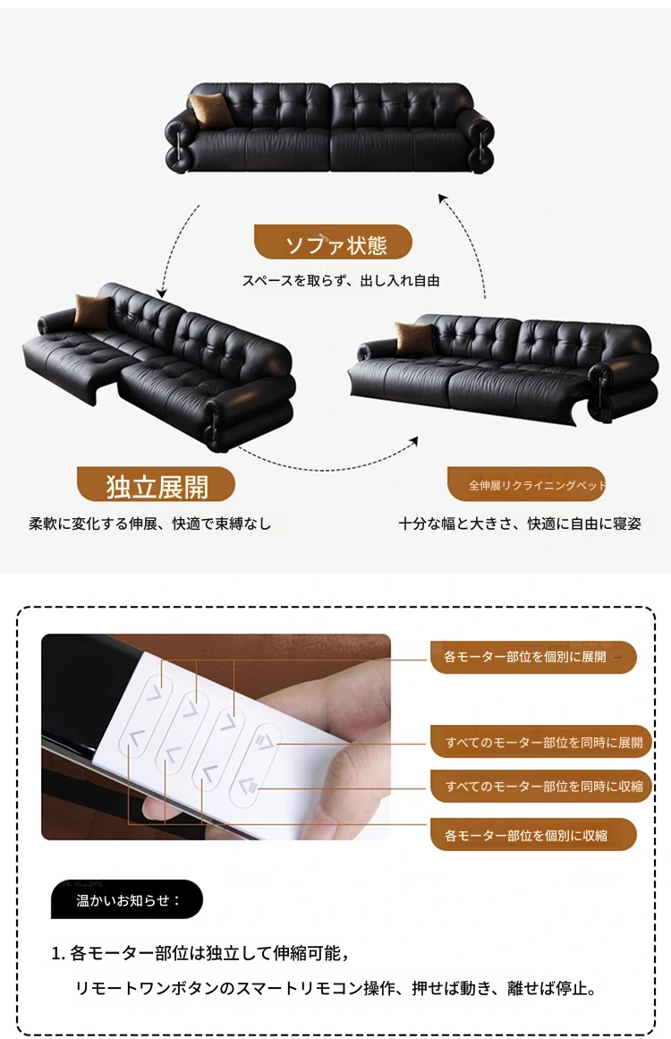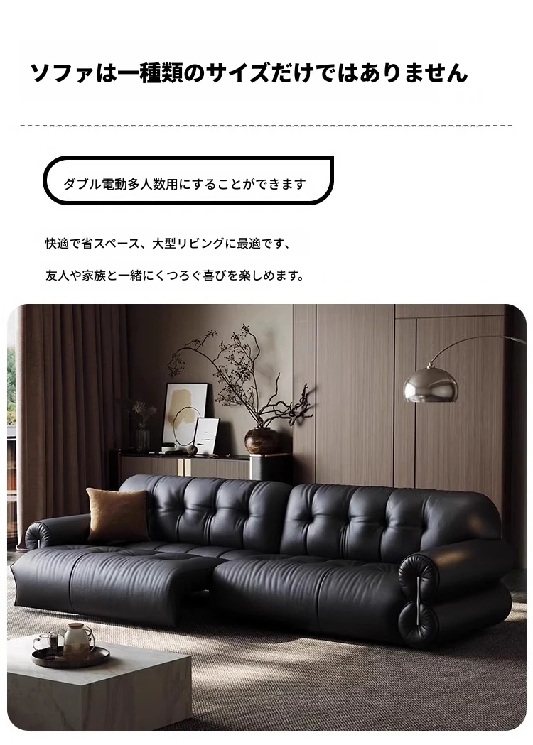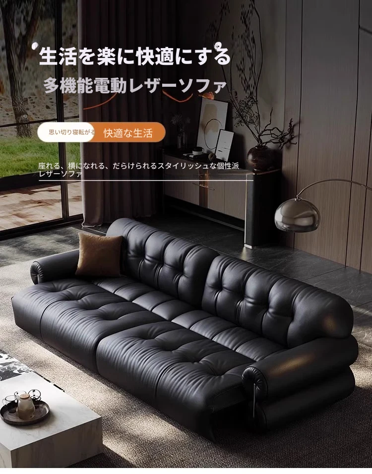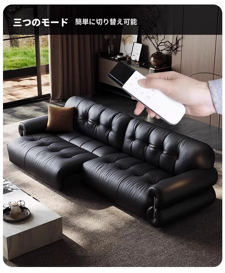 レアリティ・ゼロ壁付電動レザーソファ|伸縮可能&レトロデザイン|リビングにぴったりの調節機能付き軽奢雲朵ソファベッド|快適なひとときを提供する、優雅なインテリアの選択!