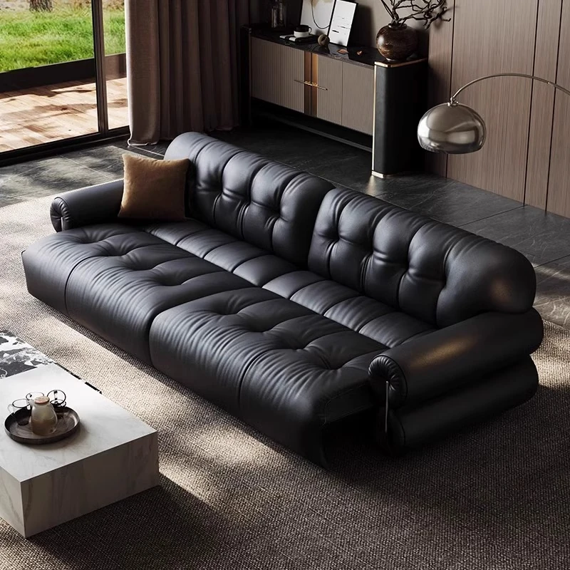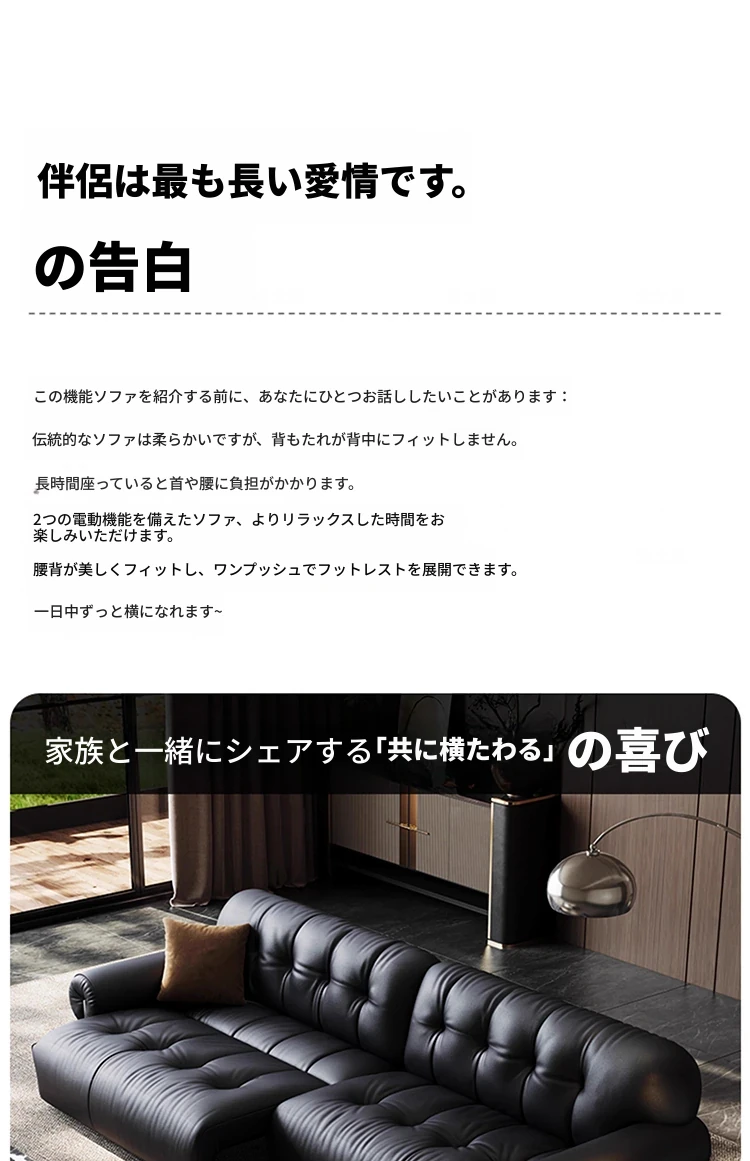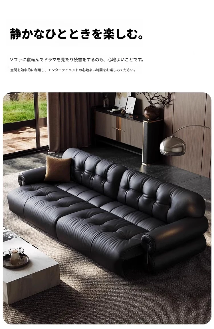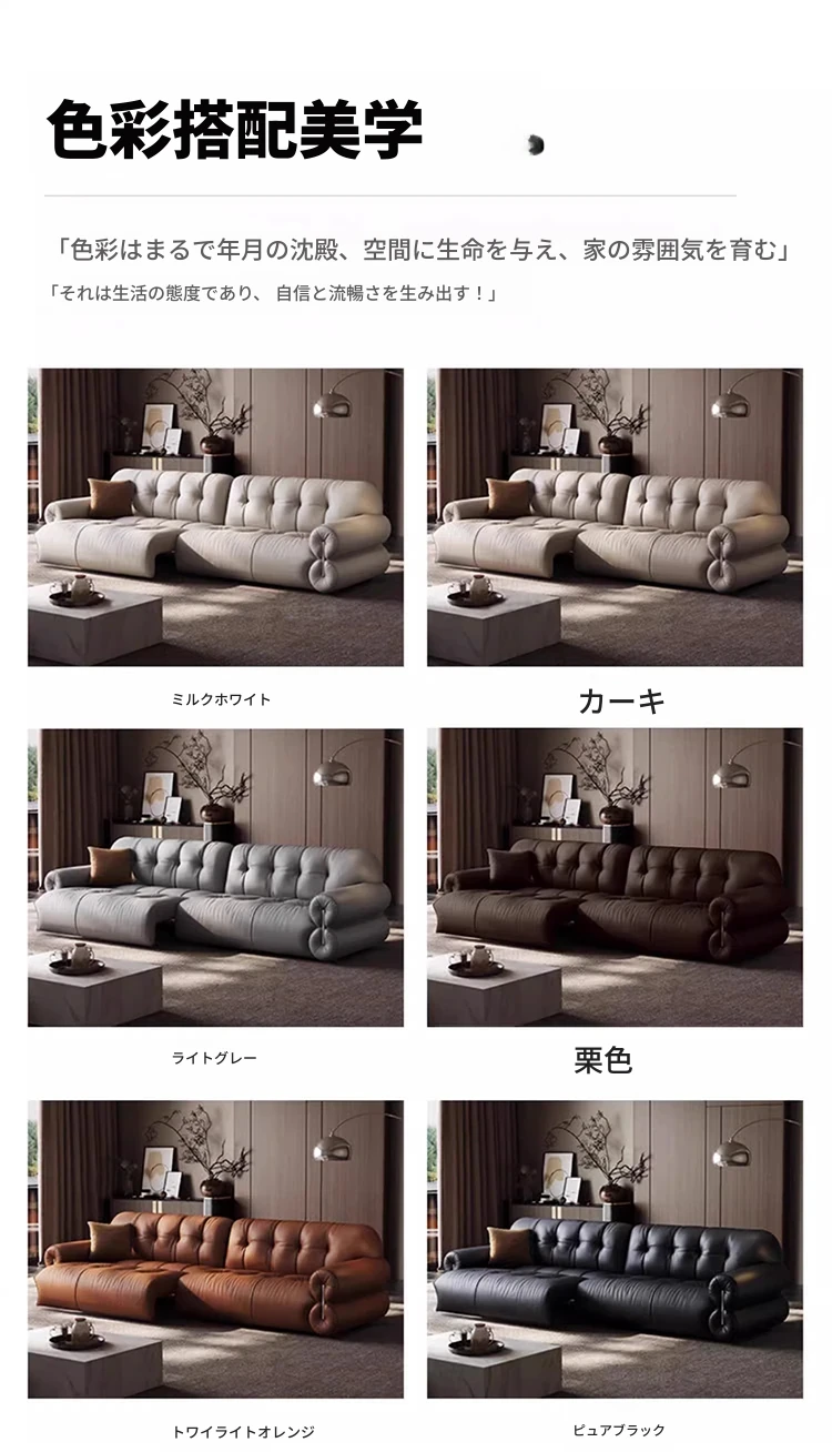 レアリティ・ゼロ壁付電動レザーソファ|伸縮可能&レトロデザイン|リビングにぴったりの調節機能付き軽奢雲朵ソファベッド|快適なひとときを提供する、優雅なインテリアの選択!