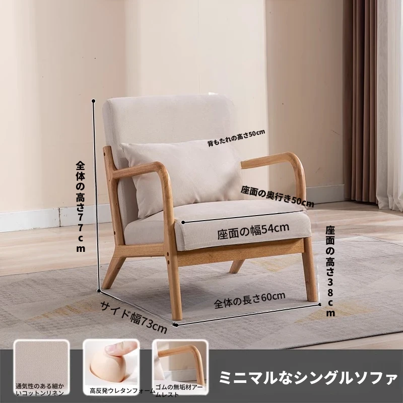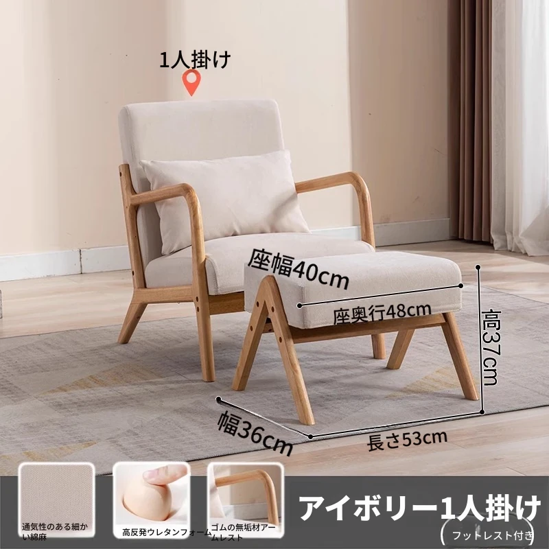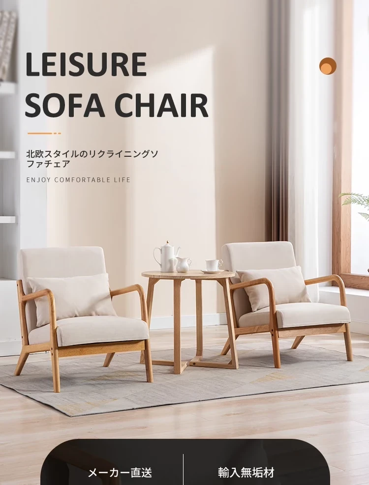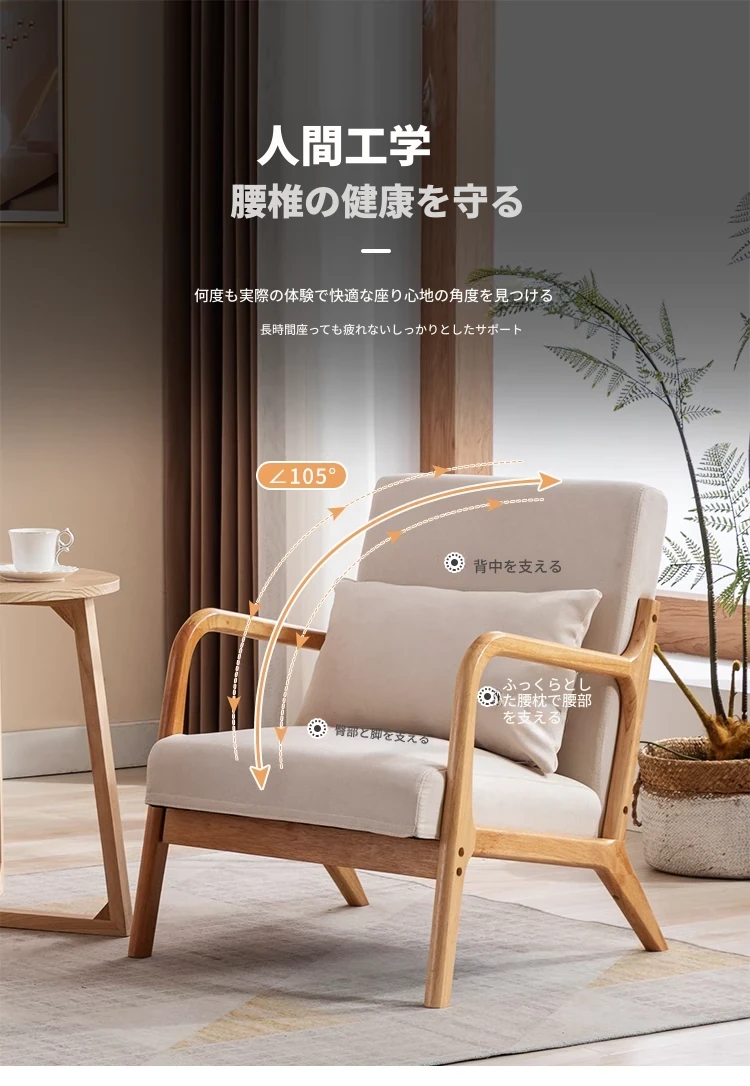 スパック北欧スタイルのコンパクトリビング&ベッドルーム用オシャレな一人掛け原木チェア - 和風テイストのリラックスソファ、バルコニーでも大活躍!