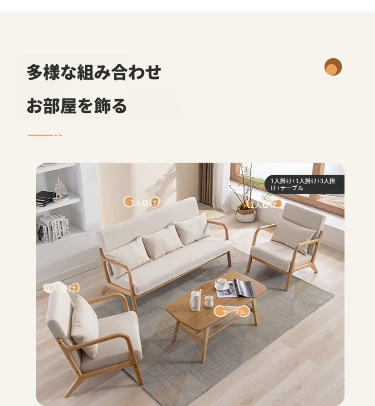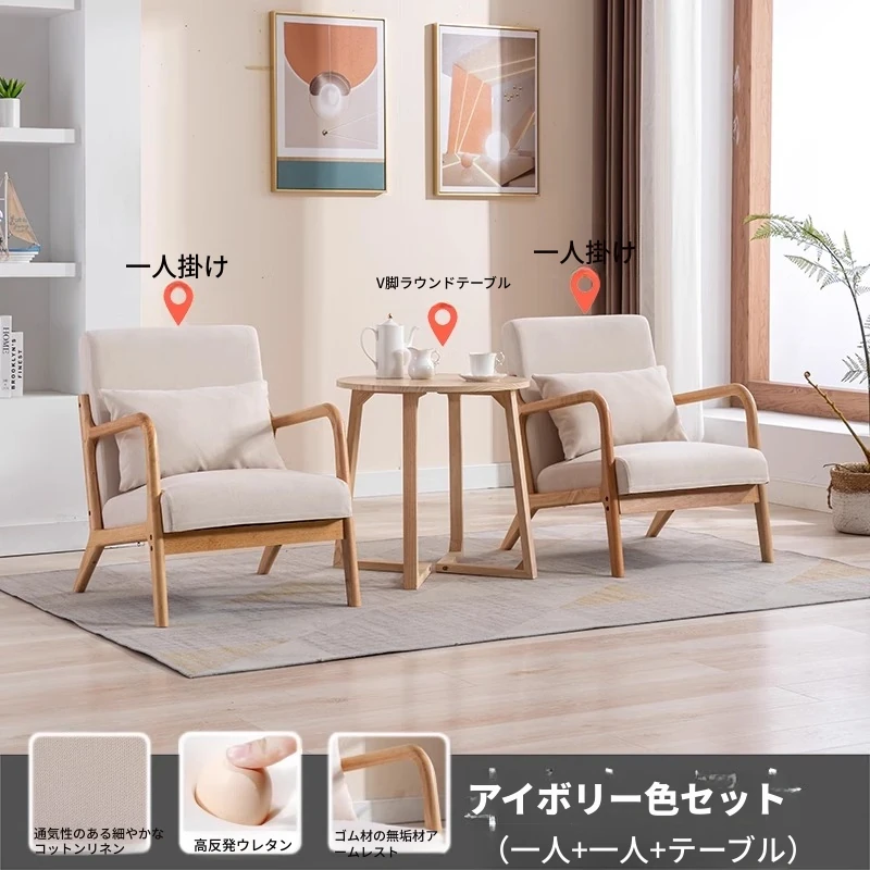 クリーム色*2+丸テーブル アップグレード版 透湿コットンリネン