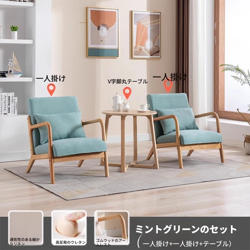 ミントグリーン*2+丸テーブル コットンリネン 洗える