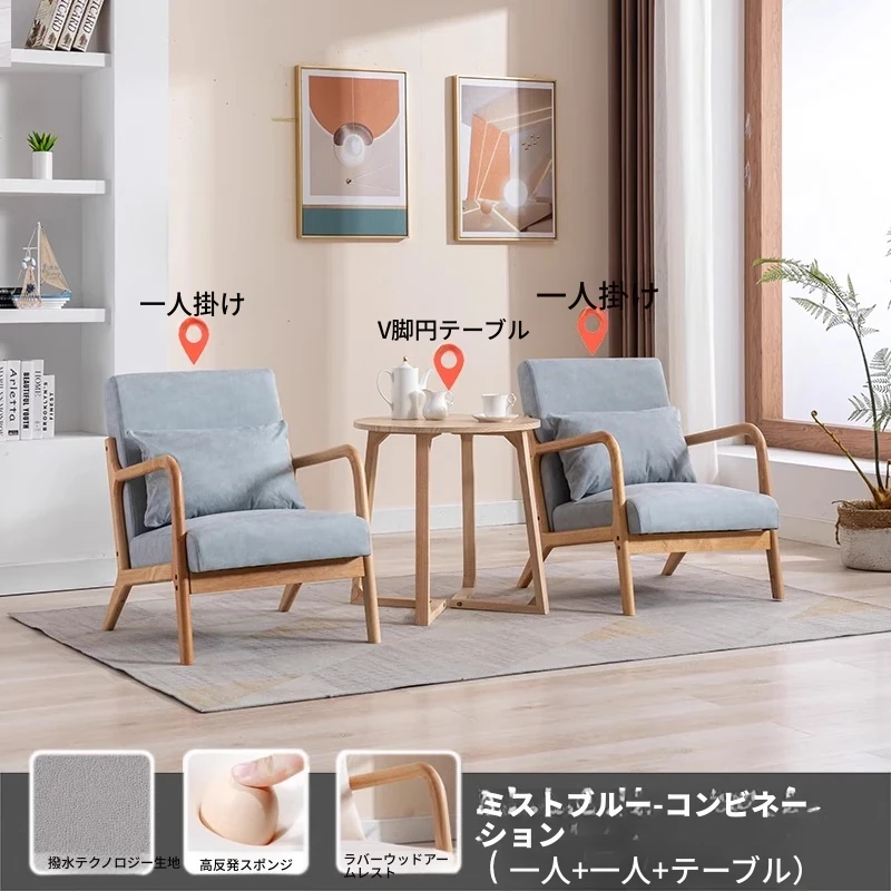 ミストブルー*2+丸テーブル 洗わずに使えるテクノロジーファブリック